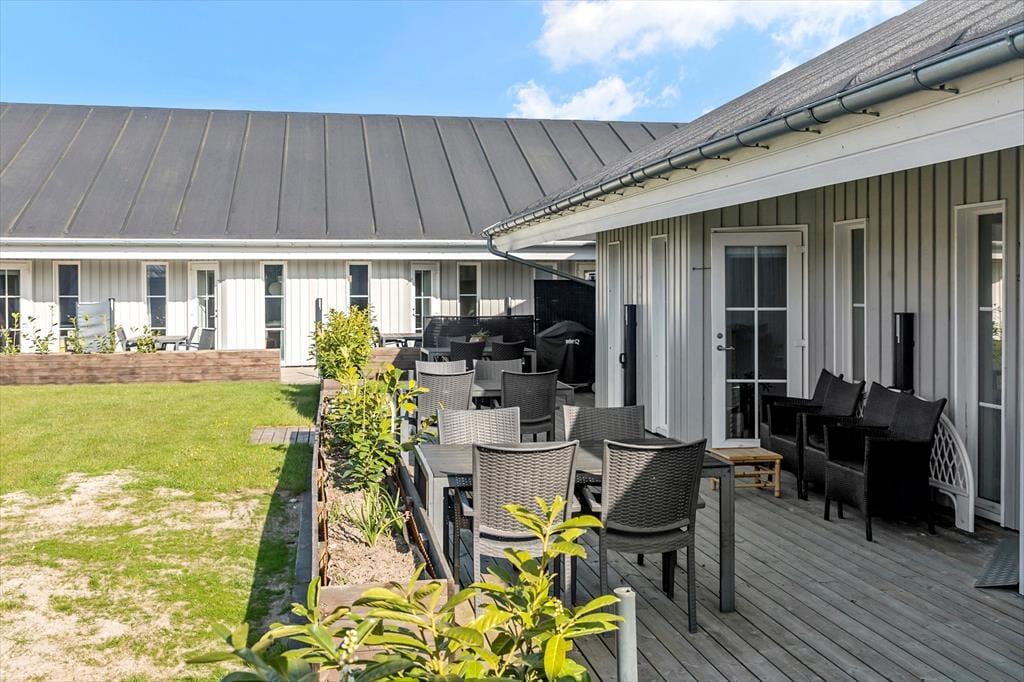 Zur Ferienwohnung gehört eine Terrasse mit Gartenmöbeln.