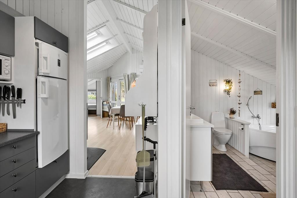 Dieses Ferienhaus verfügt über ein großes Badezimmer mit WC, Dusche, Waschbecken, Sauna und Badewanne. Darüber hinaus verfügt das Ferienhaus über 3 gute Schlafzimmer mit Doppelbetten in 2 der Schlafzimmer und 2 Einzelbetten im letzten Schlafzimmer. Weiter verfügt das Ferienhaus über eine schöne Küche mit Zugang zum Esszimmer und Sofabereich. Vom Wohnzimmer aus haben Sie Zugang zur schönen Terrasse des Ferienhauses.