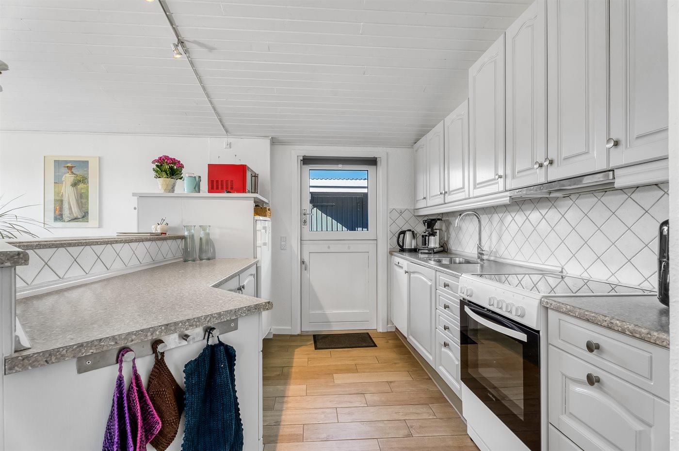 Fritidsbostaden ligger på en 1300 m² stor naturtomt. Avstånd till hav är 800 m. Närmeste affär ligger på ett avstånd av 1000 m. Till fritidsbostaden hör terrass. Dessutom finns det övertäckt terrass. Gunga. Sandlåda. Det finns grill til förfogande. Det finns carport till förfogande. P-plats på tomten.