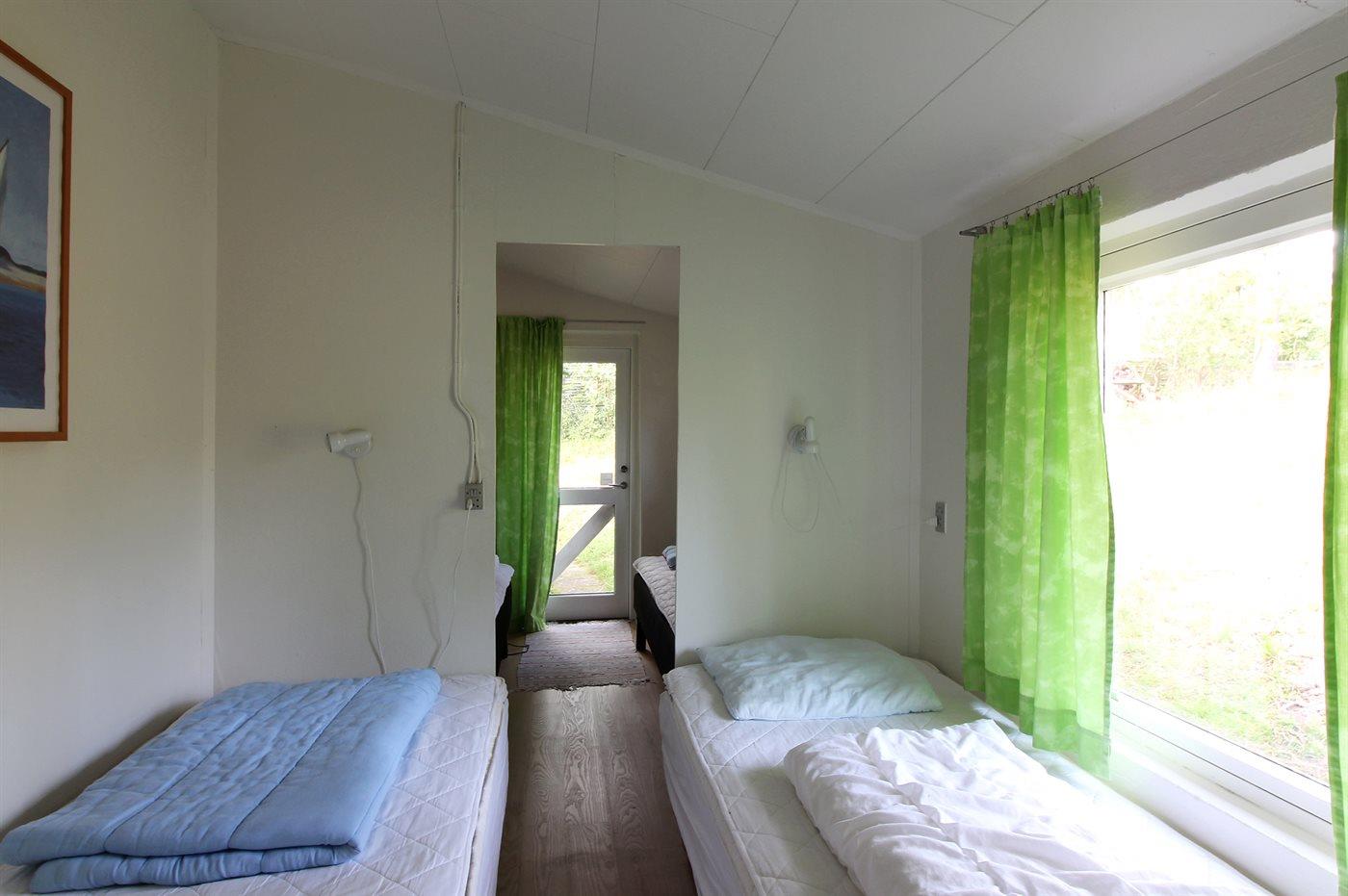 Fritidsbostaden ligger på en 2890 m² stor naturtomt. Avstånd till hav är 100 m. Närmeste affär ligger på ett avstånd av 800 m. Till fritidsbostaden hör 10 m² terrass. Dessutom finns det 20 m² övertäckt terrass. Det finns uttag för att ladda elbil vid huset. P-plats på tomten.