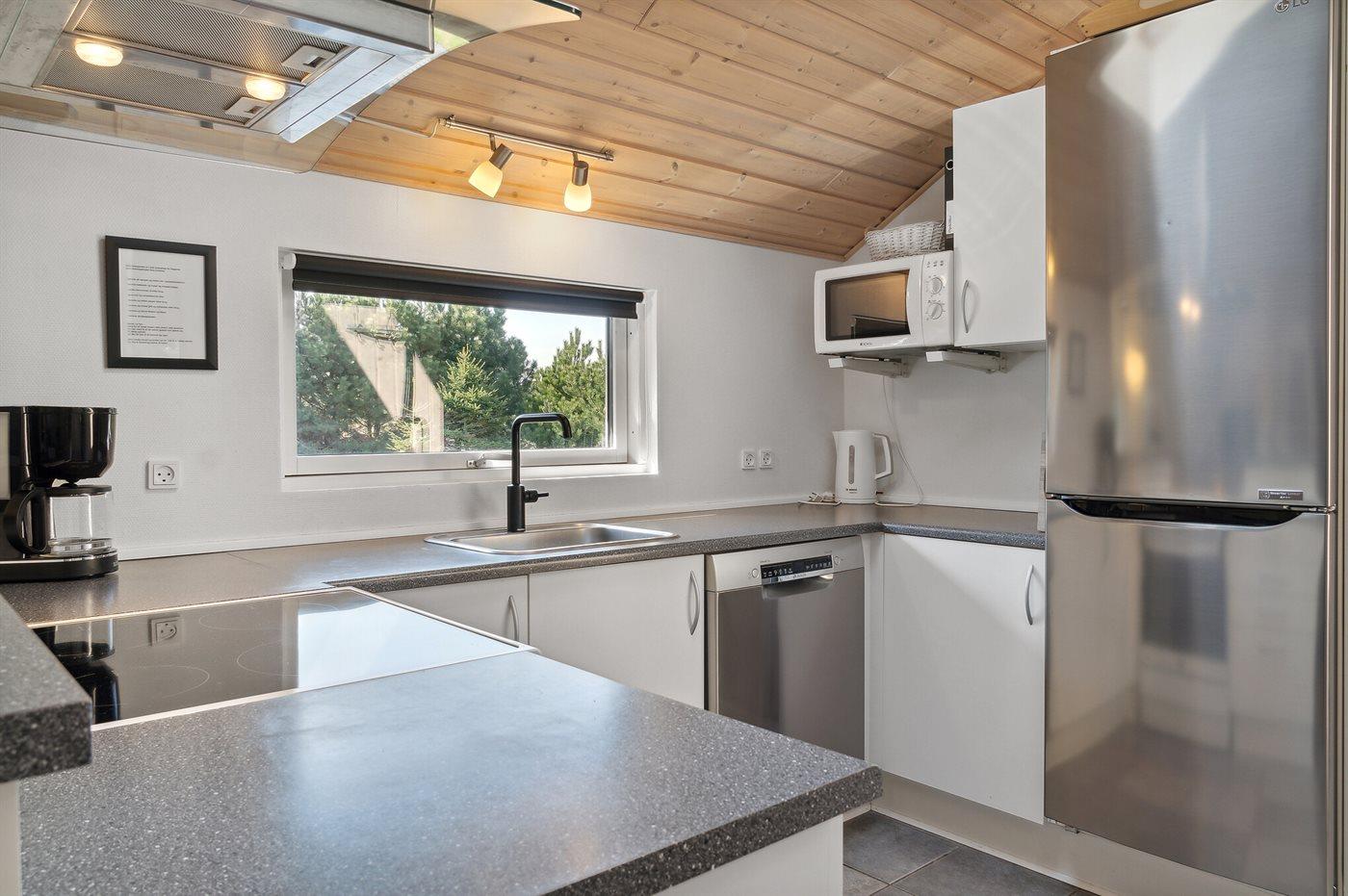 Köket är utrustad med 1 kylskåp Det finns 4 keramiska spishällar, varmluftsugn, mikrovågsugn samt diskmaskin.