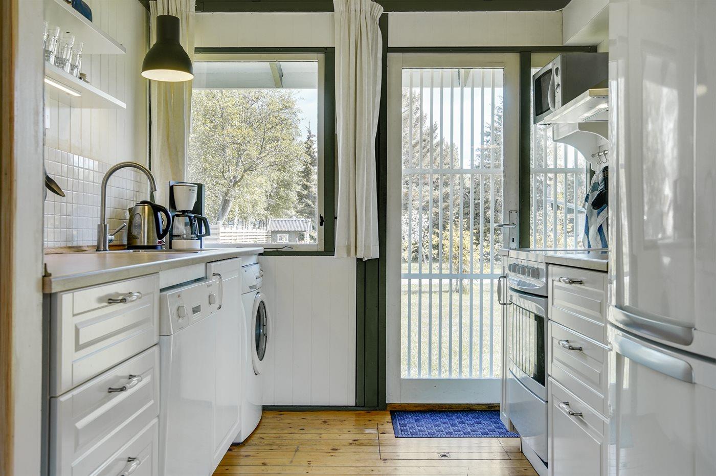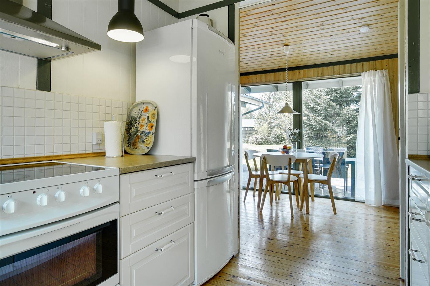 Köket är utrustad med 1 kylskåp Det finns 4 keramiska spishällar, varmluftsugn, mikrovågsugn samt diskmaskin.