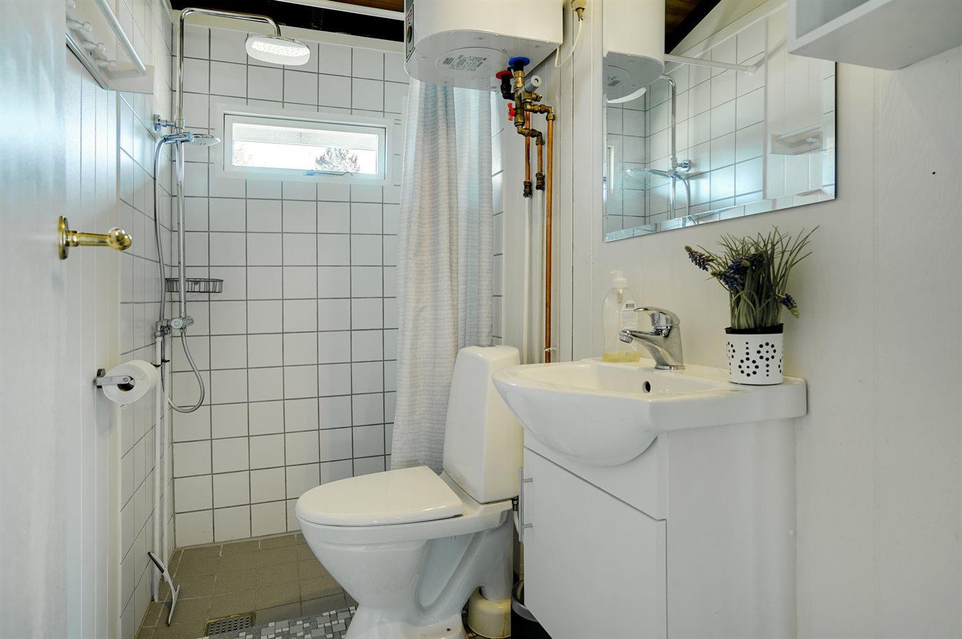 Det finns 1 badrum med duschkabin och 1 toalett.