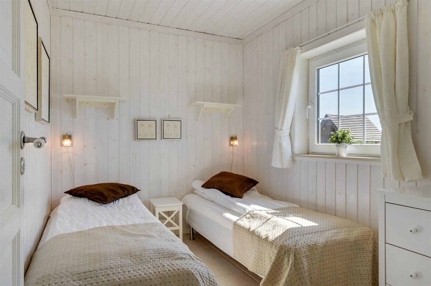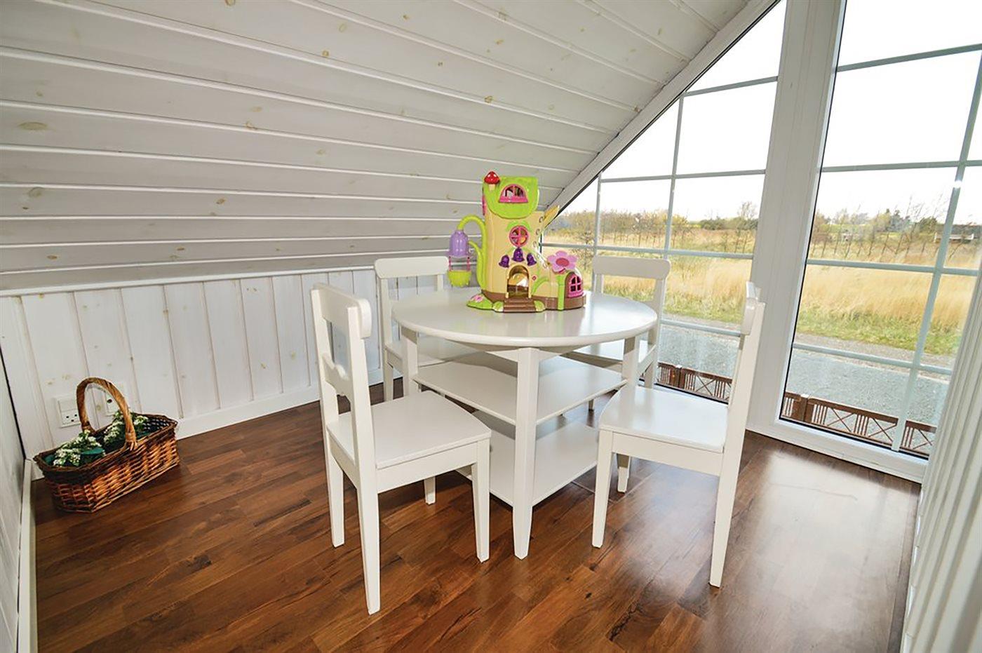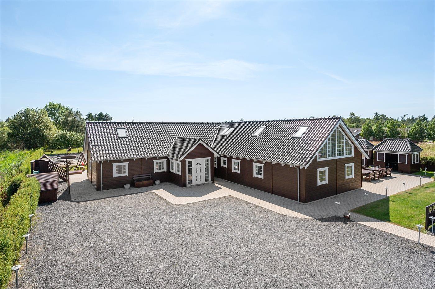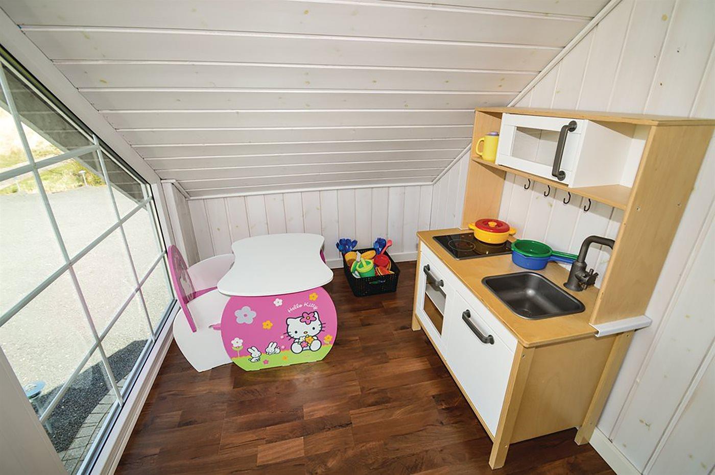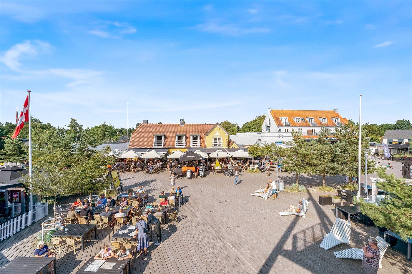 Fritidsbostaden ligger på en 2408 m² stor anlagd trädgård. Avstånd till hav är 900 m. Närmeste affär ligger på ett avstånd av 800 m. Till fritidsbostaden hör 500 m² terrass. Gunga. Sandlåda. Lekstuga. Lektorn. Rutschkana. Petanque. 18 hål minigolfbana. Fotbollsmål. Öppen spis. Det finns grill til förfogande. Det finns 2 uttag för att ladda elbiler vid huset. Kontakt typ ABB/typ 2 – 11 kW og 16 amp. P-plats på tomten.