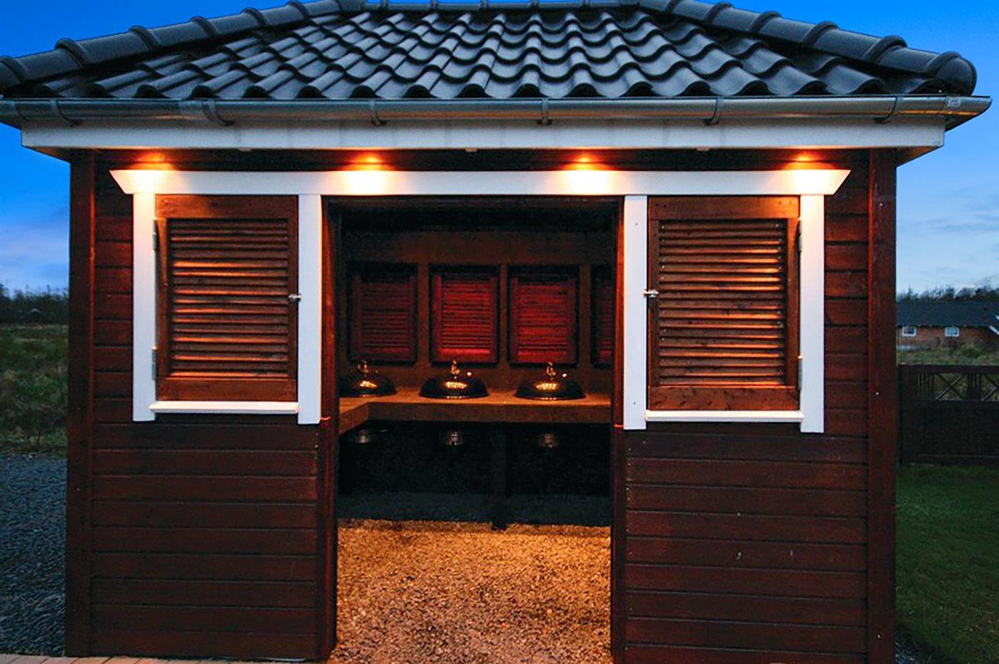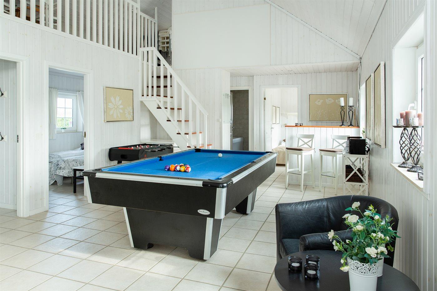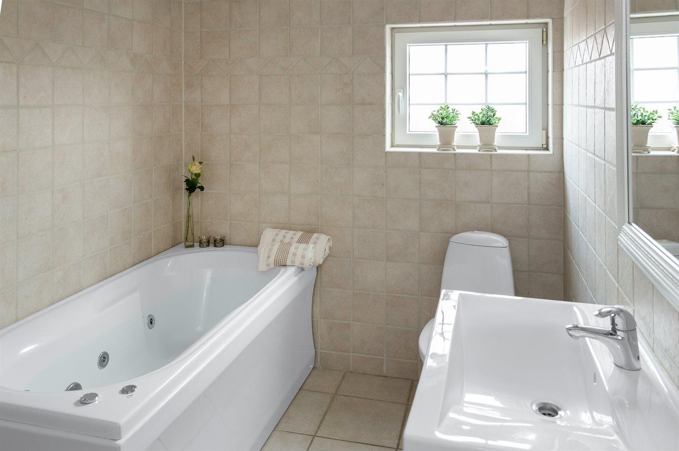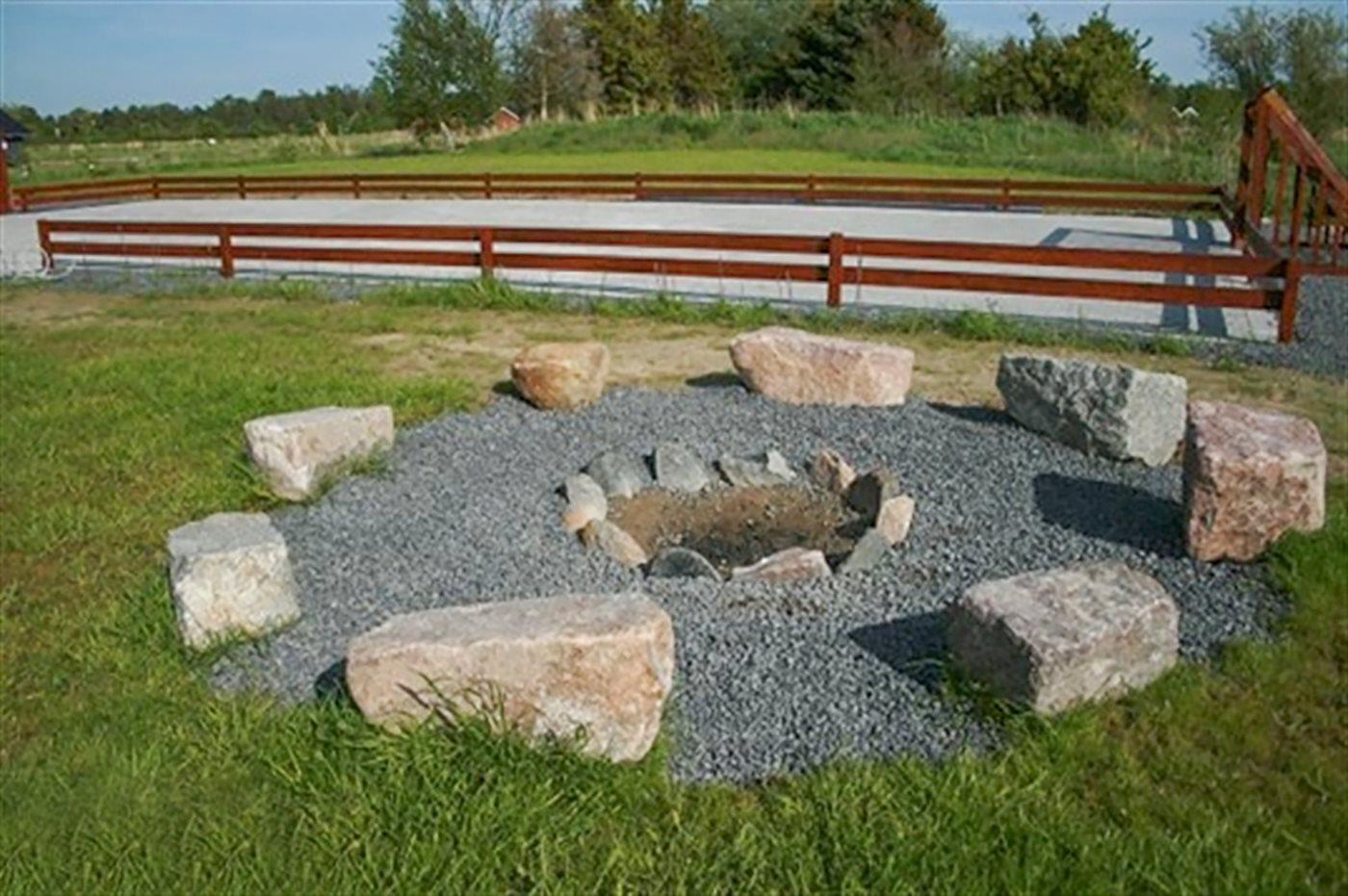 Fritidsbostaden ligger på en 2408 m² stor anlagd trädgård. Avstånd till hav är 900 m. Närmeste affär ligger på ett avstånd av 800 m. Till fritidsbostaden hör 500 m² terrass. Gunga. Sandlåda. Lekstuga. Lektorn. Rutschkana. Petanque. 18 hål minigolfbana. Fotbollsmål. Öppen spis. Det finns grill til förfogande. Det finns 2 uttag för att ladda elbiler vid huset. Kontakt typ ABB/typ 2 – 11 kW og 16 amp. P-plats på tomten.