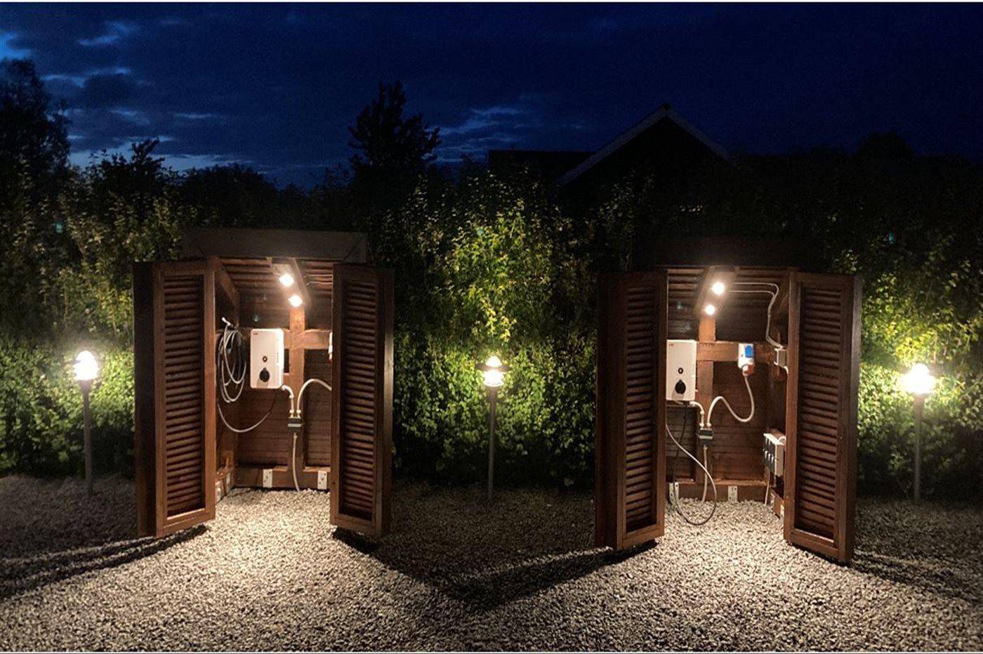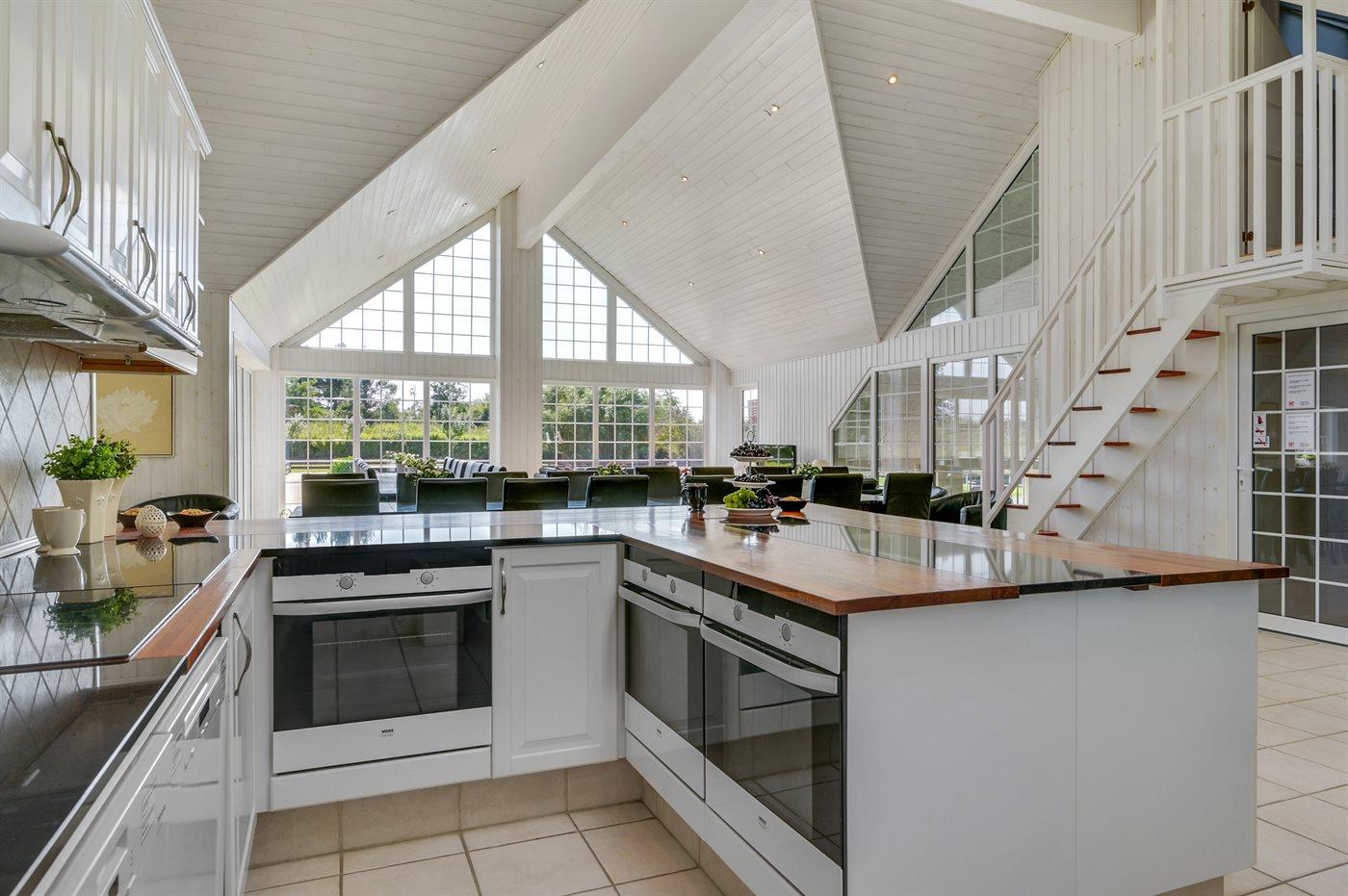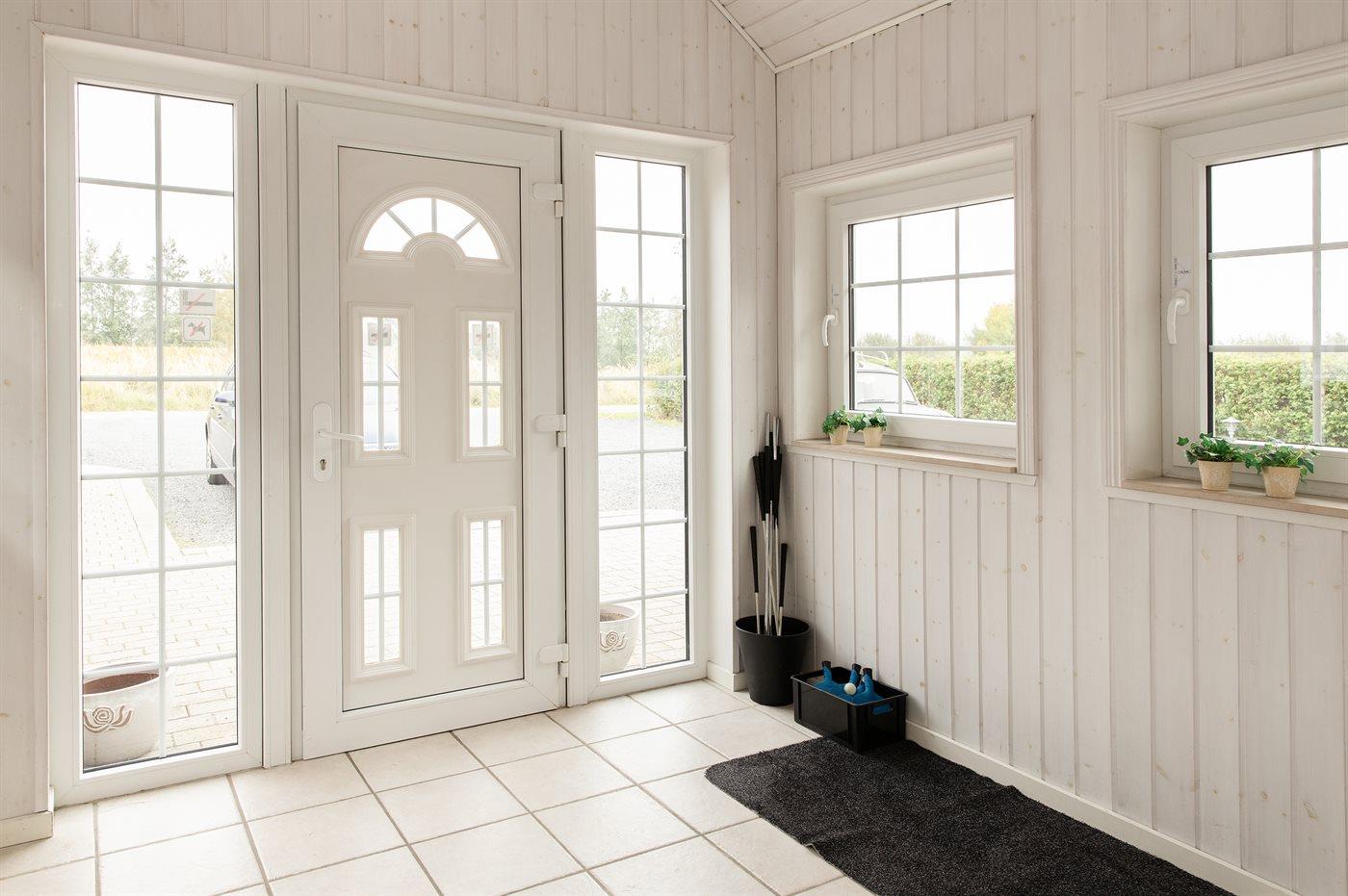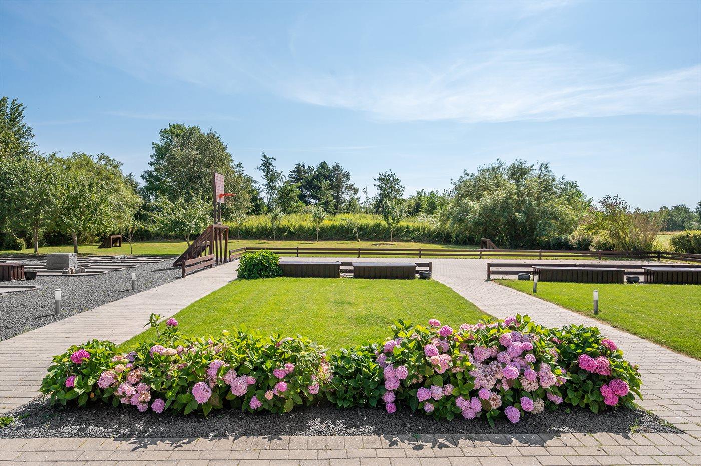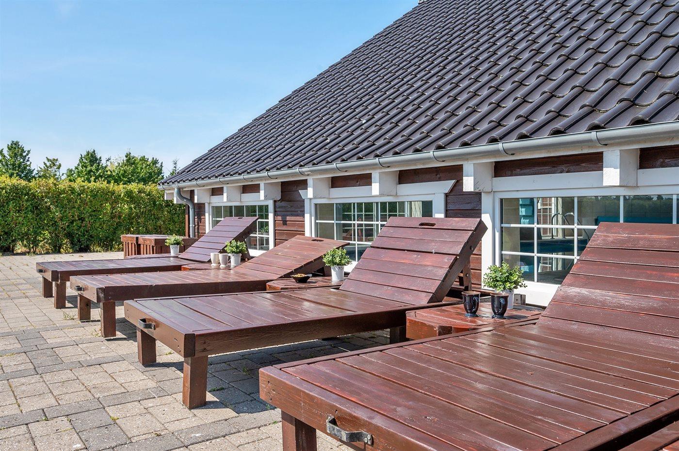 Fritidsbostaden ligger på en 2408 m² stor anlagd trädgård. Avstånd till hav är 900 m. Närmeste affär ligger på ett avstånd av 800 m. Till fritidsbostaden hör 500 m² terrass. Gunga. Sandlåda. Lekstuga. Lektorn. Rutschkana. Petanque. 18 hål minigolfbana. Fotbollsmål. Öppen spis. Det finns grill til förfogande. Det finns 2 uttag för att ladda elbiler vid huset. Kontakt typ ABB/typ 2 – 11 kW og 16 amp. P-plats på tomten.