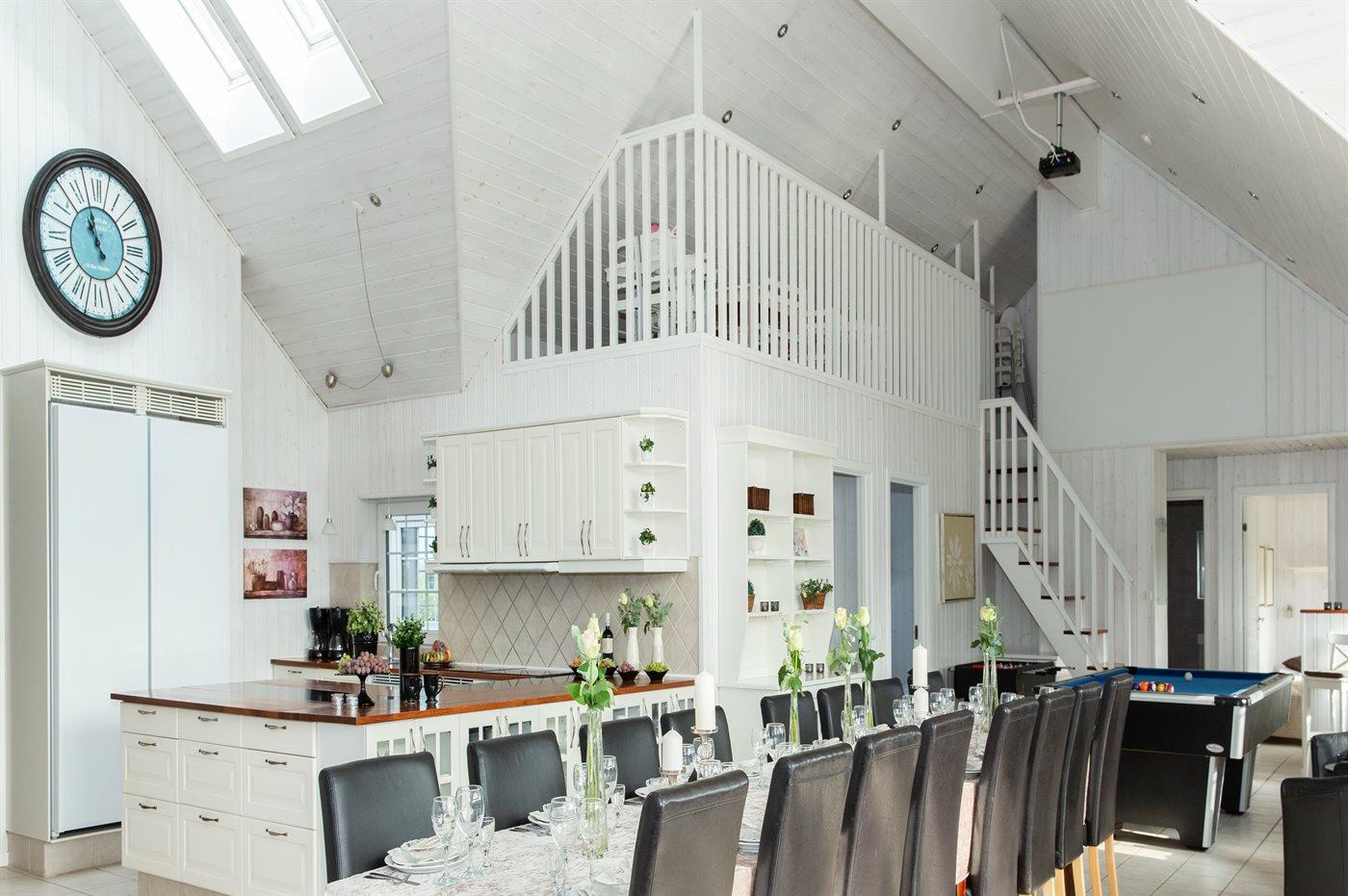 Semesterstugan lämpar sig för 32 personer samt 2 barn upp till 3 år. Fritidsbostaden är på 360 m², är i 2 våningar, och är byggd i 2009. Det är icke tillåtet at ta med hus-djur. Det finns jordvärme. Det är installerat energieffektiv värmeåtervinnings-anläggning.Det finns golvvärme i hela fritidsbostaden. Fritidsbostaden har tvättmaskine. Torktumlare. Fryskapacitet på 275 liter. För de små finns det 4 barnstolar. Skötbord.