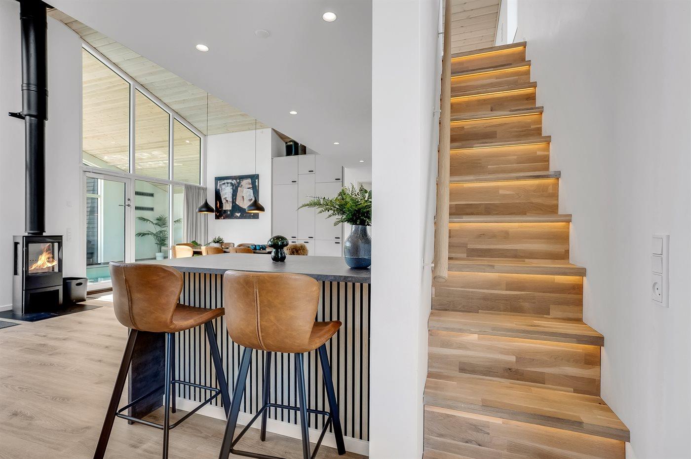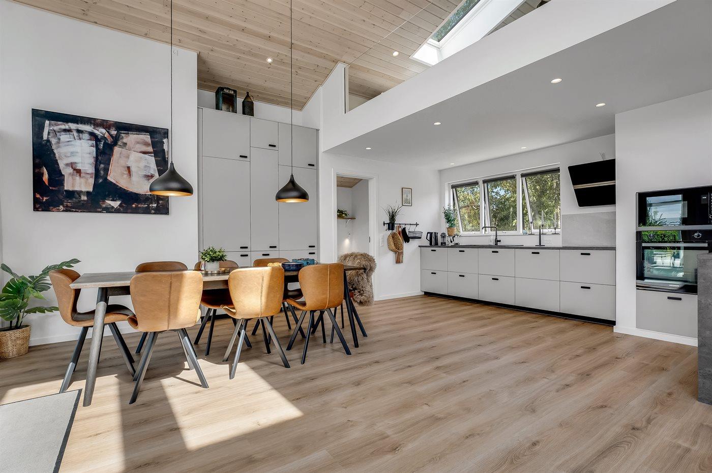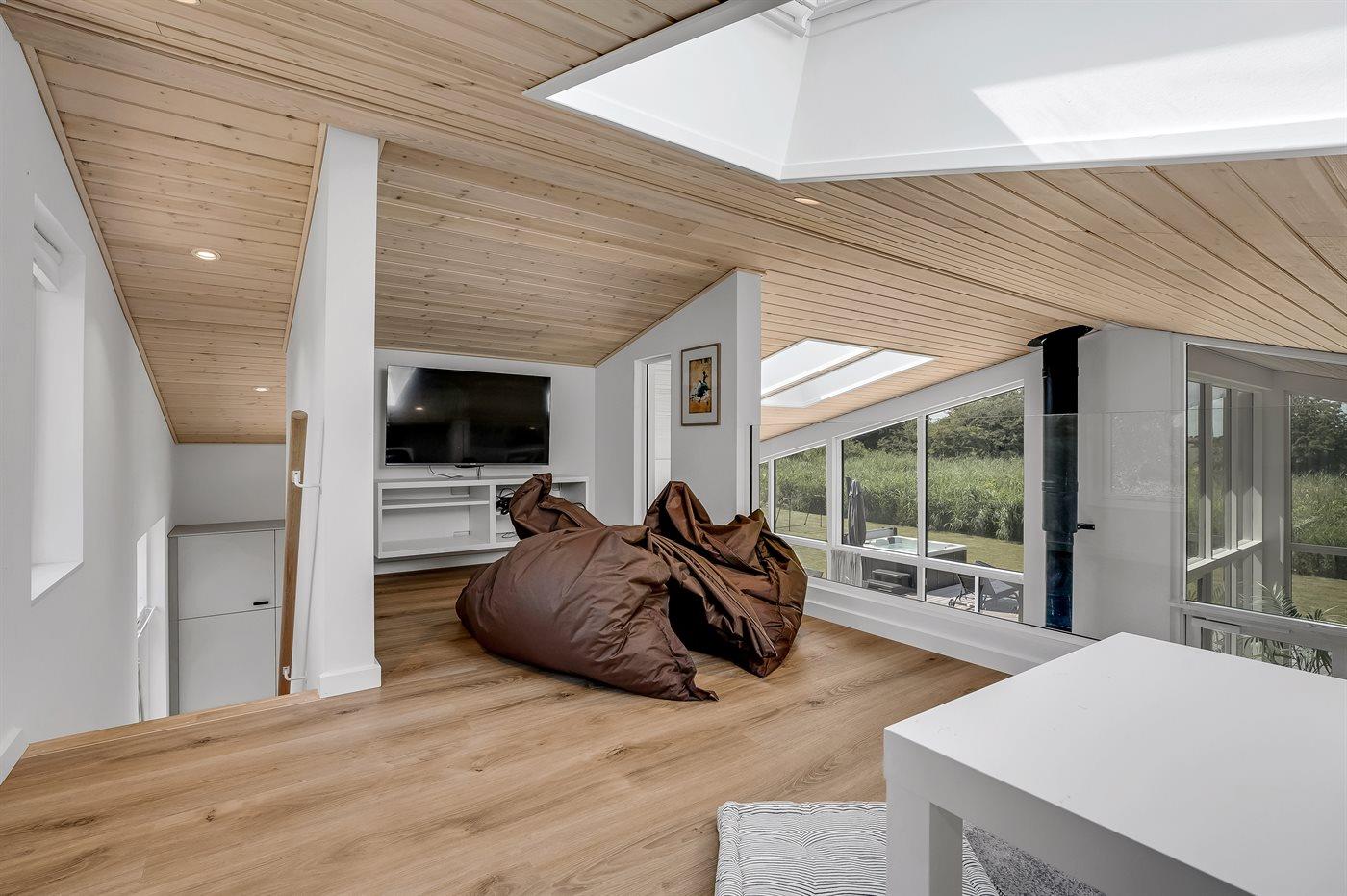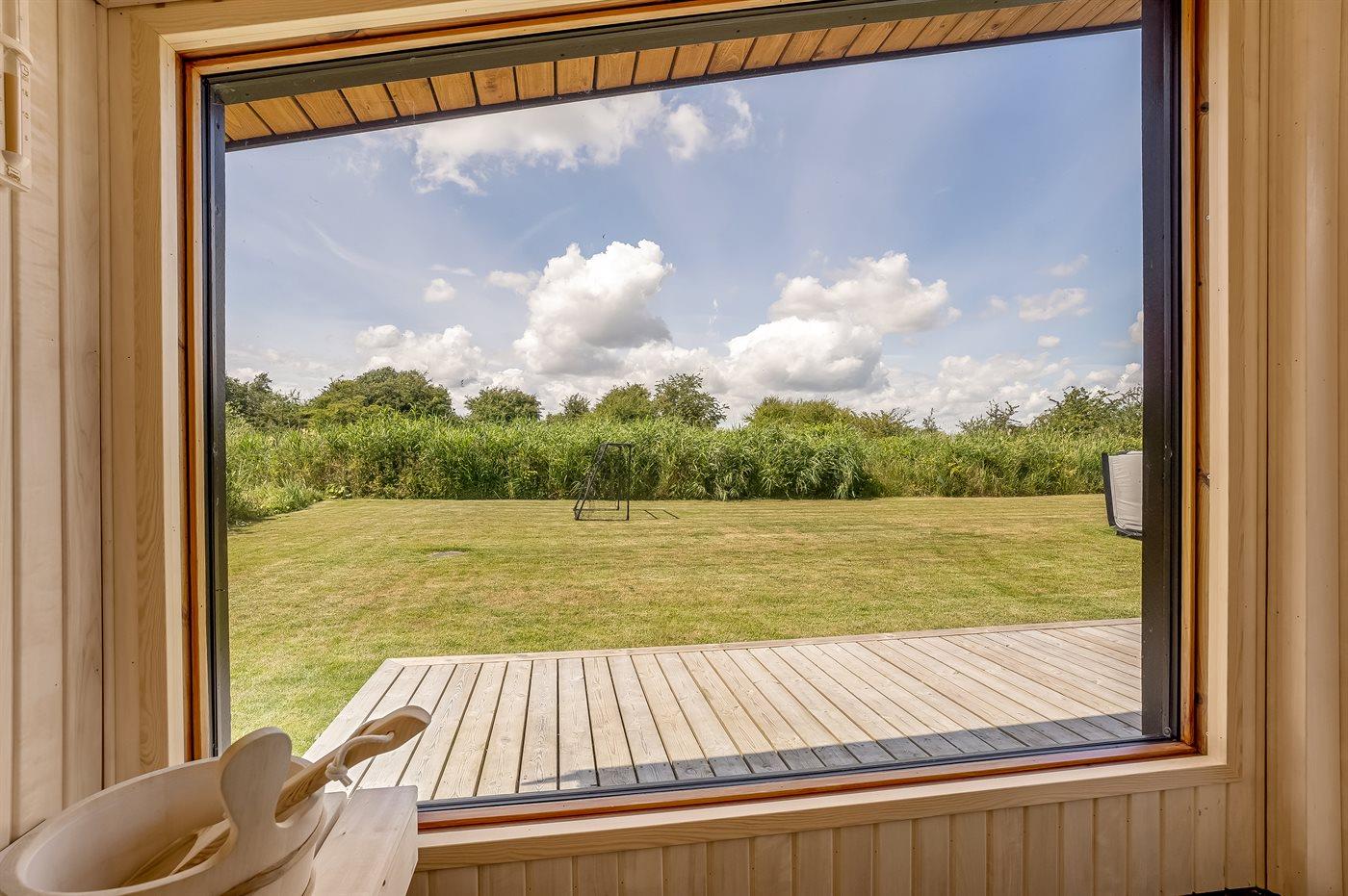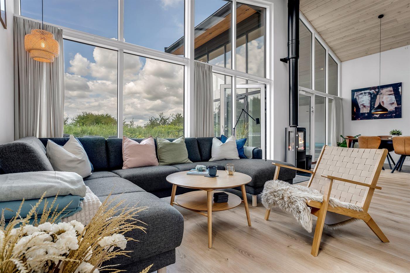 Fritidsbostaden ligger på en 940 m² stor anlagd trädgård. Avstånd till hav är 900 m. Närmeste affär ligger på ett avstånd av 400 m. Det finns en golfbana på ett avstånd av 2000 m. Till fritidsbostaden hör terrass. Dessutom finns det övertäckt terrass. Fotbollsmål. Avstånd till en lekplats er 1000 m. Utomhus sauna. Utomhus dusch. Det finns grill til förfogande. Det finns carport till förfogande. Det finns uttag för att ladda elbil vid huset. CEE kontakt. Med 11 kW laddningseffekt. P-plats på tomten.