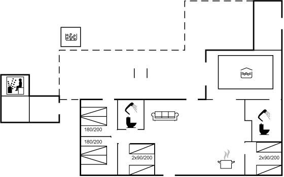 I swimmingpoolen inomhus finns det möjlighet till lek och trevlig samvaro. Swimmingpoolen mäter upp till 2,8 m på bredden, 4,6 m på längden och den är upp till 1,5 m djup. Vattnet är mellan 24 och 28° C varmt. Det finns golvvärme i swimmingpoolområdet.