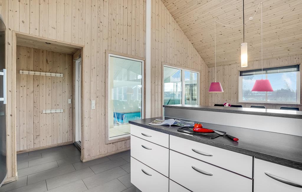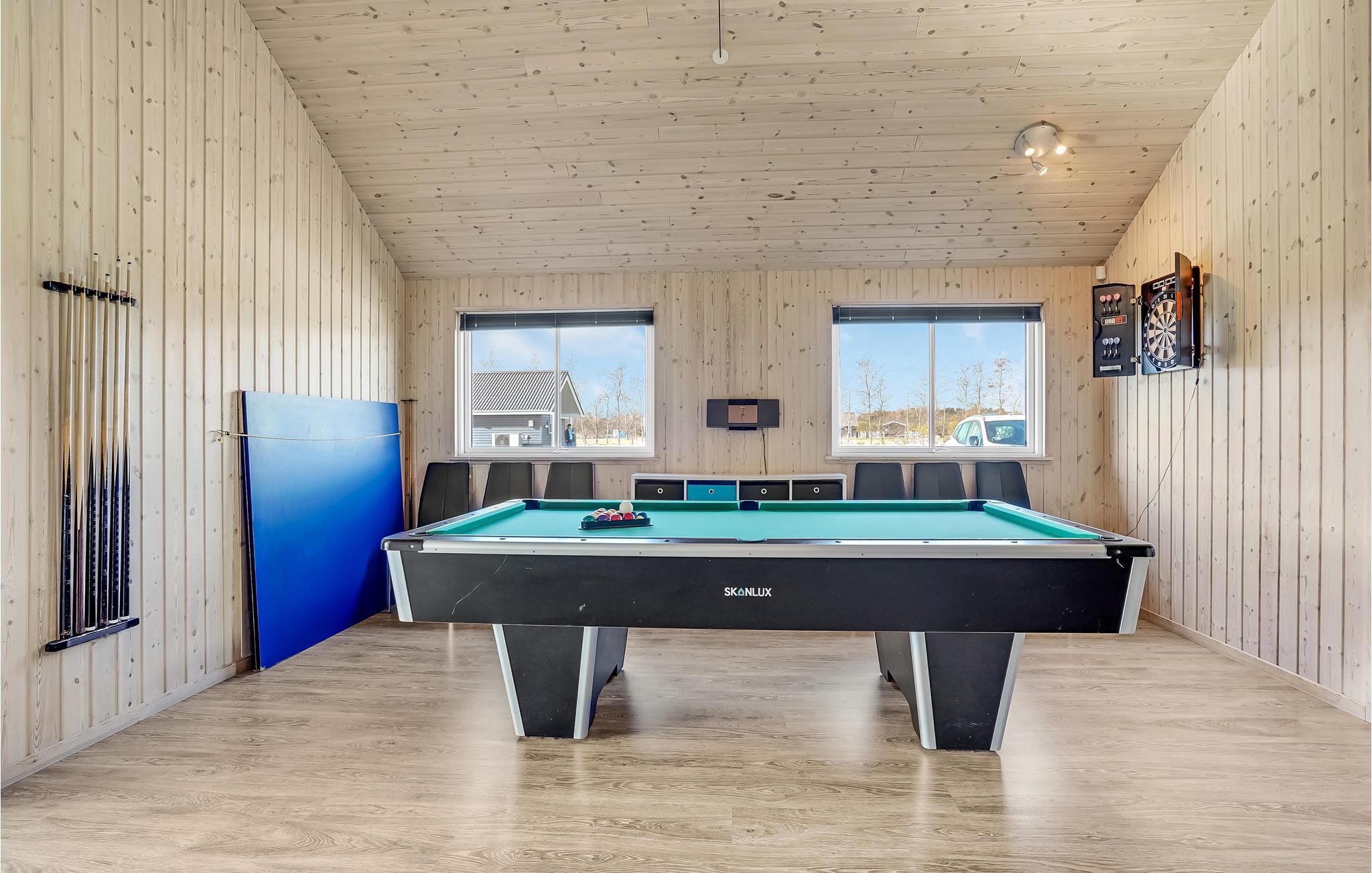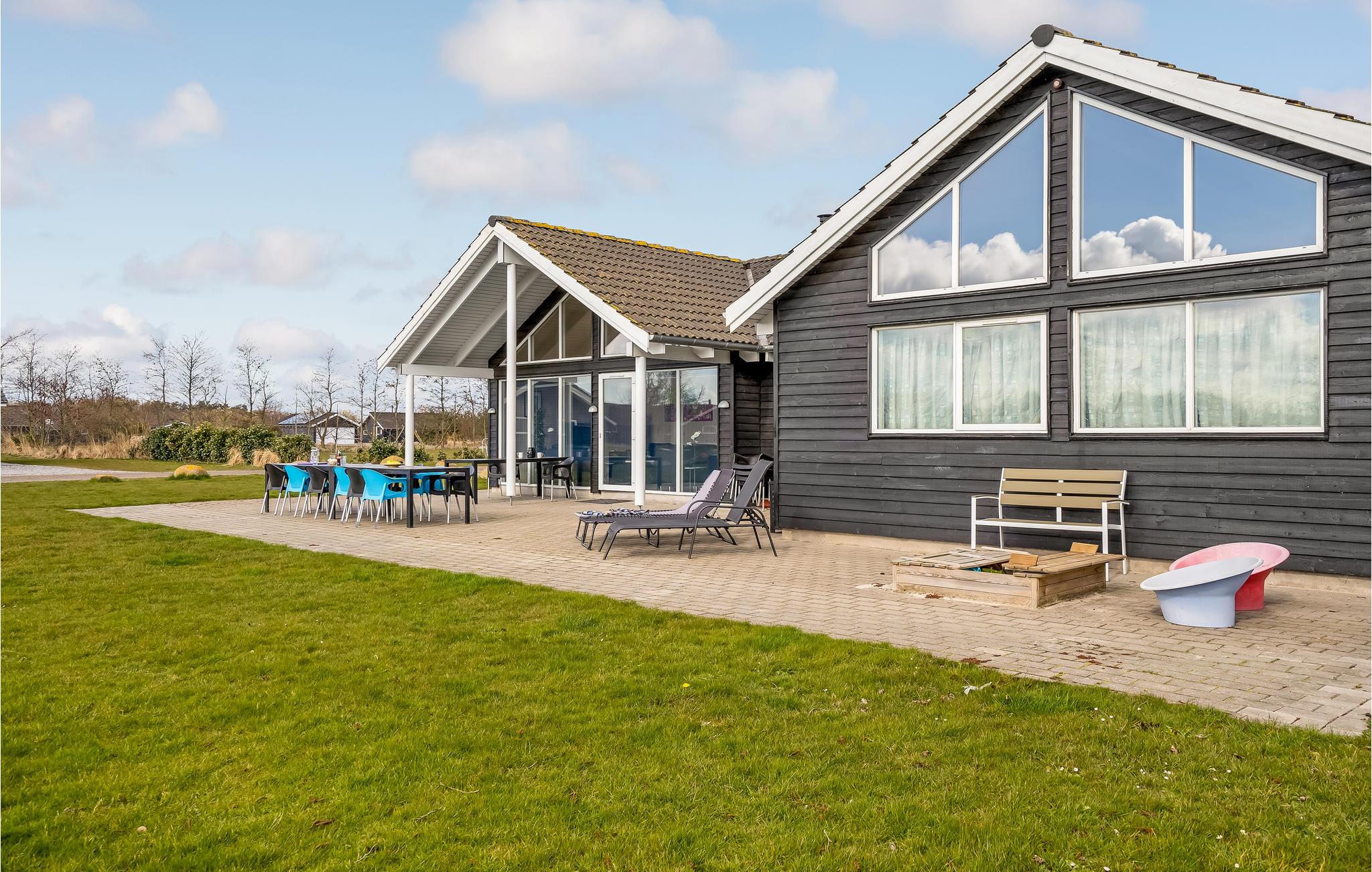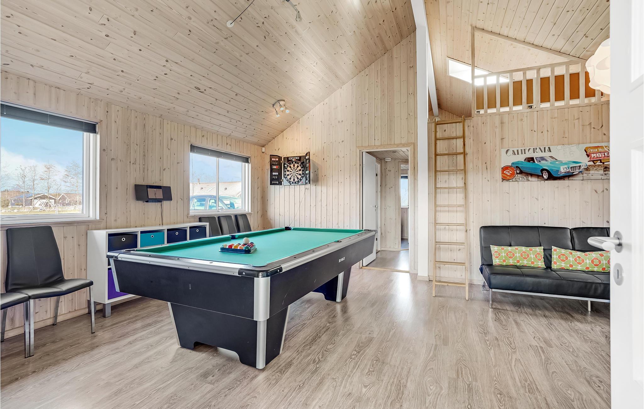 Ovanligt vackert semesterhus i trä med en underbar pool, byggt 2012. Det finns gott om plats inte bara på den delvis täckta terrassen med bekväma trädgårdsmöbler eller på tomten, utan även inne i semesterhuset. I poolområdet lockar förutom poolen även rutschkanan, bubbelpoolen för 6 personer och bastun. Det finns golvvärme för din komfort. Poolen mäter 5,5 x 3,3 m och är 1,2 m djup. Det finns även ett badrum med dusch i poolområdet. Köket är modernt inrett liksom resten av huset. Köket och vardagsrummet bildar ett enda rum. Det är utrustat med diskmaskin, mikrovågsugn, frys, varmluftsugn och spisen har keramiska kokplattor. En vedeldad kamin värmer vardagsrummet. De har DVD-spelare och platt-TV-programmet levereras via en gemensam antenn. Det finns 6 sovrum i huset, varav 2 med dubbelsängar. Det finns även 4 sovplatser på Hems. För att vara aktiv har du dart, Wii och PlayStation3 samt trådlös internetuppkoppling. För de minsta gästerna finns det en barnsäng, barnstol, lektorn och en studsmatta i den stora trädgården. Det finns vackra ljusa trägolv och golvvärme i alla rum. Ett underbart semesterhus. Marielyst har också mycket att erbjuda. Du kan naturligtvis handla bra, men du blir också kulturellt underhållen och kan köpa hantverk som souvenirer. Nattlivet är också livligt här. Dessutom har staden en underbar sandstrand och det finns till och med ett fågelskyddsområde i närheten. Huset hyrs inte ut till ungdomsgrupper.