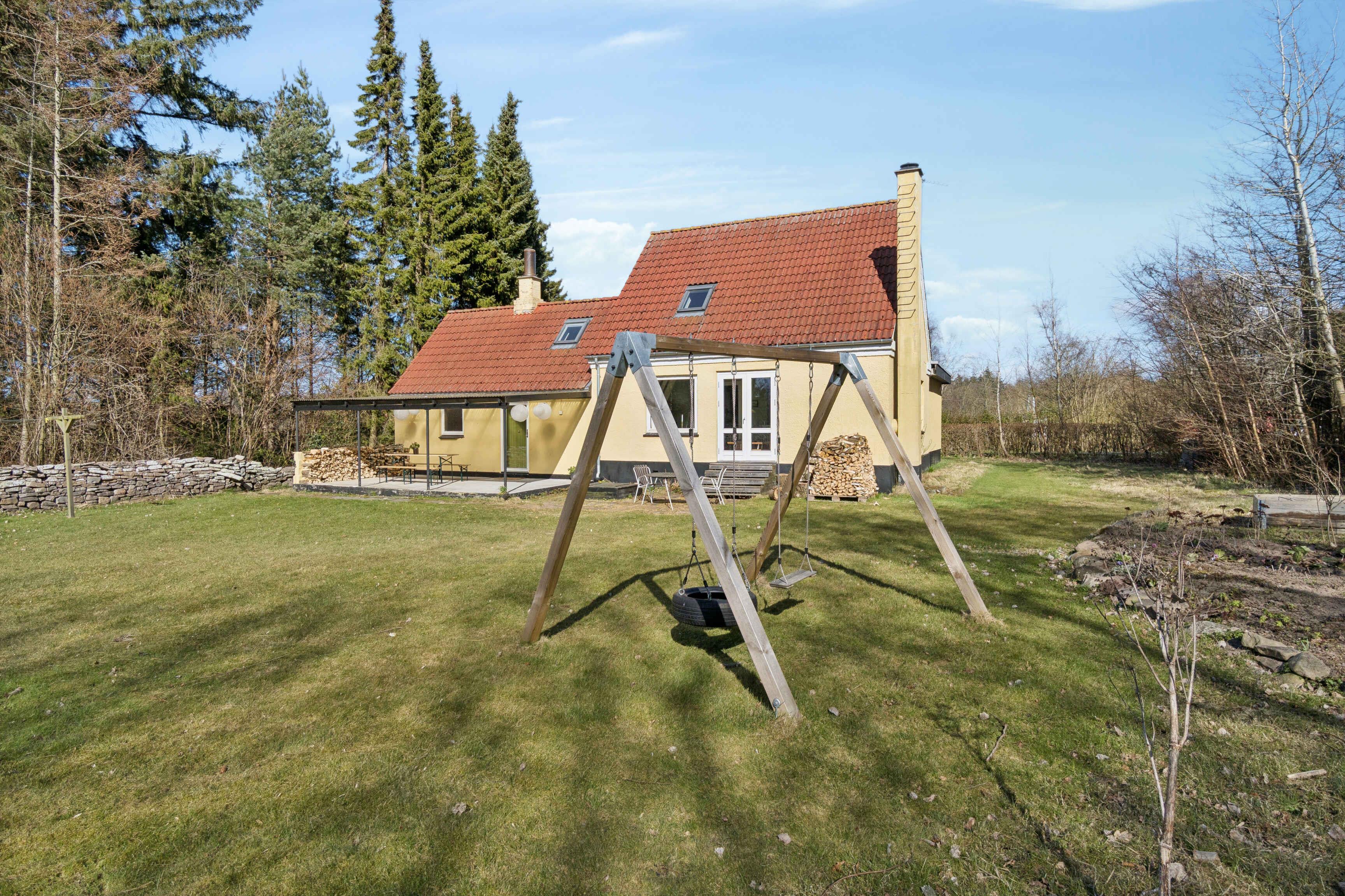 The holiday home is located in peaceful surroundings on a large natural plot close to Balka Beach and Nexø town. There is plenty of space both inside and out in the large garden.