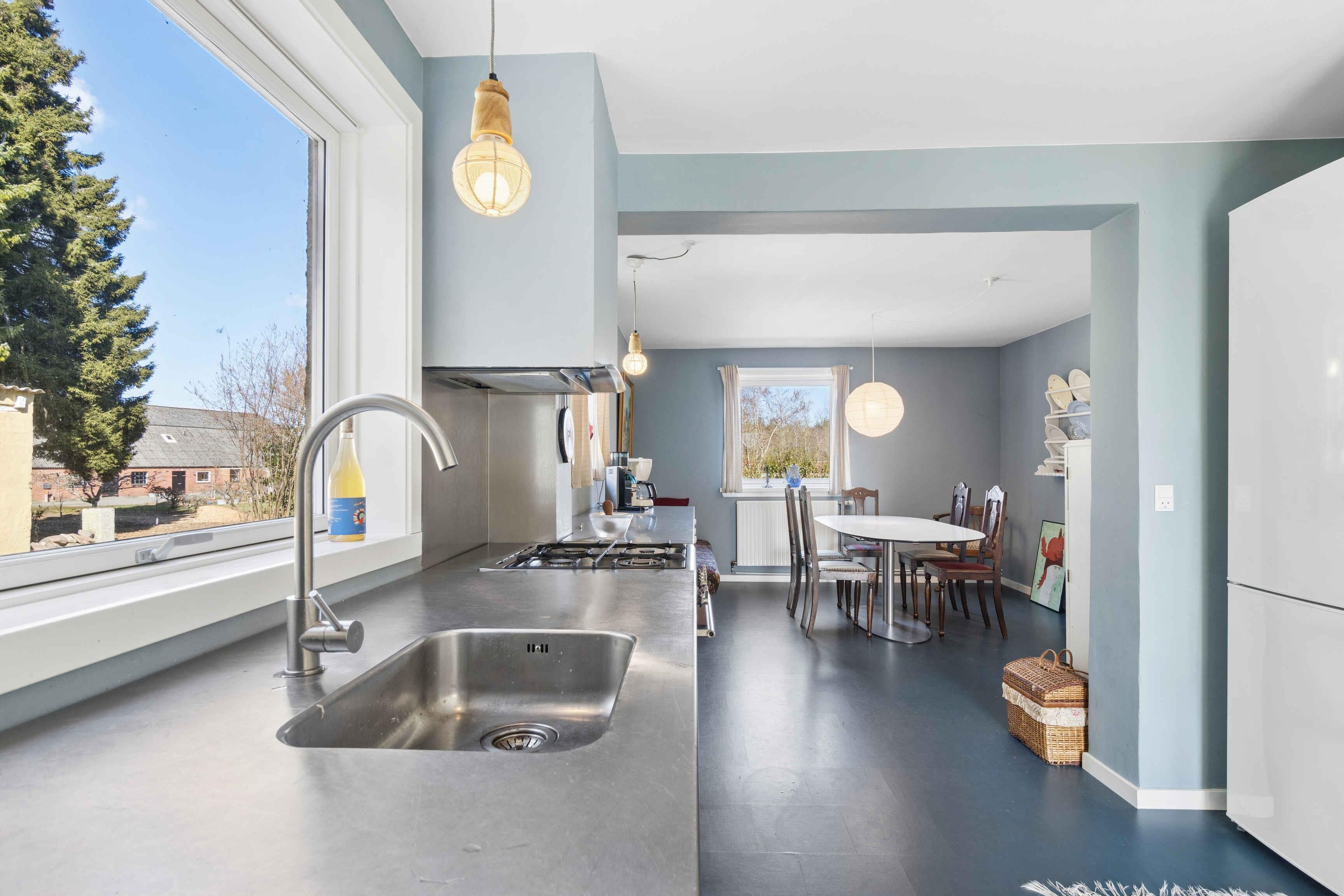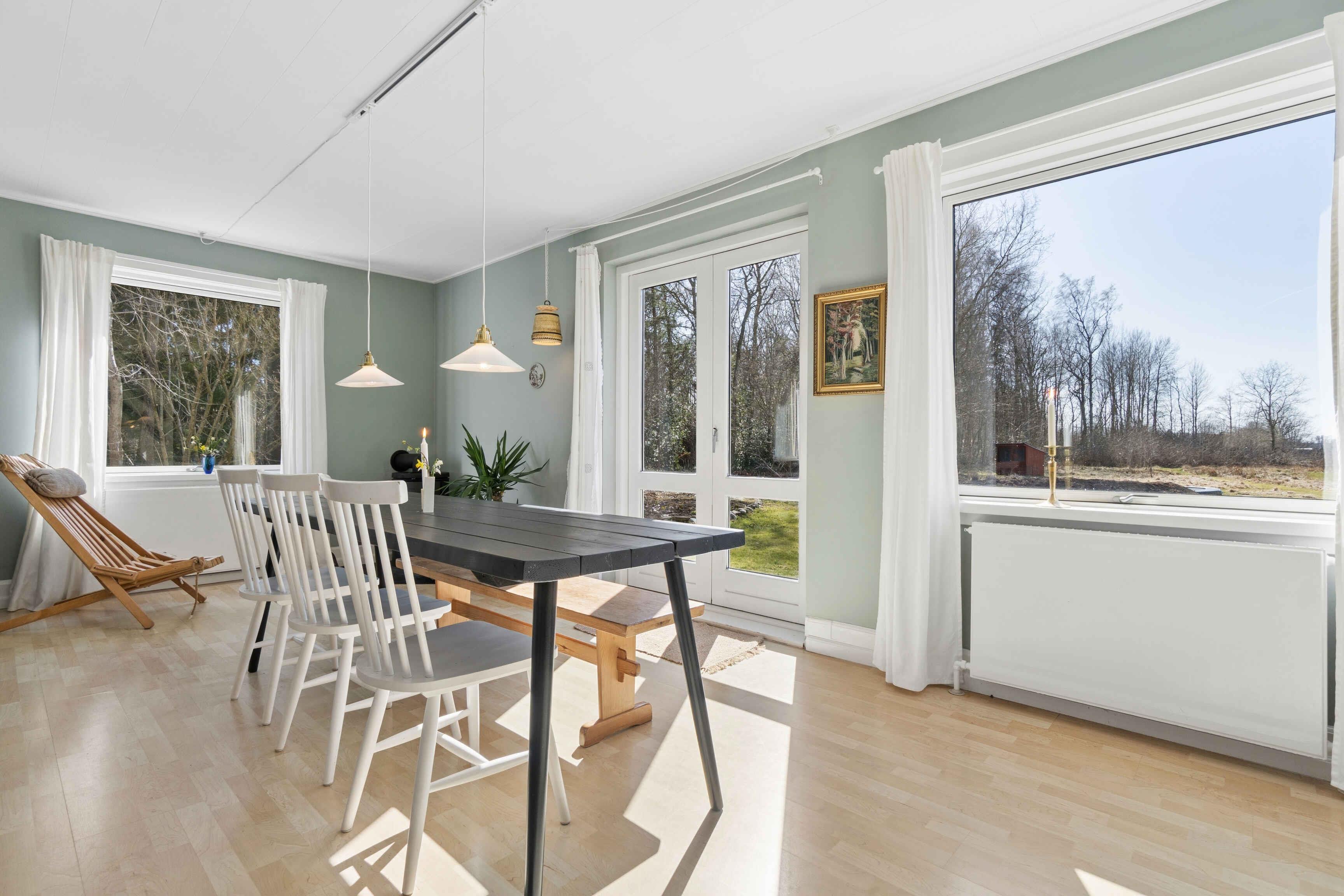 The house measures 163 m² and was built in 1901. It has been continuously renovated, most recently in 2020. There is plenty of space for the whole family in the spacious kitchen-diner or in the large living room with dining area. Outside, you can enjoy the 5,600 m² plot surrounding the house. There are terraces with garden furniture on both sides of the house, and the terrace facing the garden is covered. The garden offers swings, a trampoline, a fire pit, and a nearby forest where children can explore and build dens. Both Nexø and Balka Beach are within easy reach, making the house ideal for a family holiday on Bornholm. Nexø offers shopping, mini golf, restaurants, and more. The house includes: 3 bedrooms – 2 with double beds and 1 with 2 single beds Fully equipped kitchen with large dining area Living room with dining area and seating area Bathroom with shower cabin and bathtub Spacious entrance hall