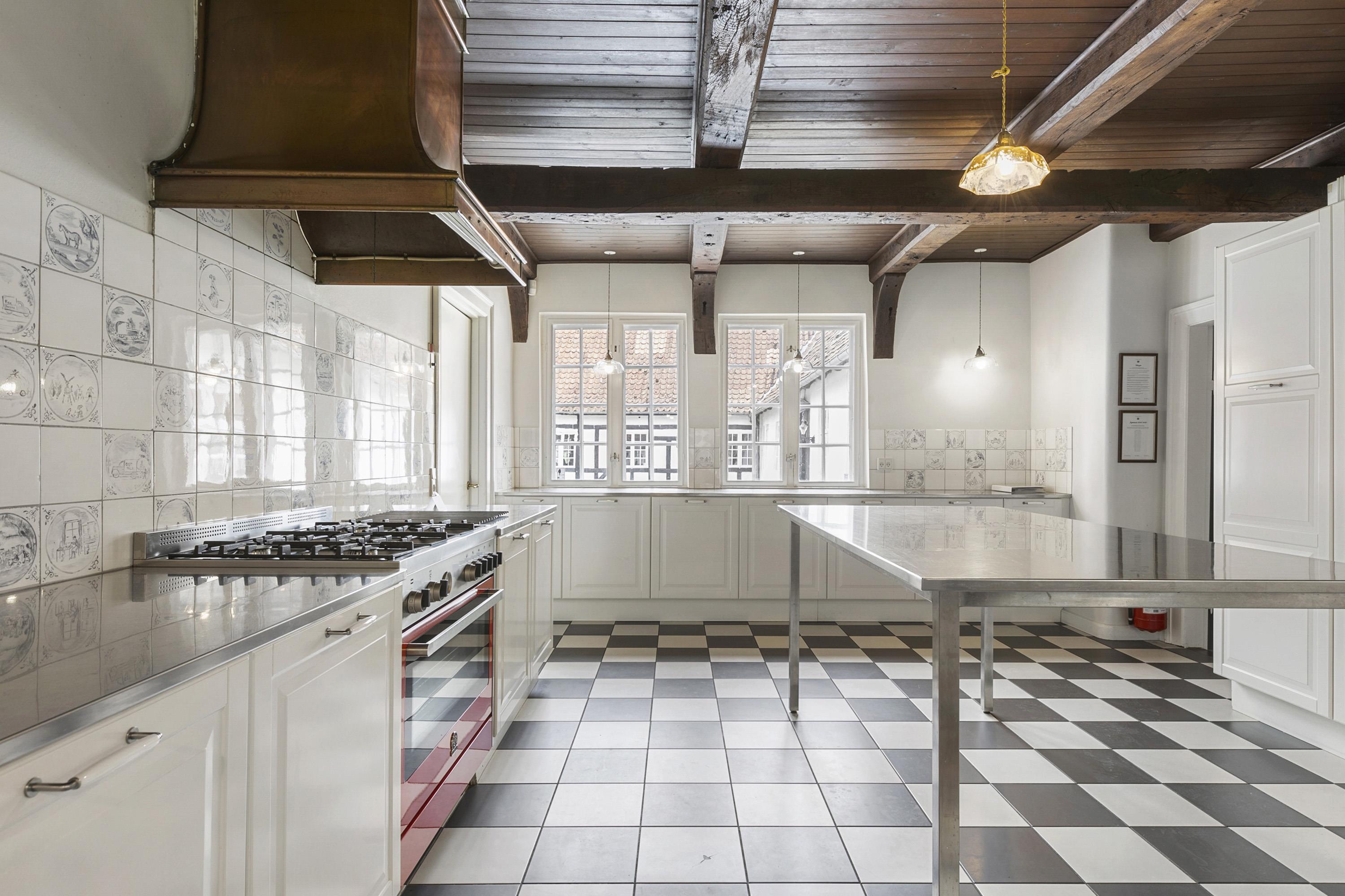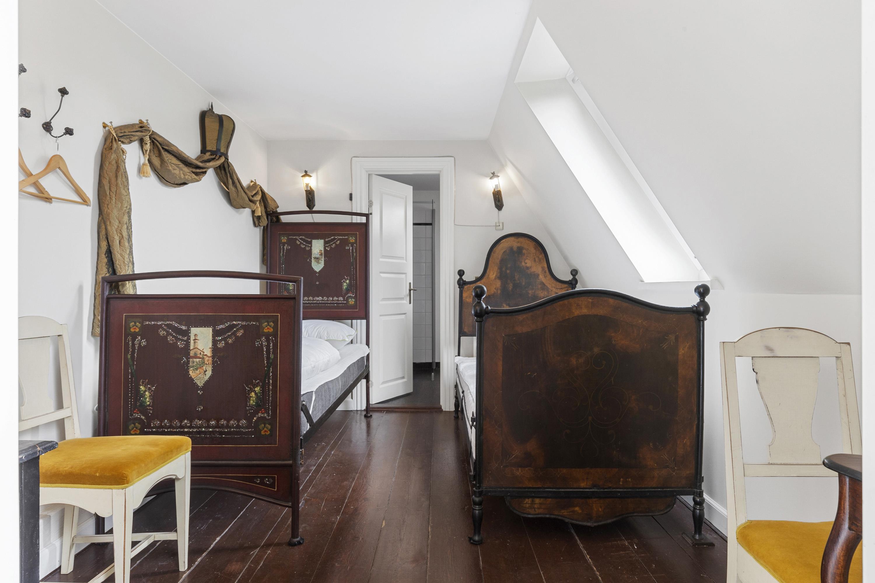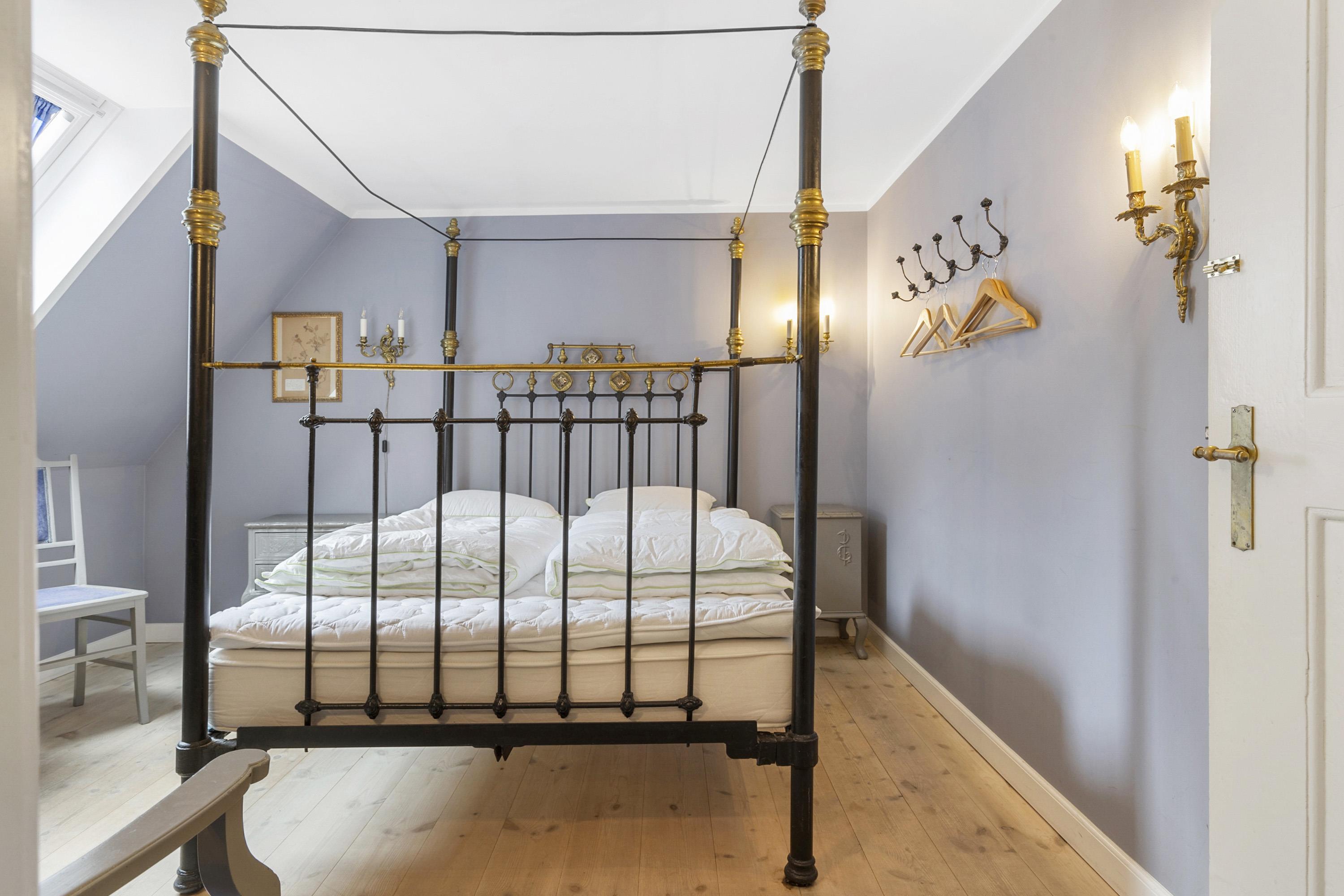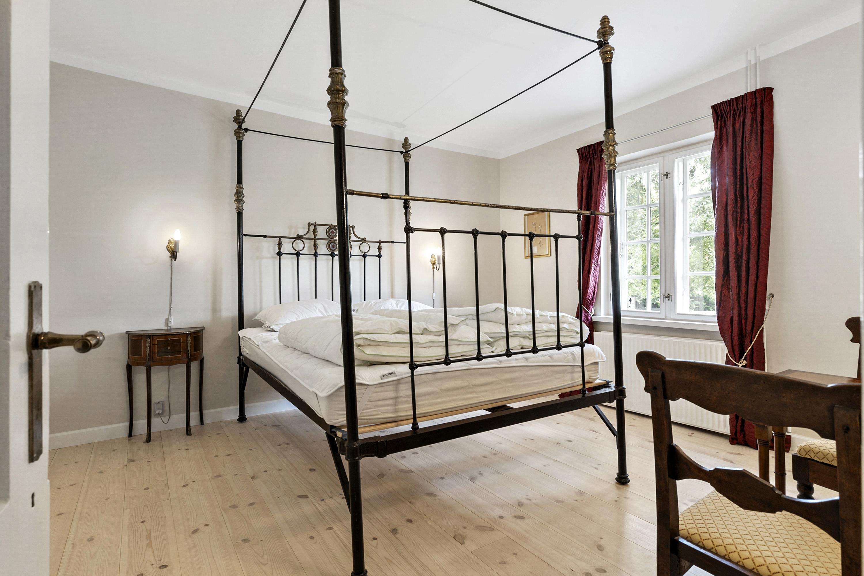 Once you have taken in the surrounding nature and the beautiful buildings, the experience continues inside the manor. Here awaits an interior that could be described as a consistent and complete ‘manor look’. Furniture, colours, and décor offer elegant solutions worthy of the beautiful building and its long history. This applies both to common areas and individual rooms. Everywhere, you sense the connectivity in design and, not least, respect for the manor. From the checkered floor in the kitchen to the rustic plank floors and furniture with Rococo and Empire touches. The details are many, beautiful, and inspiring, whether you are hosting a party or discussing business.