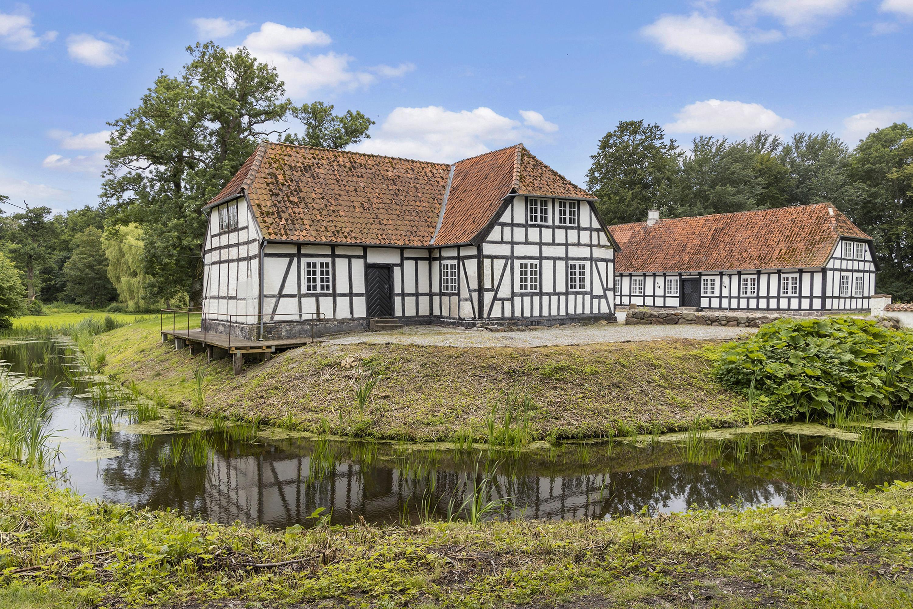Northern Fyn is a hilly, green, and beautiful natural area with many nature gems. The physical surroundings of Jerstrup Manor are no exception. You will notice this on the way to the beautiful half-timbered manor, located a bit off the road connecting Bogense and Odense. Here, Jerstrup Manor appears, situated on a 35,000 m2 natural area, where the manor is surrounded by moats and a landscape of forests, vegetation, and lakes. At the same time, Jerstrup Manor exudes its long history, where counts, noblemen, and even royalty have roamed since the 1300s. Ask the walls, and they might just tell you about an exciting piece of Danish history.