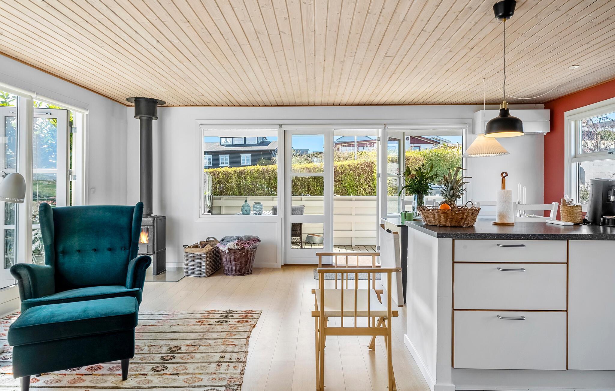 Omgivet av en välskött trädgård och med utsikt över vidsträckta fält, är ditt semesterhus den perfekta platsen för en lugn semester i en naturlig miljö. Gör dig bekväm i det ljusa vardagsrummet. Använd den mysiga sittgruppen med fåtölj och soffa för avkopplande timmar med läsning eller en filmkväll vid den vedeldade kaminen. Laga mat tillsammans i köket med öppen planlösning och angränsande matplats. Njut av dina måltider här med vänner eller planera din dag över en kopp kaffe. Den vänliga inredningen skapar en mysig atmosfär där du snabbt kommer att känna dig som hemma.