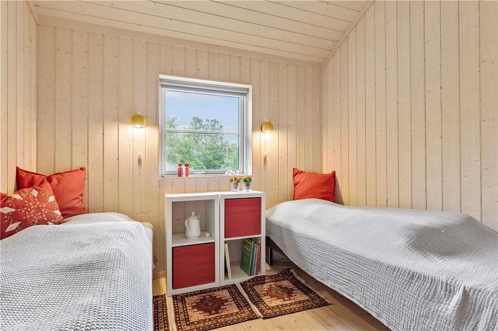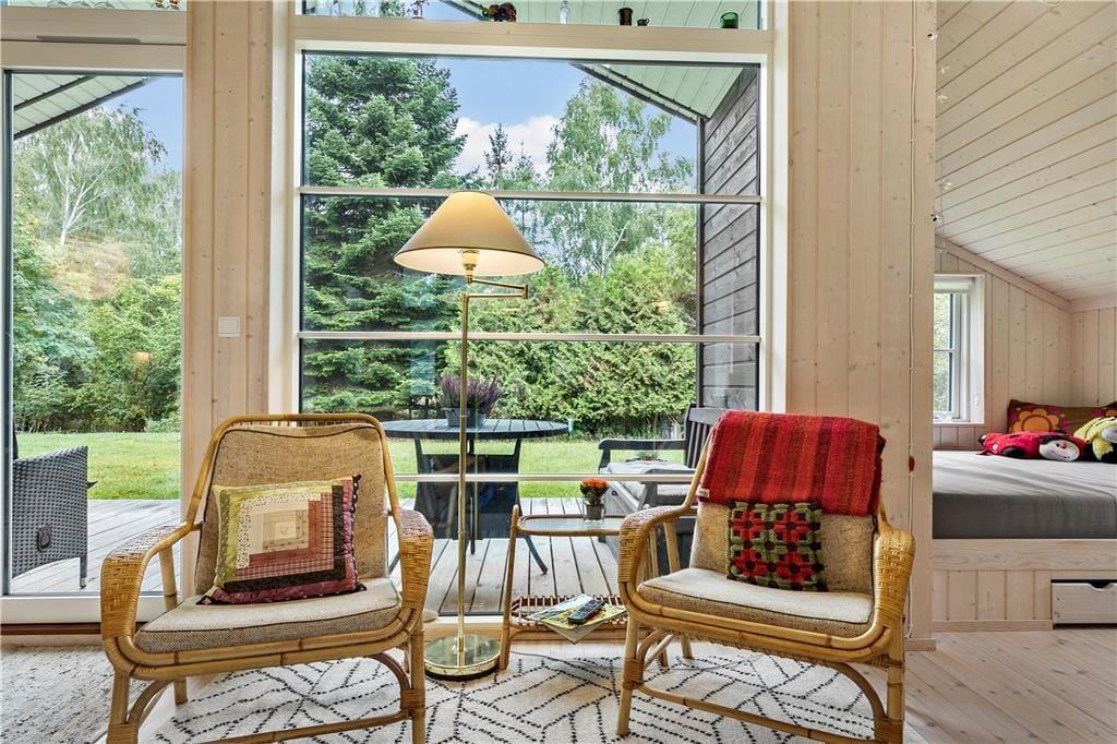 Das Haus ist mit 3 guten Schlafzimmern ausgestattet, das eine mit Doppelbett, die anderen mit gesamt 3 Einzelbetten und guten Schrankräume. In dem geräumigen Wohnzimmer finden Sie den Brennofen, das Fernsehen und eine gemütliche Bettnische, worin zwei schlafen können. Die Küche ist hell und offen mit Geschirrspüler. Von dem Wohnzimmer gelangt man auf die große Terrasse, wo Sie den frisch gegrillten Fisch genießen und die Rehe beobachten können, die oft das Grundstück kreuzen. Sie haben auch ein Badezimmer mit Dusche.