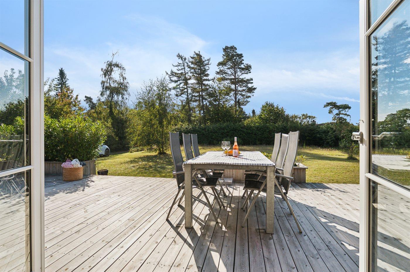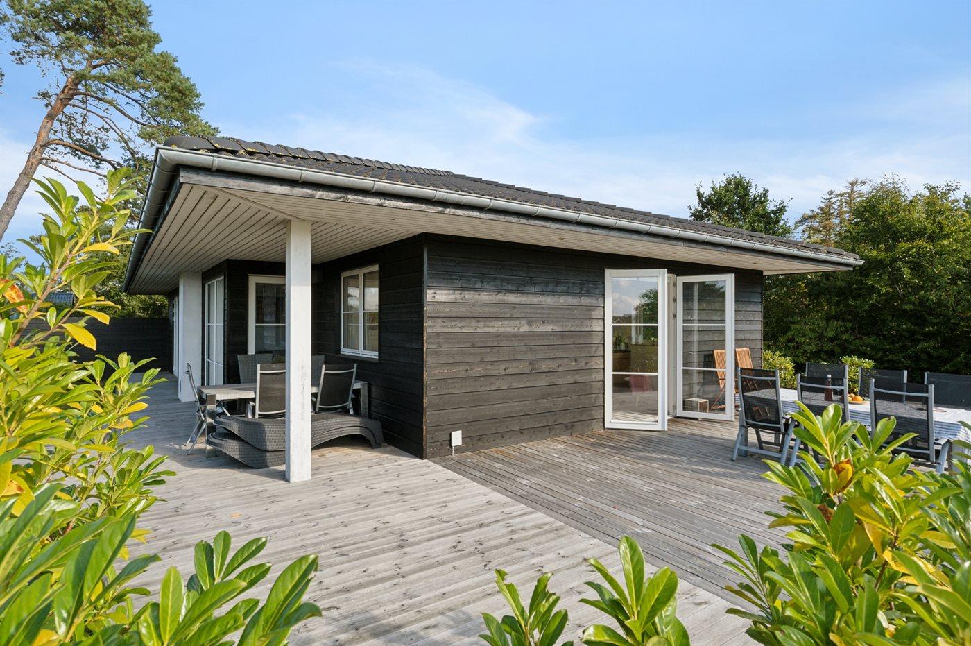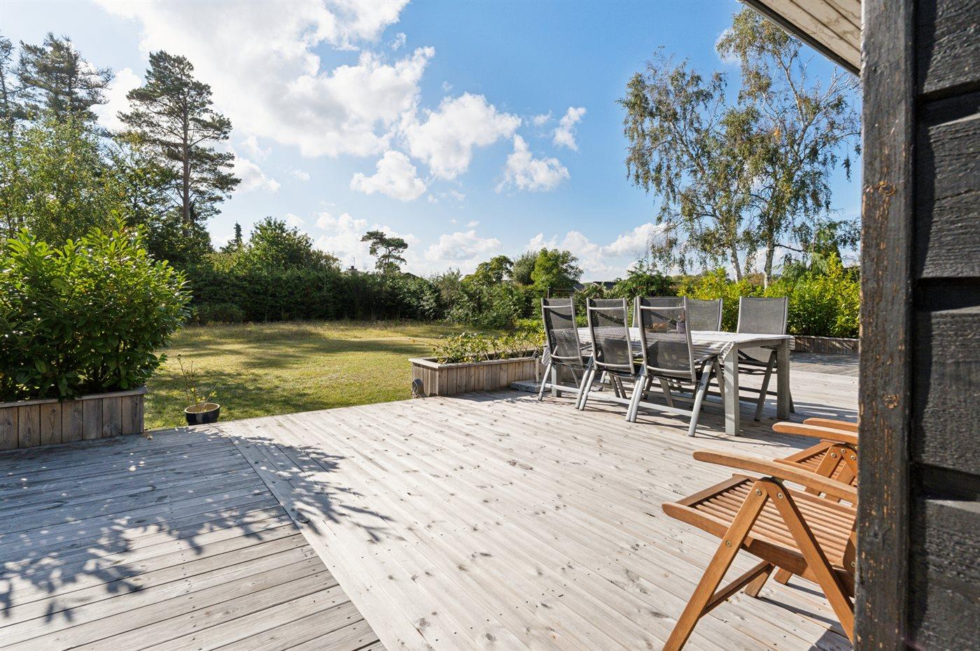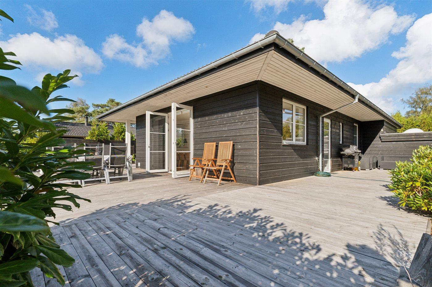 Fritidsbostaden ligger på en 1385 m² stor anlagd trädgård. Avstånd till hav är 1550 m. Närmeste affär ligger på ett avstånd av 950 m. Till fritidsbostaden hör terrass. Dessutom finns det övertäckt terrass. Det finns grill til förfogande. P-plats på tomten.