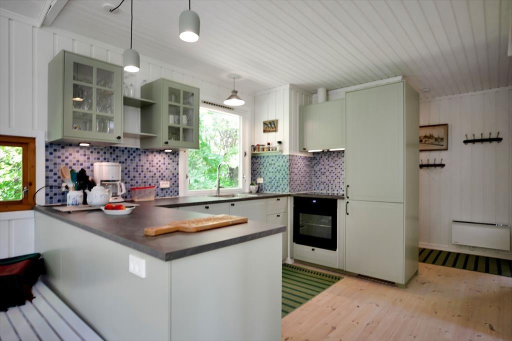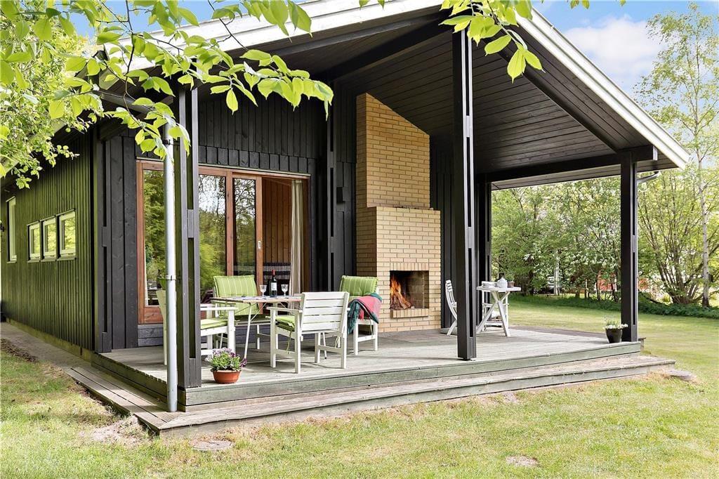 Das Haus ist mit gemütlichem Wohnraum mit Bettcouch, Holzofen und Essbereich eingerichtet. Darüber hinaus gibt es eine offene Küche und 2 Schlafzimmer mit beziehungsweise einem Doppelbett und einem Etagenbett. Badezimmer mit Dusche. Vom Wohnzimmer ab gelangen Sie auf die überdeckte Terrasse mit offenem Kamin, wo Sie die gegrillten Fische und ein Glas kaltes Weißwein und den Blick vom Garten, wo die Rehe regelmäßig kreuzen, genießen können.