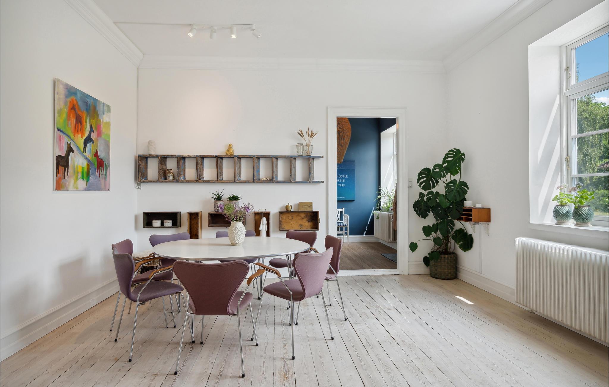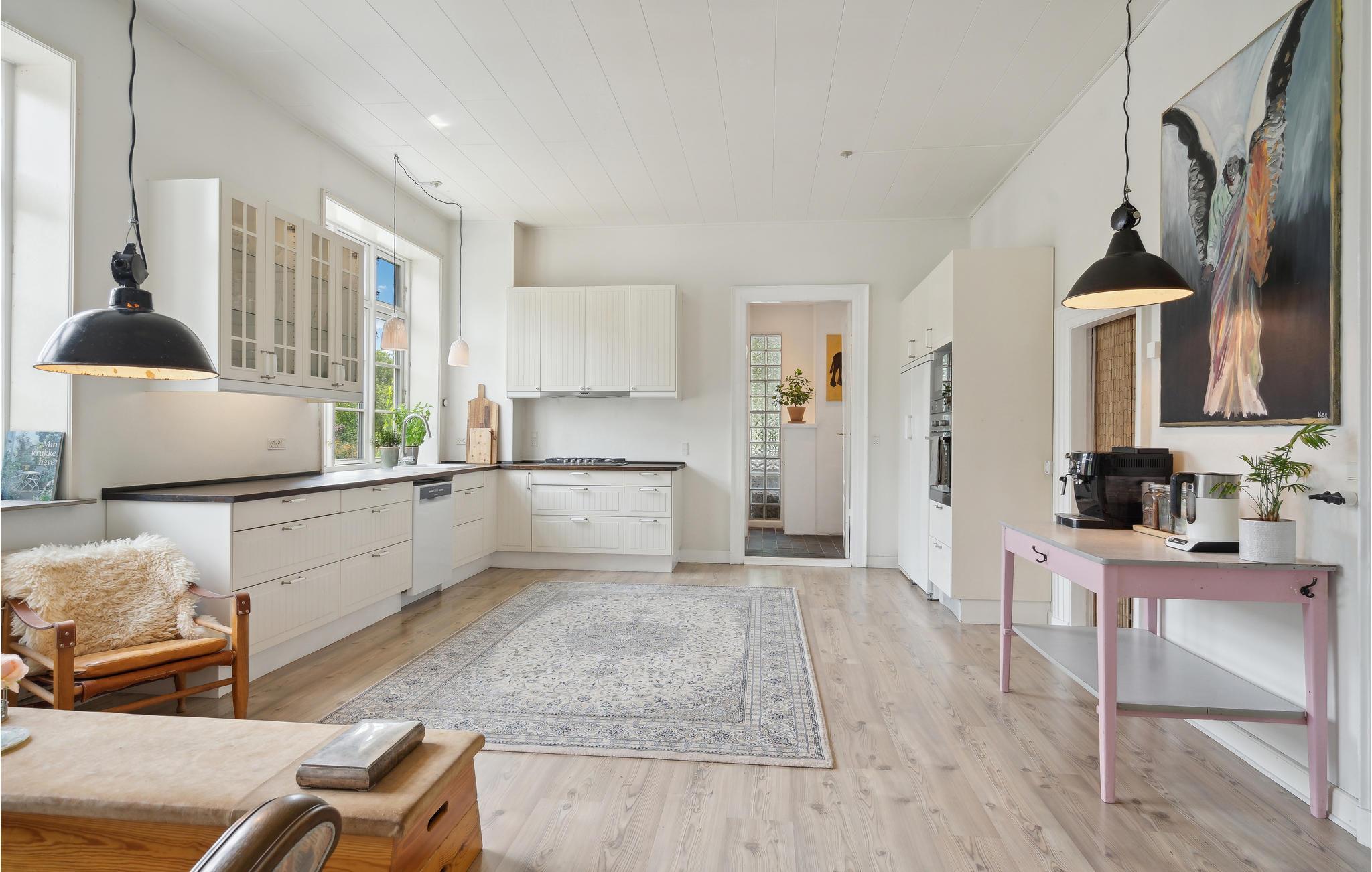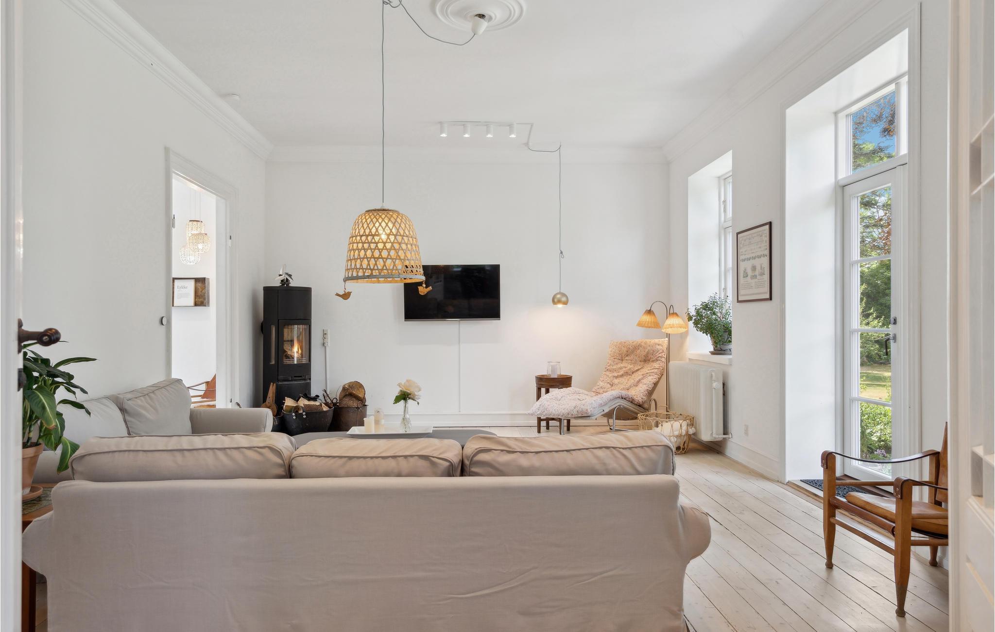 Kom till hamnstaden Søby och tillbringa en härlig semester i denna före detta prästgård, som nu är en privatbostad och semesterhus. Här inne möts du av ljusa rum med vacker inredning och bekväma möbler som gör det lätt att koppla av och njuta av den rogivande atmosfären.