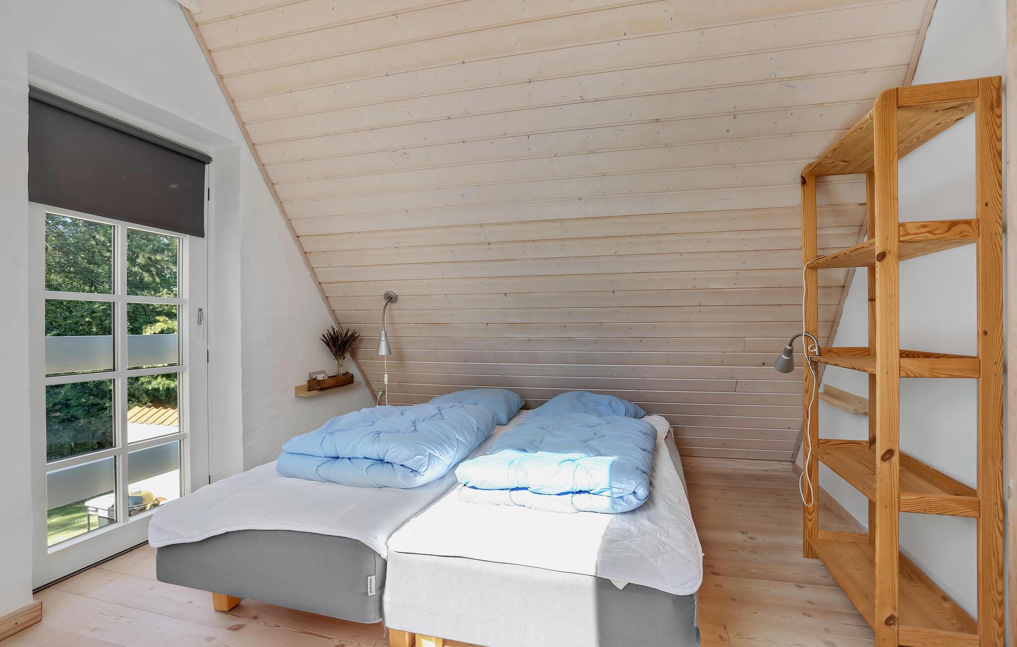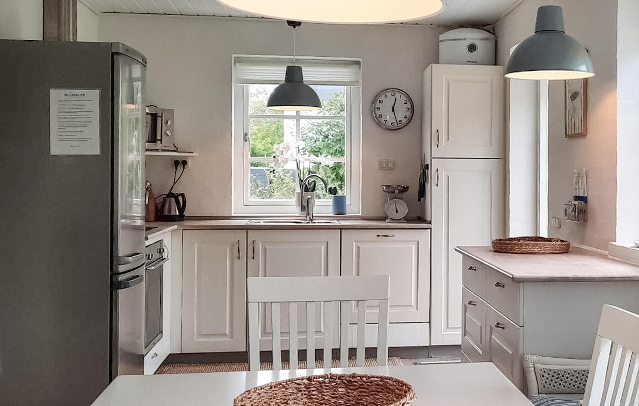 Detta vackra semesterhus har ett ljust och rymligt vardagsrum på bottenvåningen. Här kan du laga mat, leka och äta tillsammans med din familj eller koppla av i soffan bredvid den mysiga öppna spisen och framför TV:n. På övervåningen hittar du avkoppling efter en aktiv dag.