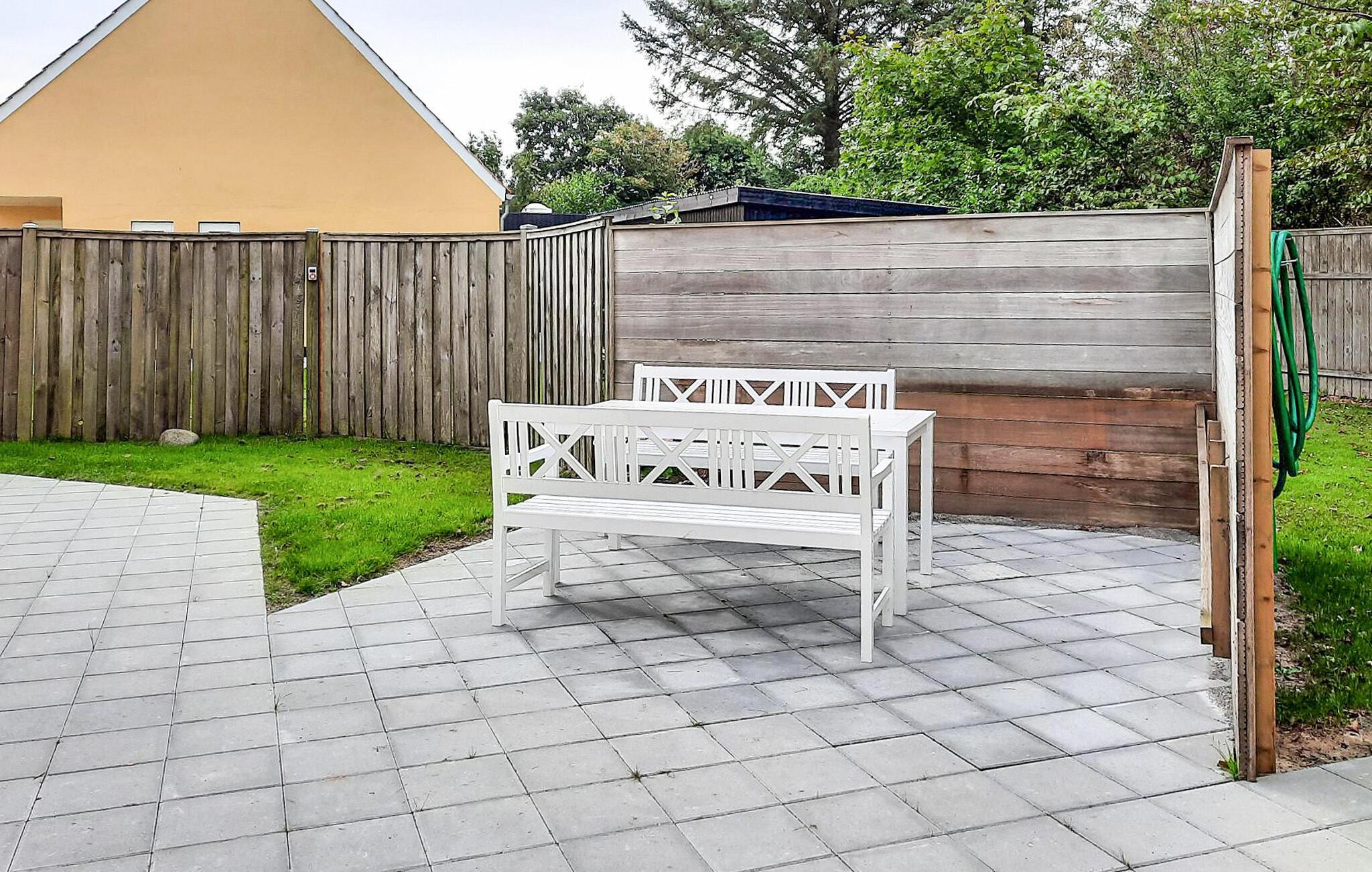 En skyddad terrass erbjuder dig en speciell höjdpunkt. På kvällarna kan ni också grilla tillsammans och njuta av era semestermåltider på terrassen. Medan du njuter av värmen i solstolarna under dagen, kan dina barn leka på lekplatsen i det gemensamma trädgårdsområdet.