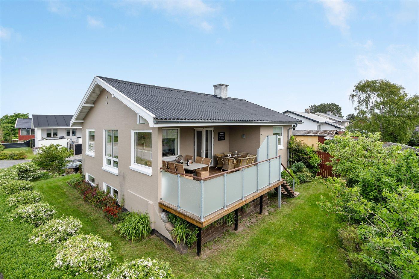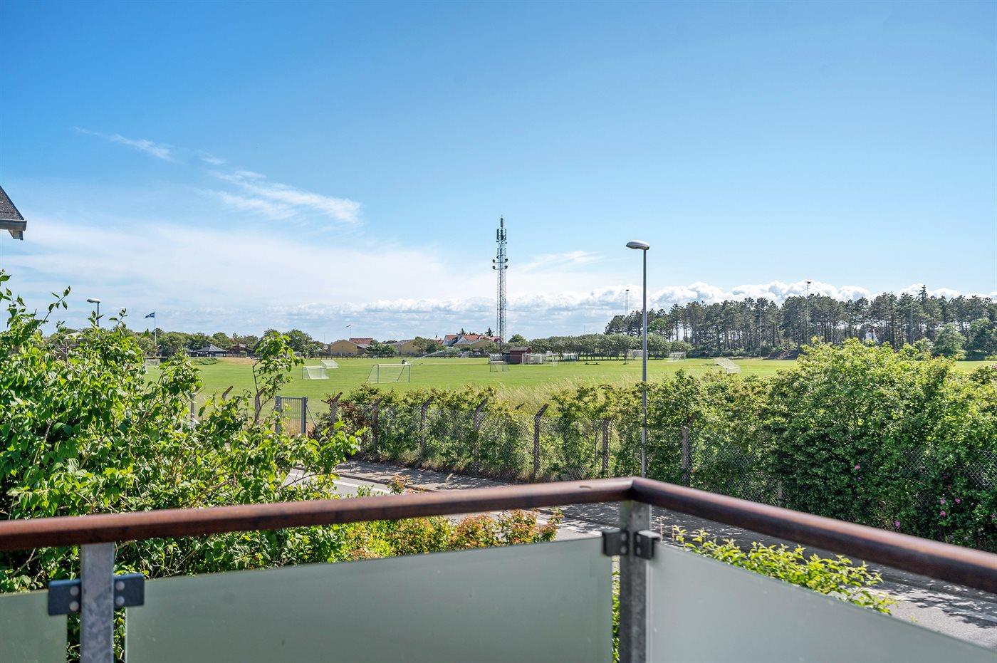 Fritidsbostaden ligger på en 550 m² stor anlagd trädgård. Tomten är inhägnad. Avstånd till hav är 600 m. Närmeste affär ligger på ett avstånd av 500 m. Till fritidsbostaden hör 18 m² terrass. Dessutom finns det 18 m² övertäckt terrass. Härav totalt 18 m² stängt terrass. P-plats på tomten.