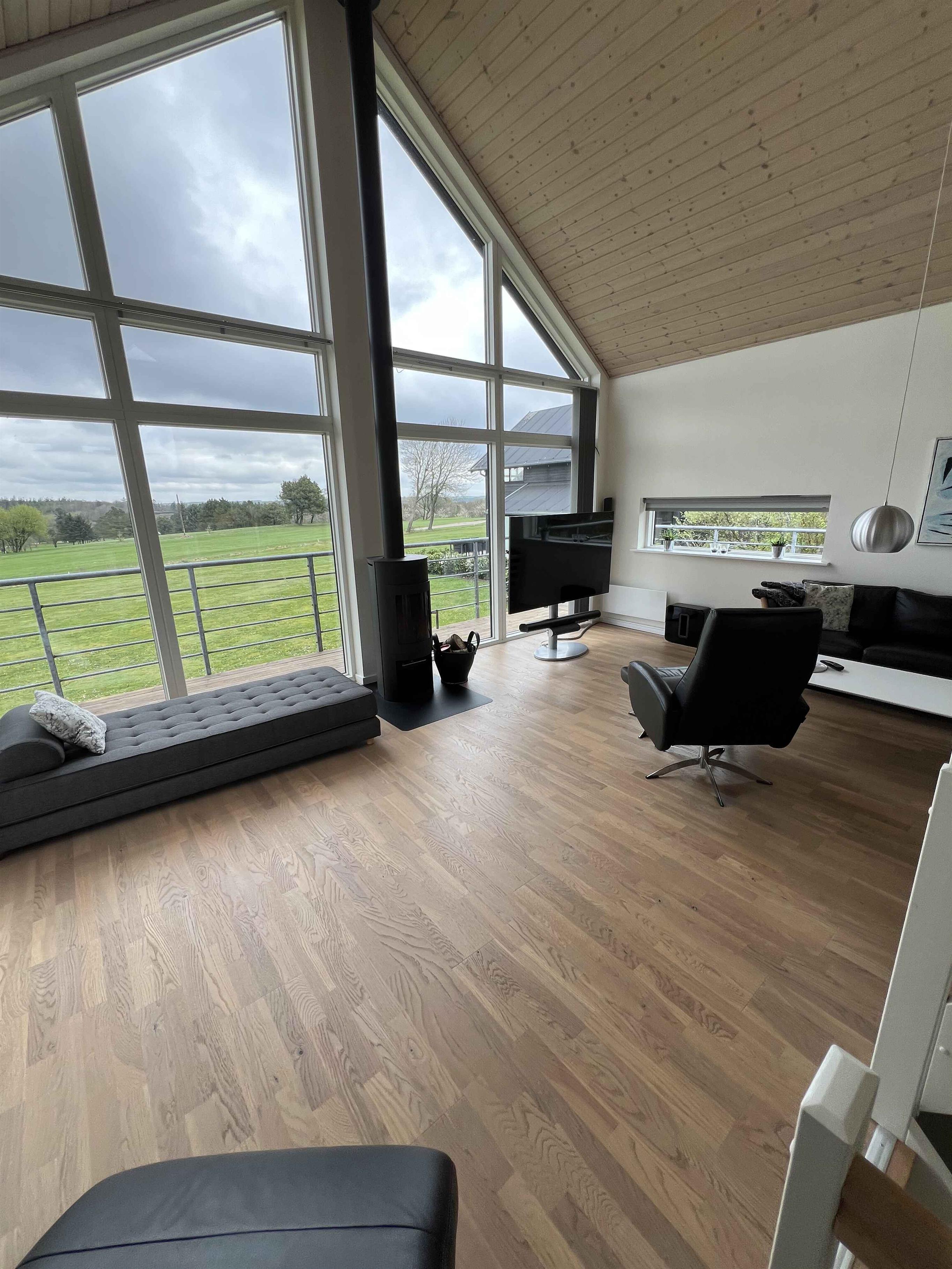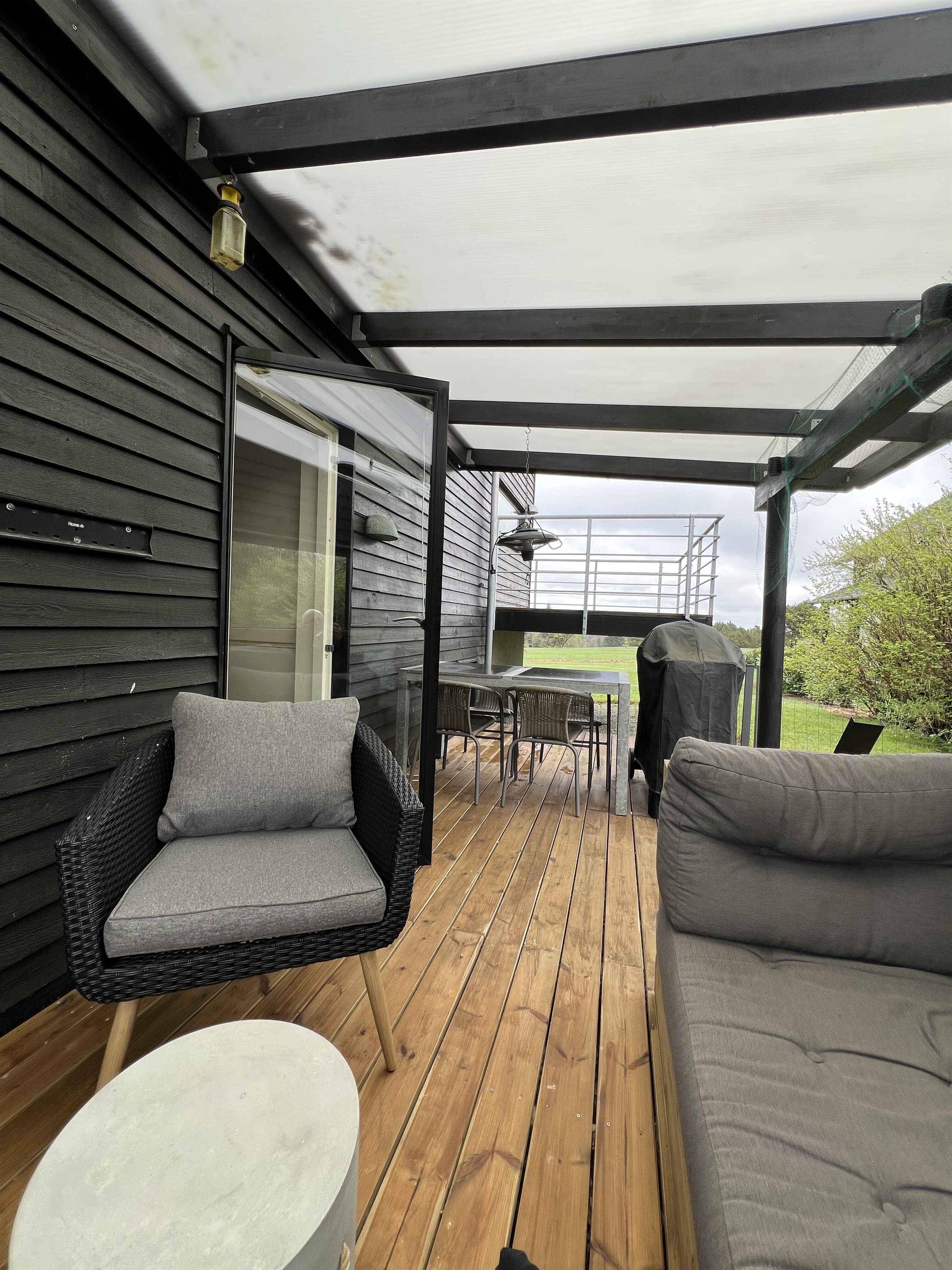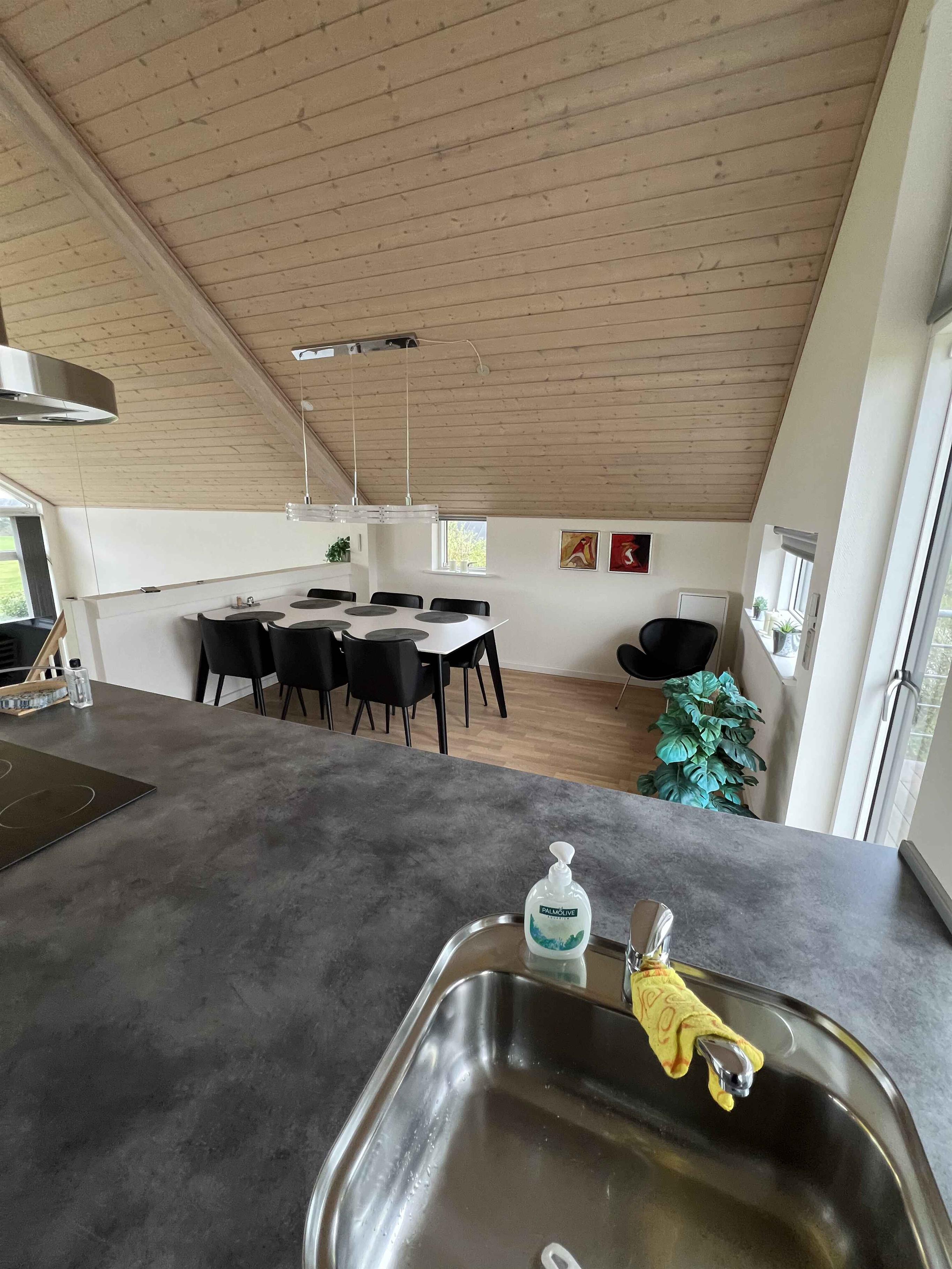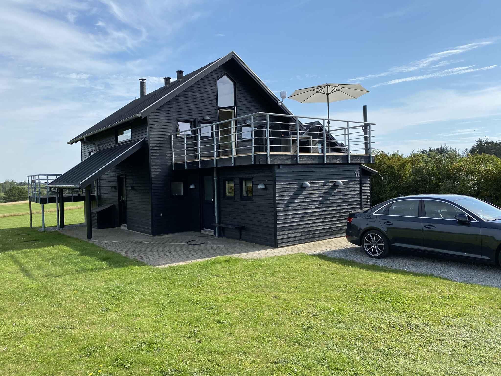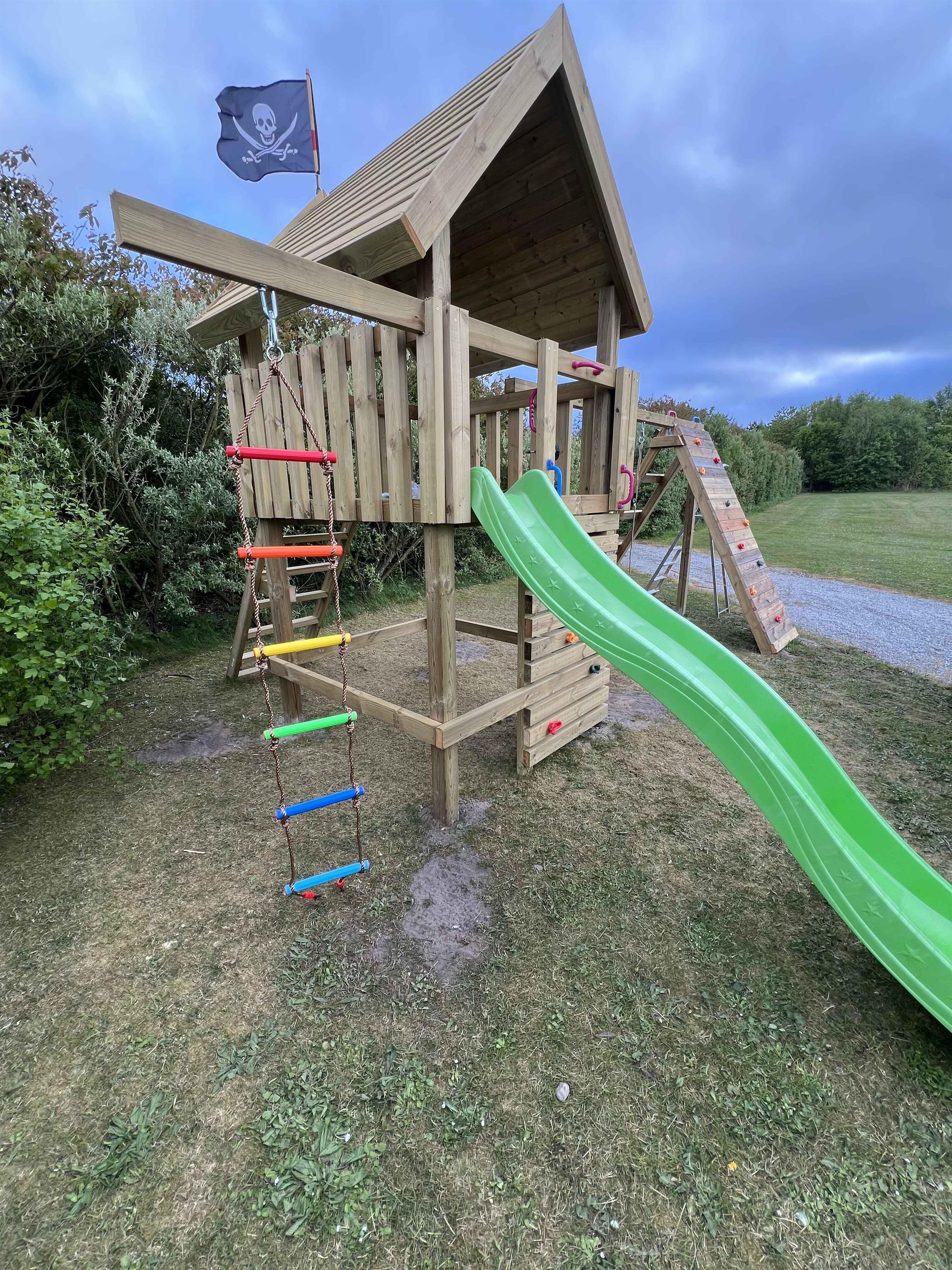 This holiday home is something special. Built on four split levels, it offers a different sense of space than the classic summer house. Here, there’s room, views, and calm – perfect for a holiday where all ages can relax and enjoy something new. The house measures 134 m² and has three bedrooms with a total of six beds. Several cozy living areas allow for both gathering and quiet corners. The layout is practical and functional – ideal for families or friends on holiday. The main living room features a wood-burning stove and connects openly with the kitchen. It’s the perfect place to spend evenings together while the fire crackles and light pours in through large windows. A heat pump and internet are available. Outside, multiple terraces unfold on different levels, letting you find sun, shelter, or shade depending on the time of day. From here, you can enjoy peaceful, open views while children play in the tower, on the swings, or with a ball. There’s a charging station for electric cars, making it easy to bring your vehicle and explore the area. The surroundings offer peaceful, scenic nature with walking trails, birdlife, and wide-open landscapes. A well-regarded golf course is nearby – ideal for a game or simply soaking in the calm atmosphere. Though the sea lies 36 km away, the nearby landscape opens up experiences beyond the beach. Go fishing, cycling, visit small towns or farm shops – or simply unplug and enjoy the quiet. This is a holiday home made for slow days. With both views and variation – inside and out – it stands out from the rest.