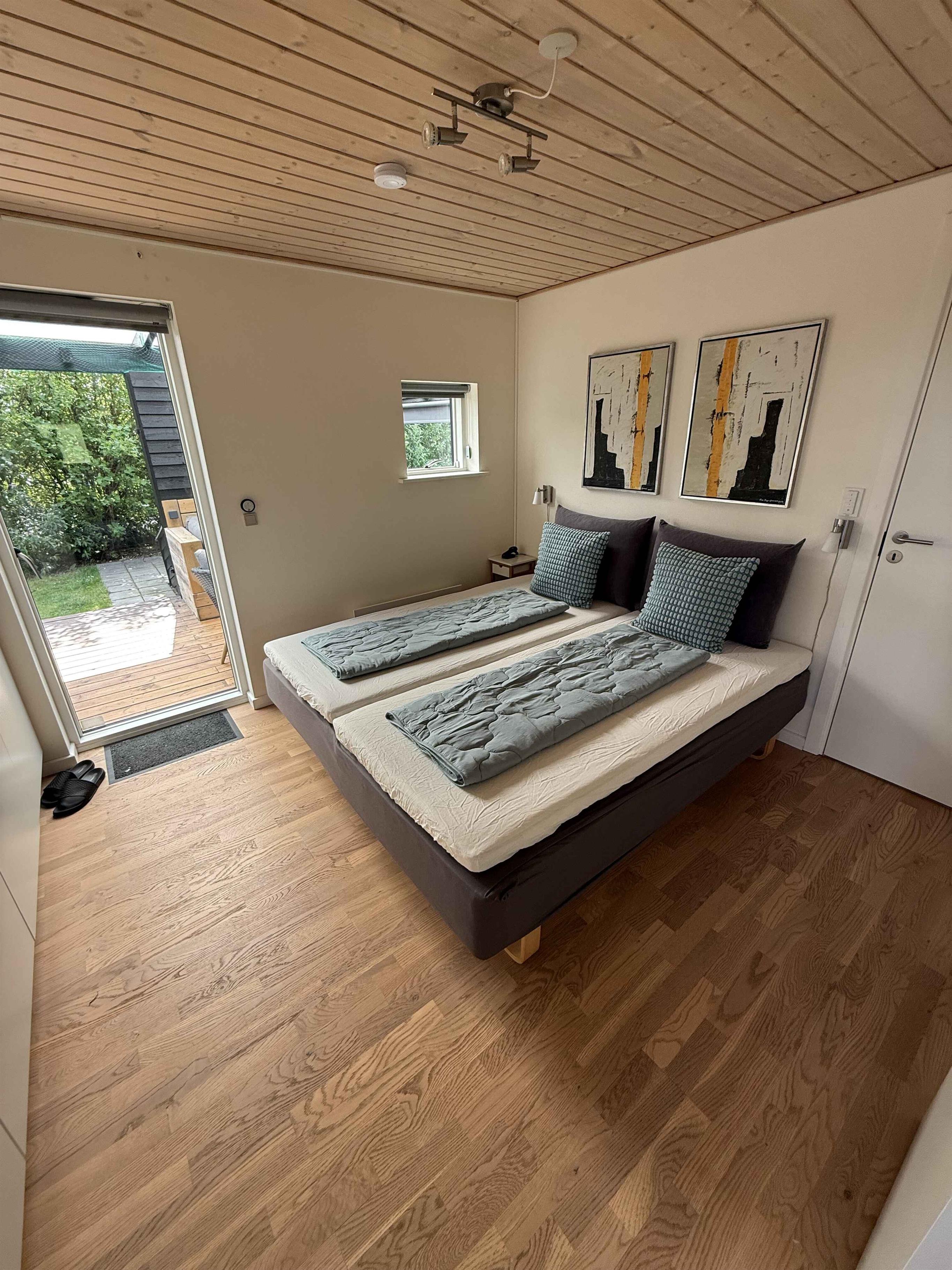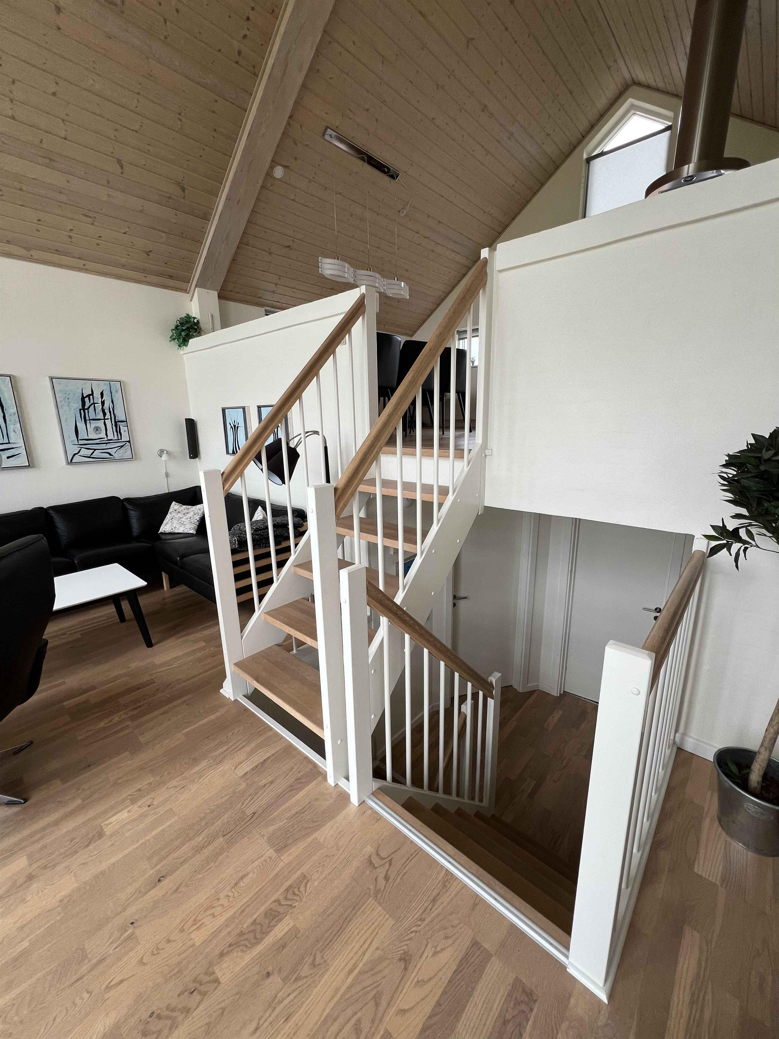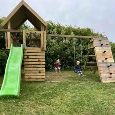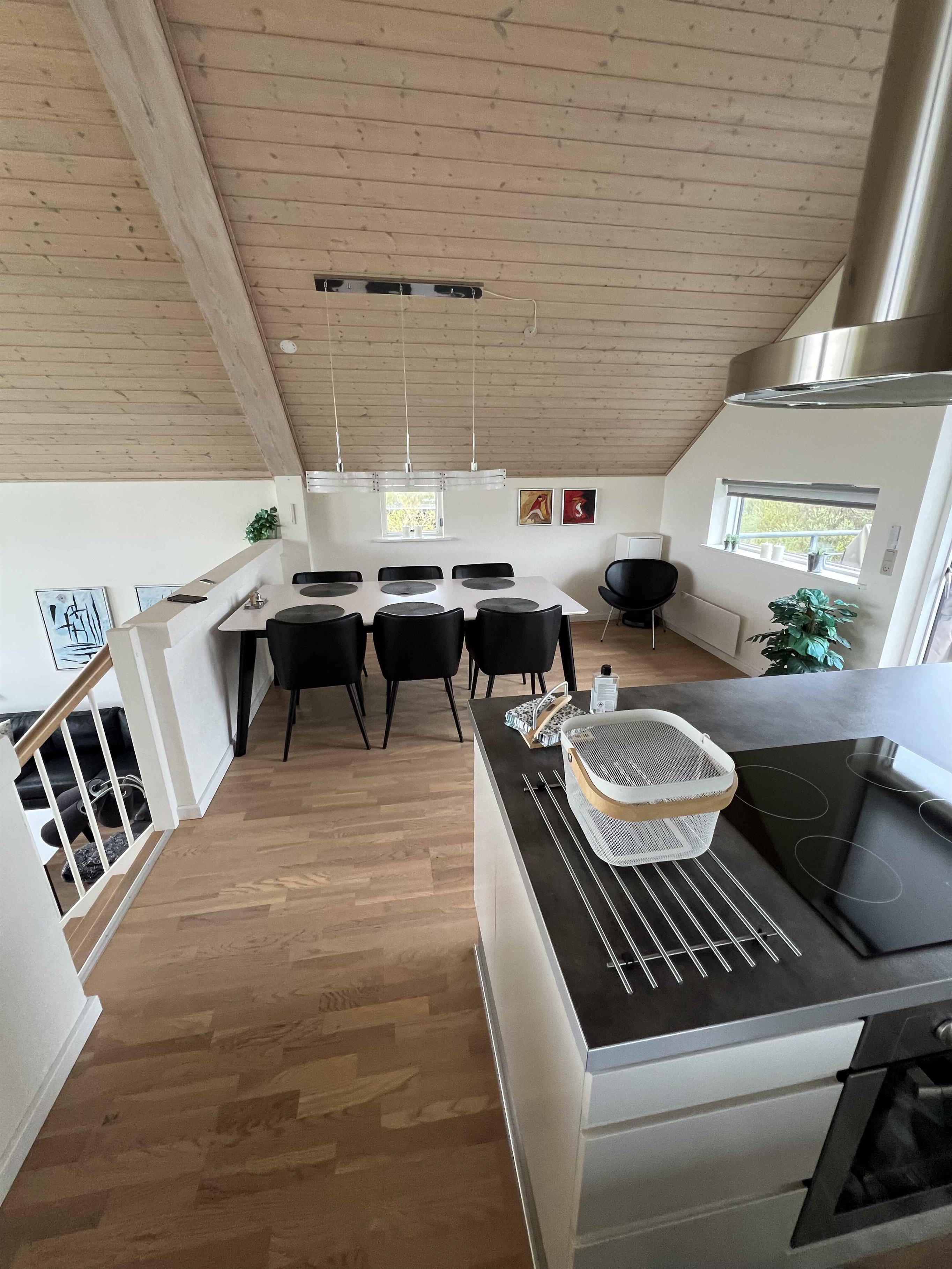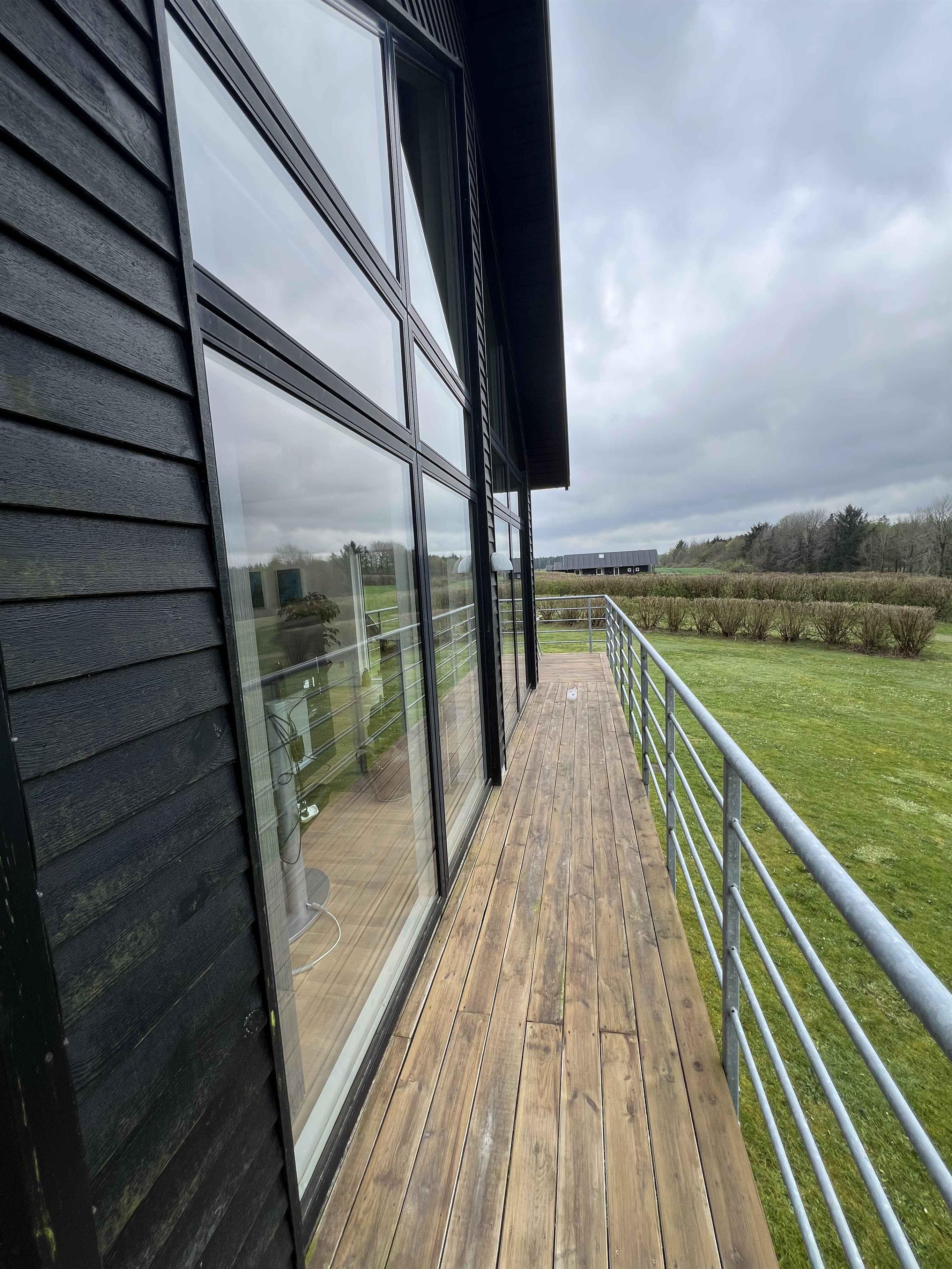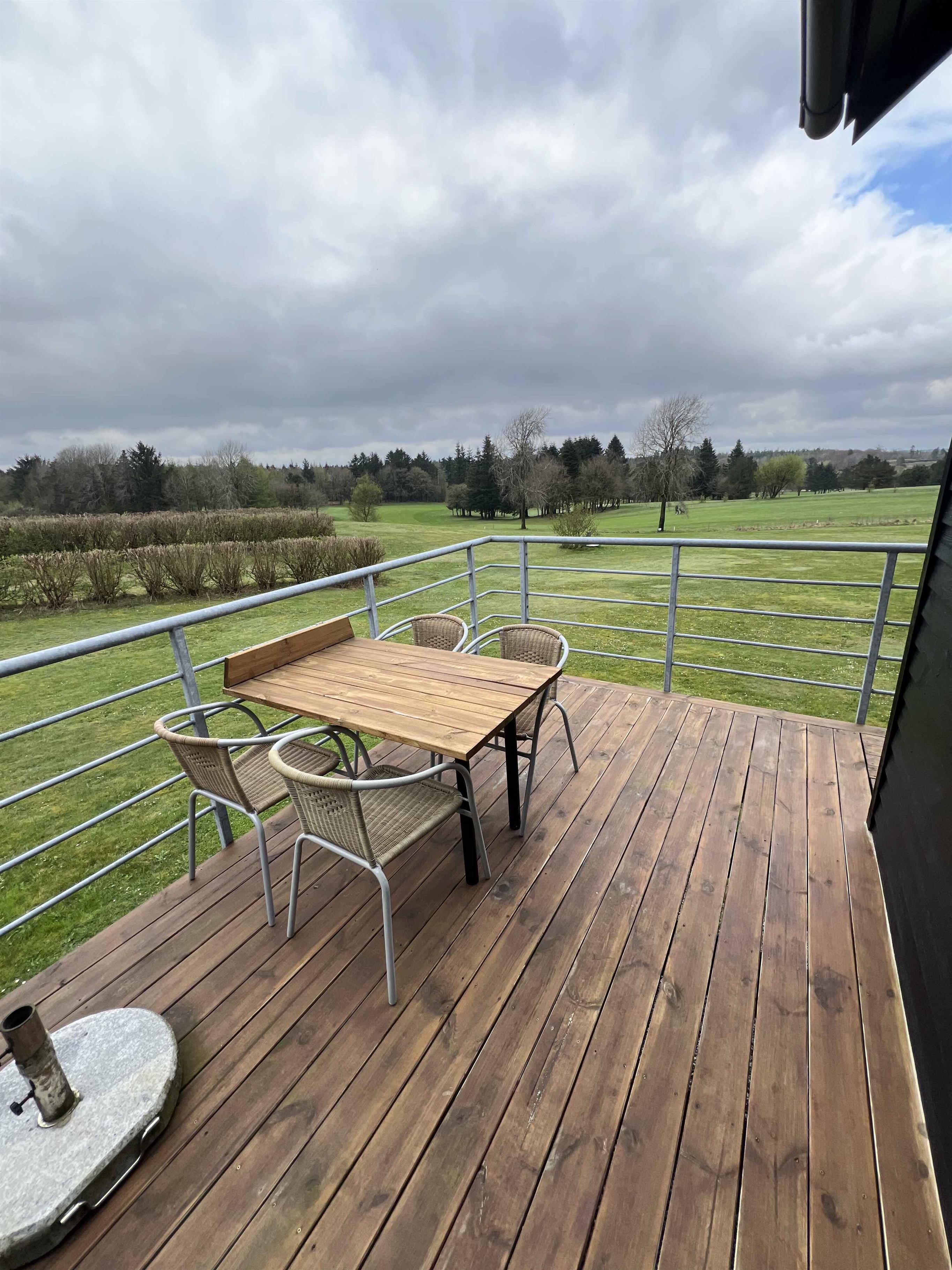 This holiday home is something special. Built on four split levels, it offers a different sense of space than the classic summer house. Here, there’s room, views, and calm – perfect for a holiday where all ages can relax and enjoy something new. The house measures 134 m² and has three bedrooms with a total of six beds. Several cozy living areas allow for both gathering and quiet corners. The layout is practical and functional – ideal for families or friends on holiday. The main living room features a wood-burning stove and connects openly with the kitchen. It’s the perfect place to spend evenings together while the fire crackles and light pours in through large windows. A heat pump and internet are available. Outside, multiple terraces unfold on different levels, letting you find sun, shelter, or shade depending on the time of day. From here, you can enjoy peaceful, open views while children play in the tower, on the swings, or with a ball. There’s a charging station for electric cars, making it easy to bring your vehicle and explore the area. The surroundings offer peaceful, scenic nature with walking trails, birdlife, and wide-open landscapes. A well-regarded golf course is nearby – ideal for a game or simply soaking in the calm atmosphere. Though the sea lies 36 km away, the nearby landscape opens up experiences beyond the beach. Go fishing, cycling, visit small towns or farm shops – or simply unplug and enjoy the quiet. This is a holiday home made for slow days. With both views and variation – inside and out – it stands out from the rest.