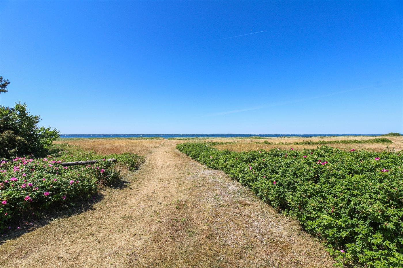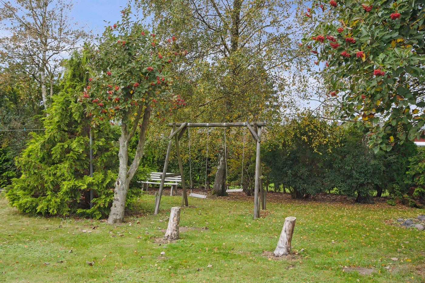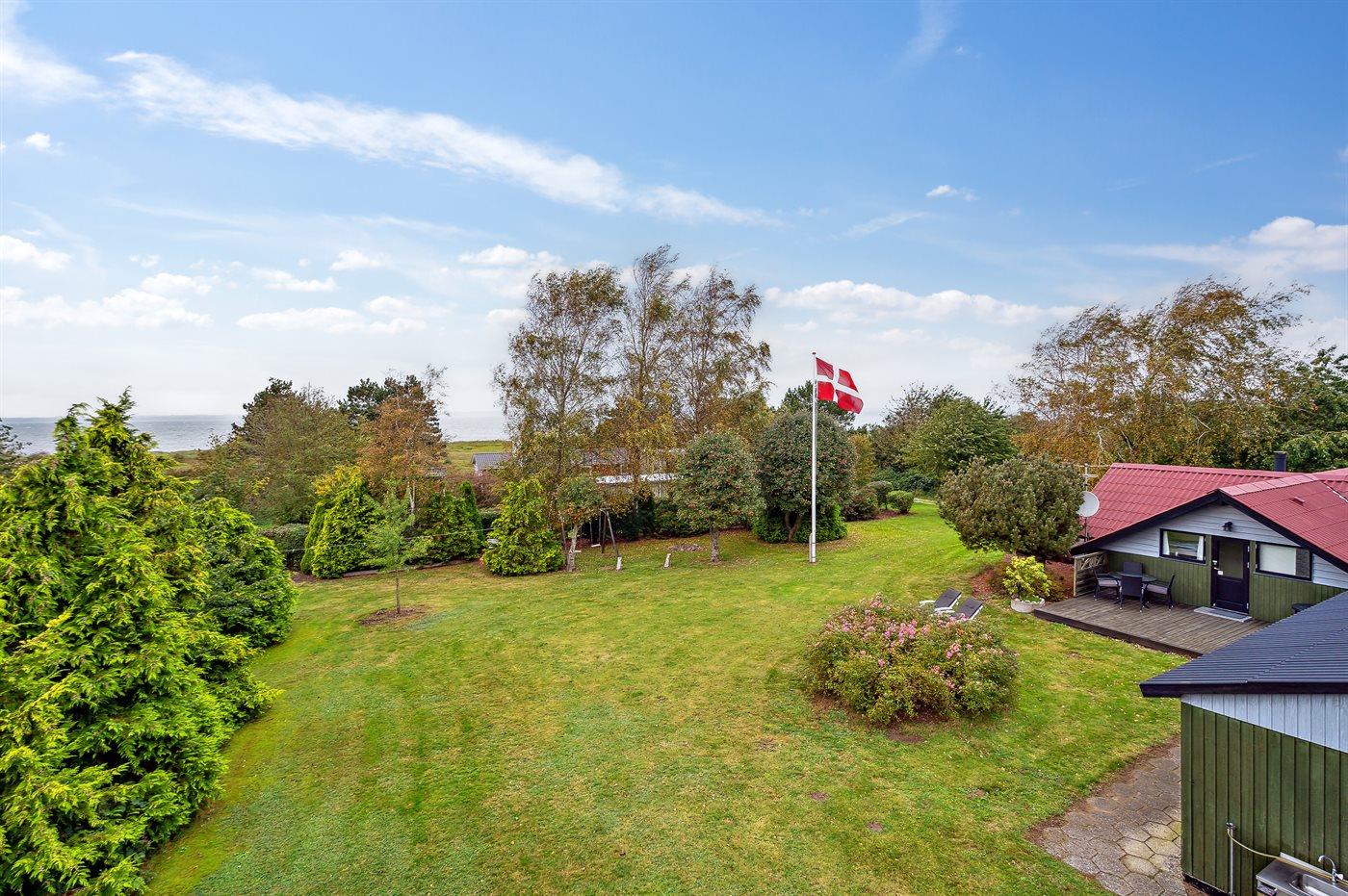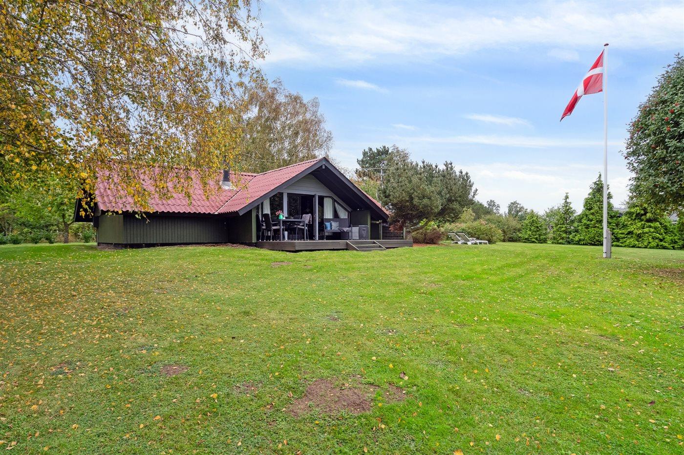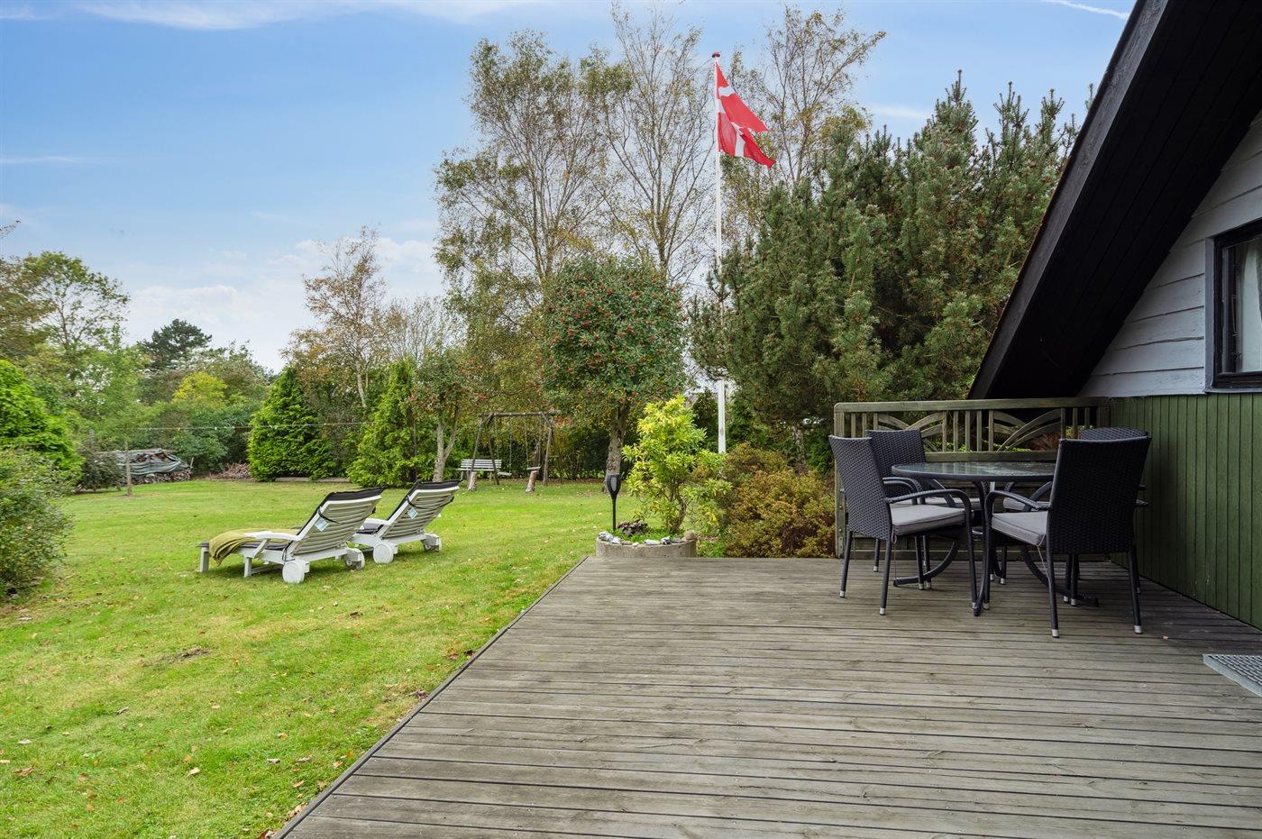 Fritidsbostaden ligger på en 1450 m² stor anlagd trädgård. Avstånd till hav är 100 m. Närmeste affär ligger på ett avstånd av 2500 m. Till fritidsbostaden hör 40 m² terrass. Dessutom finns det 10 m² övertäckt terrass. Redskapsutrymmet. Gunga. Sandlåda. Det finns carport till förfogande.