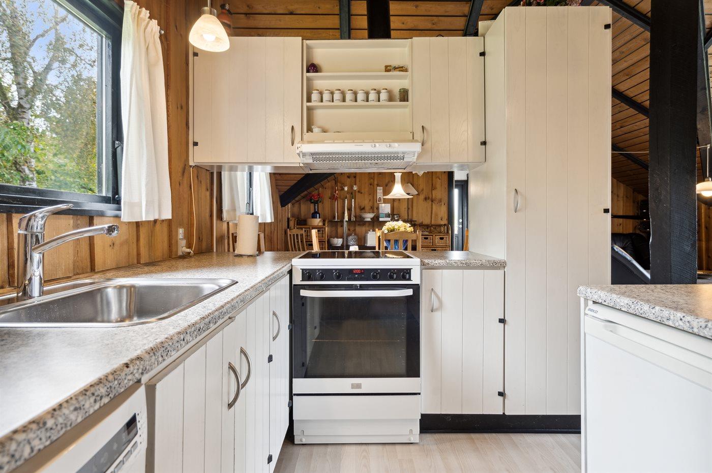 Köket är utrustad med 1 kylskåp Det finns 4 keramiska spishällar, bakugn, mikrovågsugn samt diskmaskin.