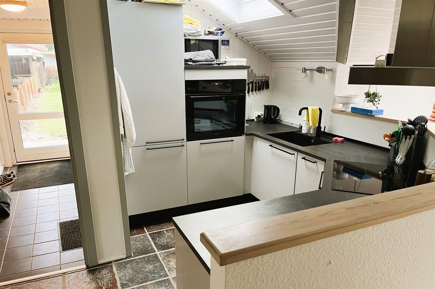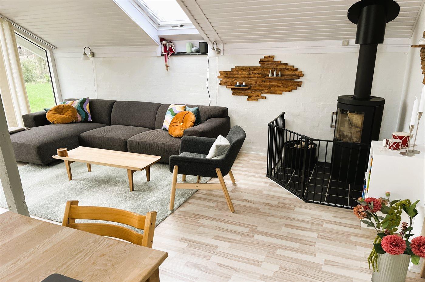 Fritidsbostaden ligger på en 1406 m² stor anlagd trädgård. Avstånd till hav är 490 m. Närmeste affär ligger på ett avstånd av 2700 m. Till fritidsbostaden hör terrass. Gunga. Öppen spis. Det finns grill til förfogande. Det finns carport till förfogande. P-plats på tomten.