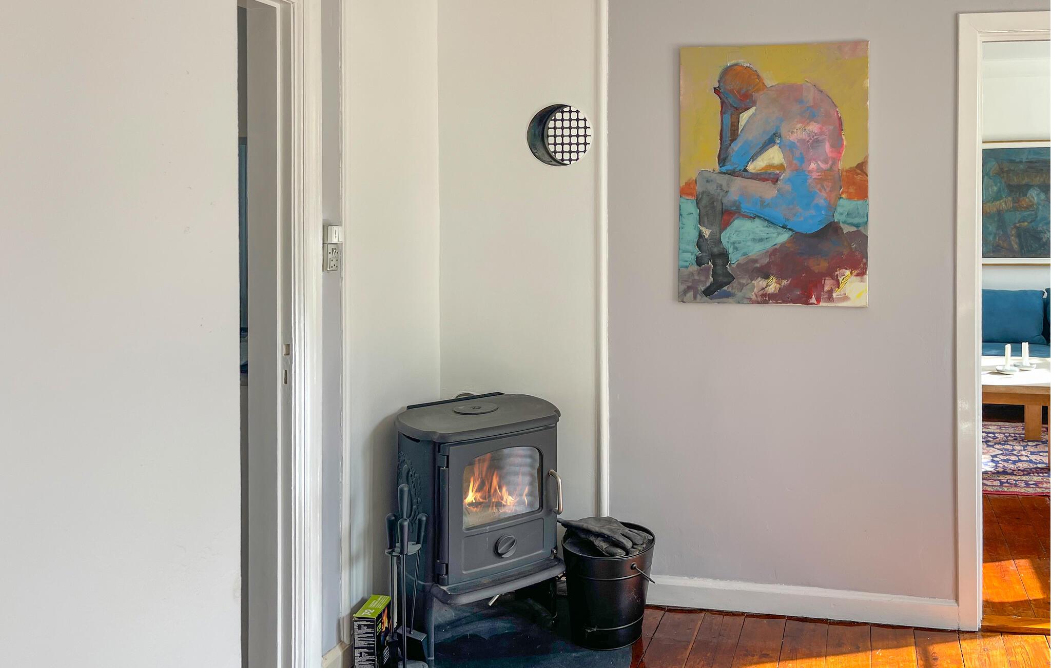 Kliv ut i den stora, skyddade trädgården med gamla äppel- och körsbärsträd. Ät frukost på den soliga terrassen i söderläge och använd grillen eller eldstaden för mysiga kvällar utomhus. På sommaren kan du svalka dig under utomhusduschen med utsikt över den omgivande naturen. Härifrån leder en liten stig direkt till viken och det populära strandcaféet Syd-Øst for Paradis.