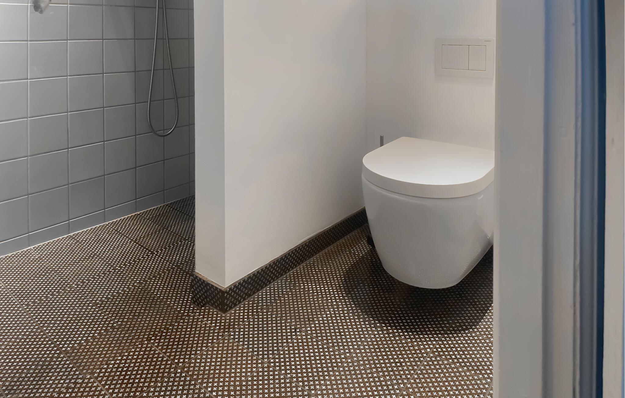 Badrum (nr. 1) - WC: Varmt och kallt vatten. Dusch