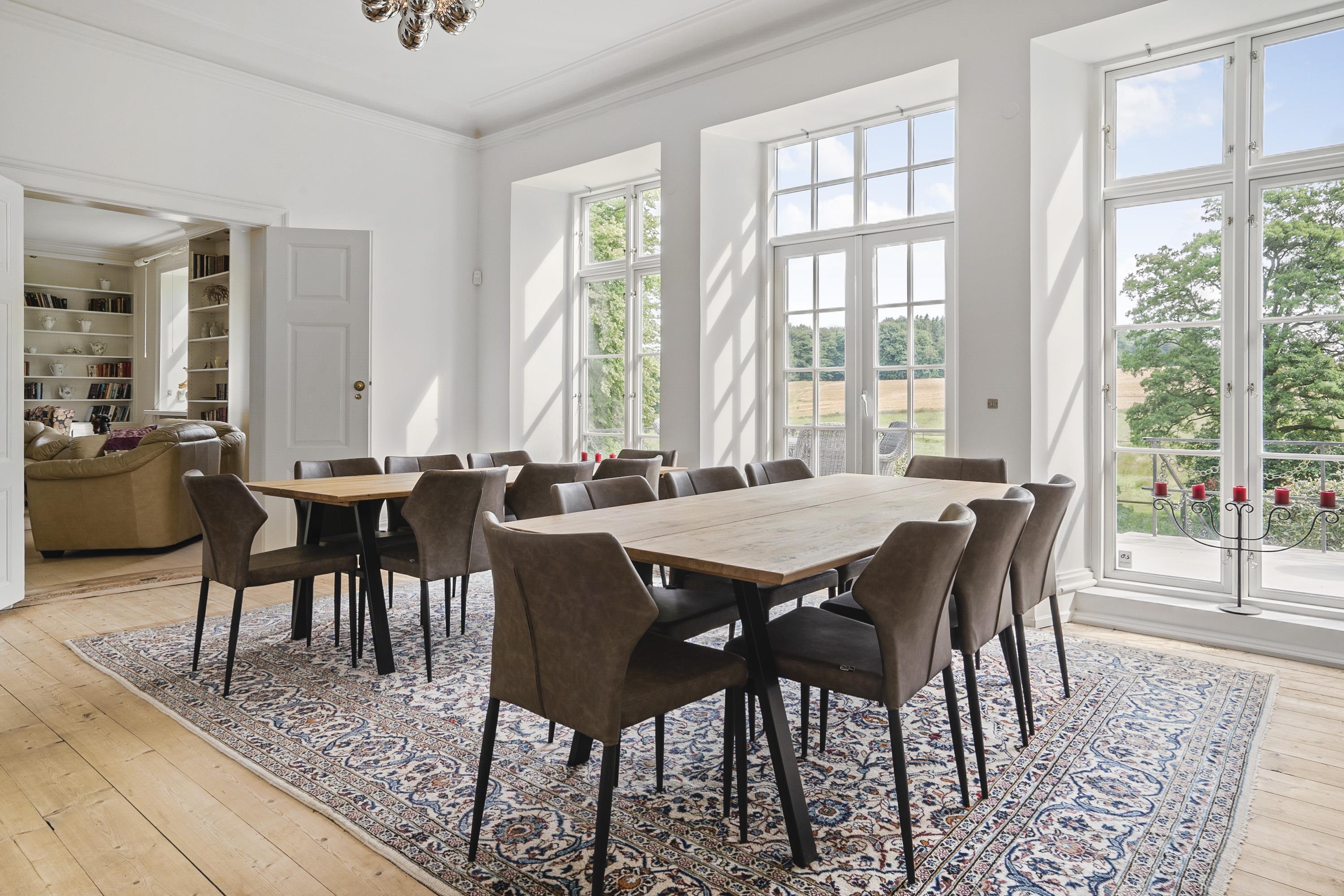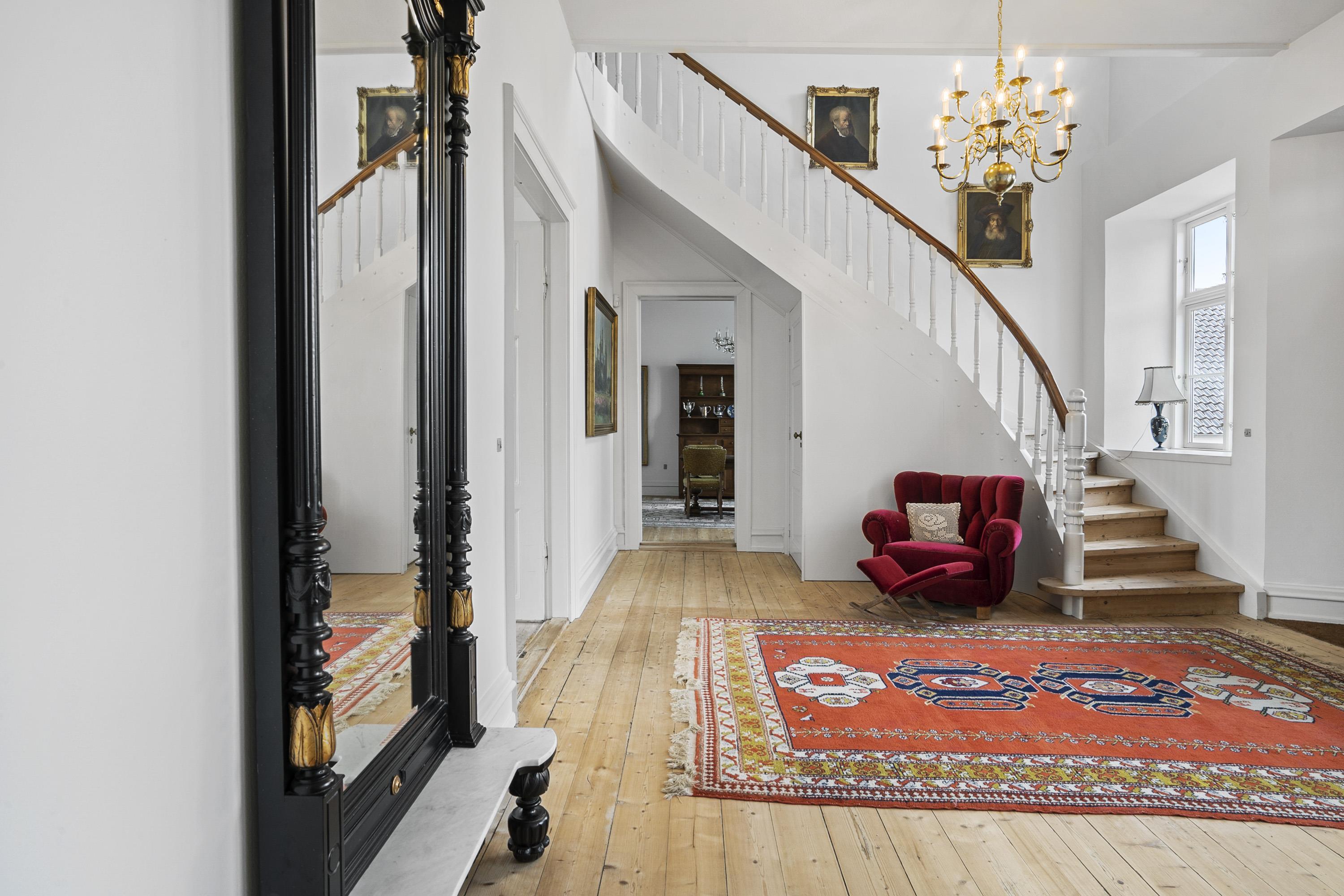 White painted Hvolgaard Hovedgaard is beautifully situated on a small hill in Ølholm ådal, where the current three-winged main farm is surrounded by an equally beautiful Danish landscape. The details of the buildings and the bright expression make the estate appear stately, classic and elegant. The main building and breeding farm were built around 1870, but the place has no doubt been built on since the Middle Ages.