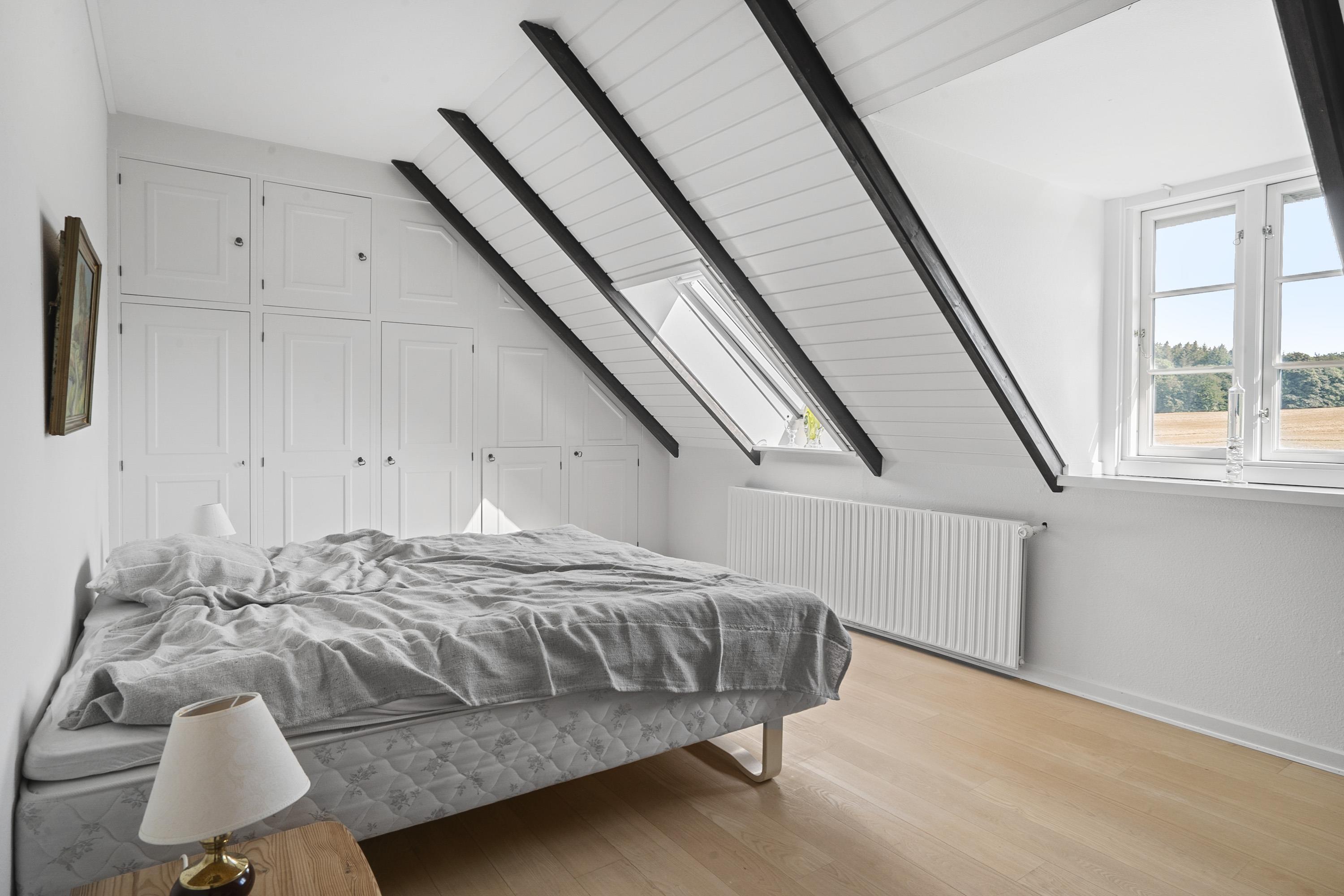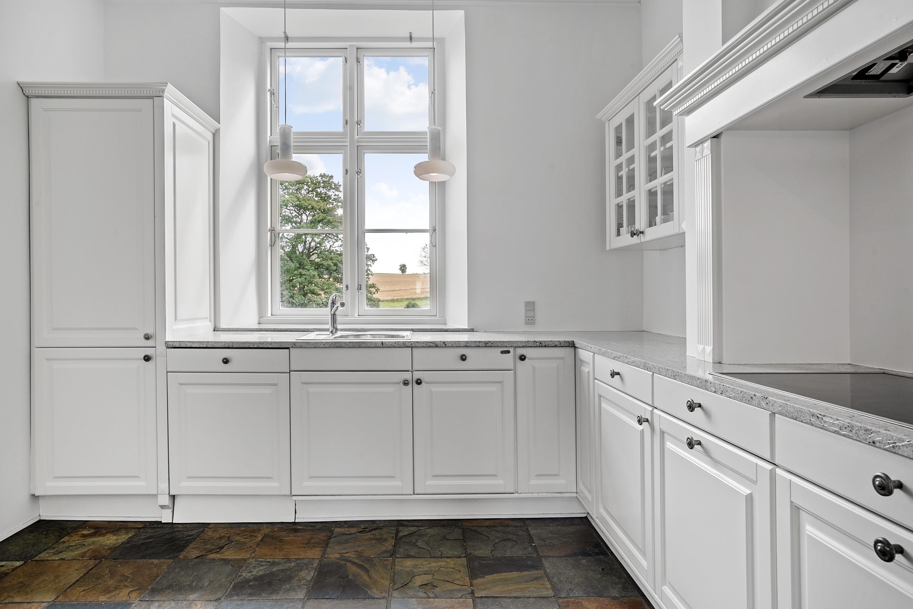 White painted Hvolgaard Hovedgaard is beautifully situated on a small hill in Ølholm ådal, where the current three-winged main farm is surrounded by an equally beautiful Danish landscape. The details of the buildings and the bright expression make the estate appear stately, classic and elegant. The main building and breeding farm were built around 1870, but the place has no doubt been built on since the Middle Ages.