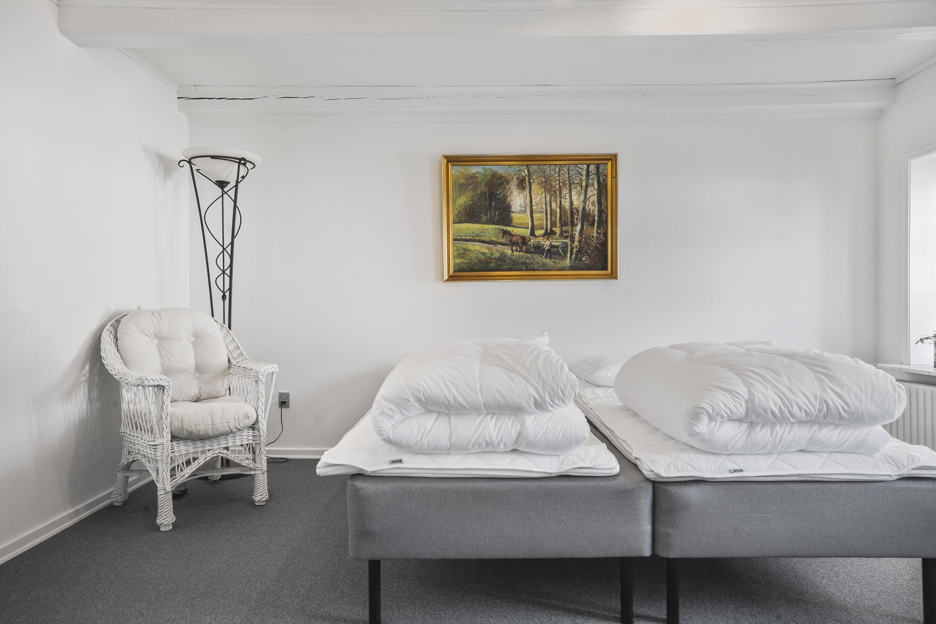 There is good soul in the cozy property when it receives its guests - regardless of the reason for their visit. The main house has 7 rooms with 1 double bed in each, and it is possible to make 2 extra beds. There are 4 bathrooms and a guest toilet. There is also a kitchen, fitted with a fridge, dishwasher, hob and microwave. There are opportunities for various activities for groups or the whole family on joint holiday stays. This also applies to the fine green garden that matches Hvolgaard's green surroundings.
