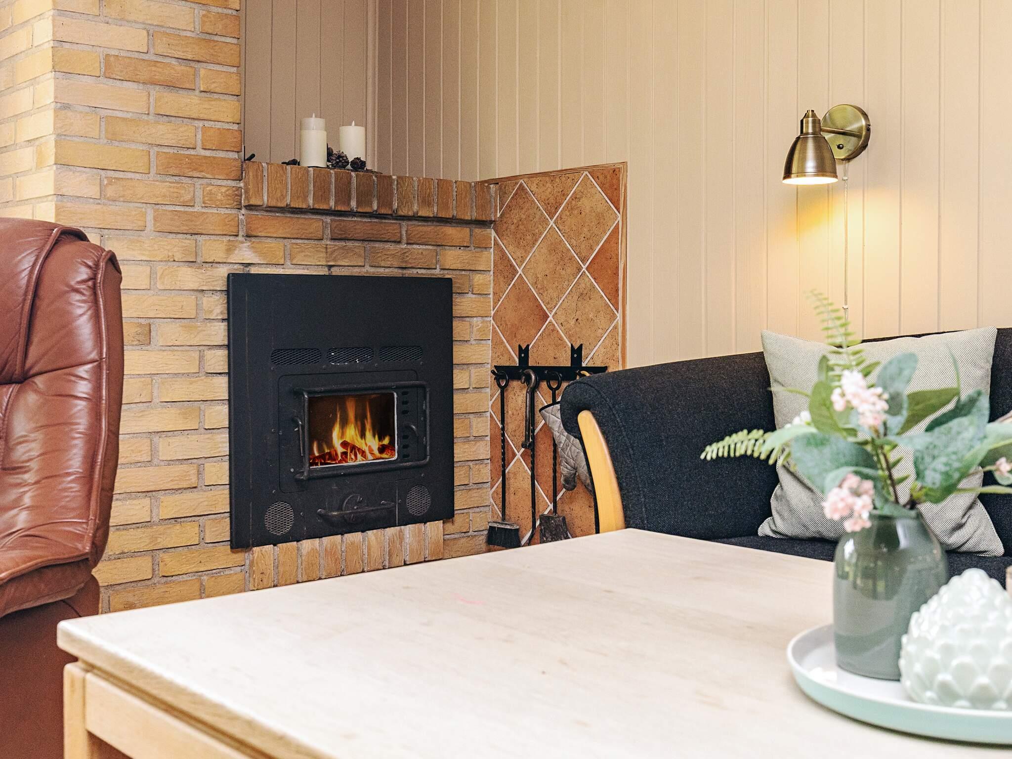 Varmepumpen giver god opvarmning i sommerhuset, og der er brændeovn i stuen.