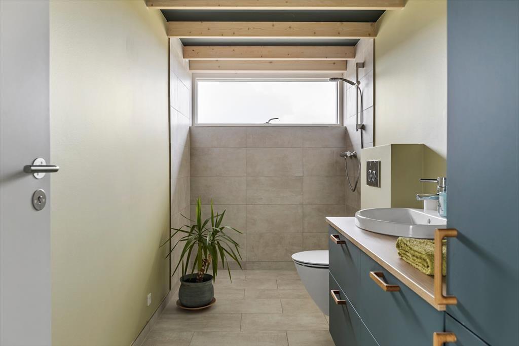Umgeben von der nordjütischen Natur liegt das Ferienhaus auf einem schönen und ruhigen Naturgrundstück, das den Blick über die hügelige Landschaft bis hin zum Meer freigibt. Die großzügige Terrassenlandschaft erstreckt sich in mehrere Himmelsrichtungen und macht es leicht, der Sonne von früh bis spät zu folgen. Die Ostterrasse ist ideal für das Frühstück im Freien, während die überdachte Westterrasse zu Grillabenden und geselligem Beisammensein einlädt – auch wenn der Abendtau fällt und die Sonne am Horizont untergeht. Auf der Südterrasse sorgt eine Glaswand für Windschutz, sodass du auch bei Westwind die Wärme in der Sonnenliege genießen kannst. Vom Wohnzimmer, der Küche und dem Verbindungsraum aus hast du direkten Zugang zu den Terrassen – perfekt, um an warmen Sommertagen drinnen und draußen fließend ineinander übergehen zu lassen. Ein Ort, an dem du den Wechsel der Jahreszeiten hautnah erlebst – und die Natur den Takt vorgibt.