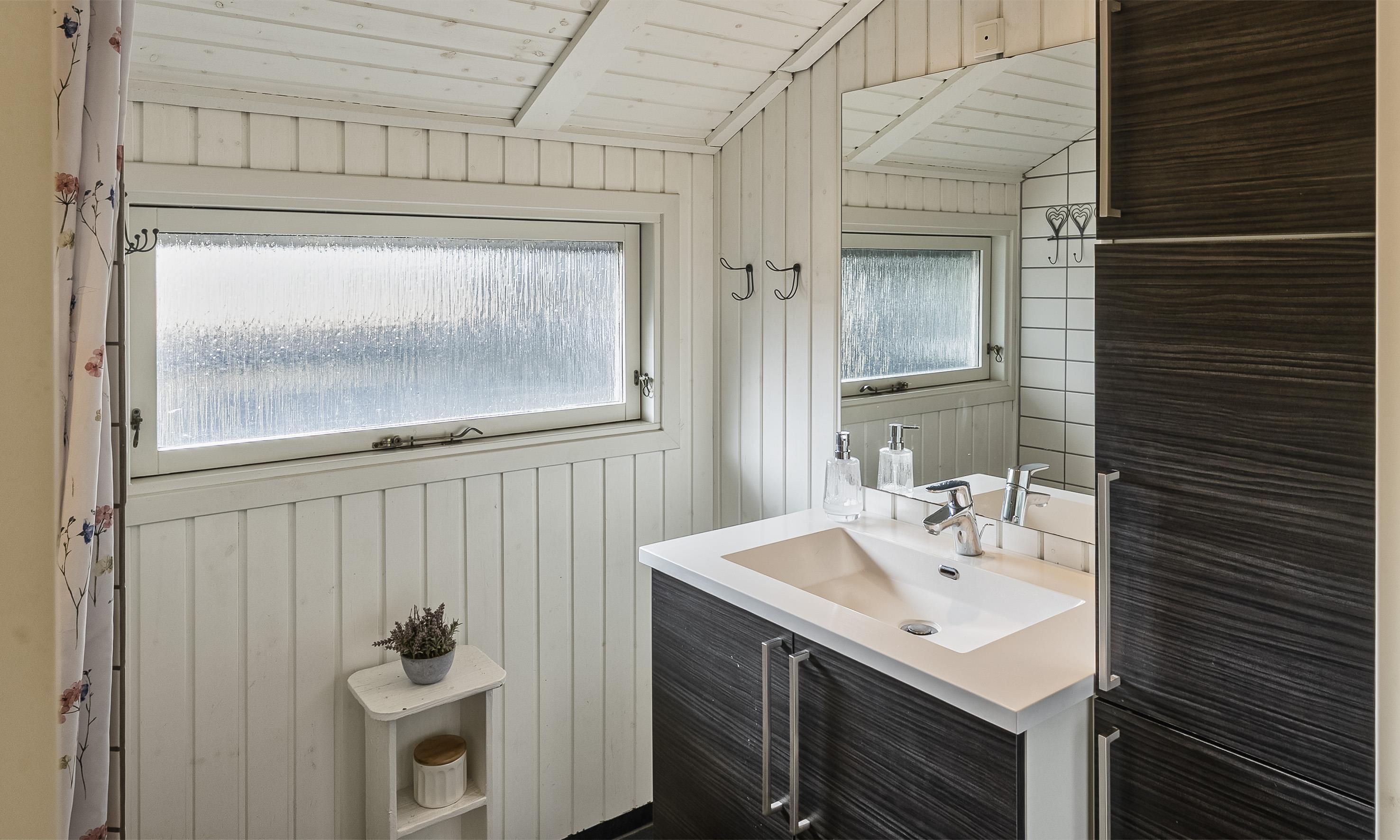 Cozy and well furnished summer house for 5 sleeps, located on scenic land close to forest and cycle path. approx. 1000 meters from the beach. The house contains: Entrance through the kitchen. The well-stocked kitchen has a fridge/freezer, oven, ceramic hob, microwave and dishwasher. The kitchen is in open connection with the cozy living room, which is furnished with a dining area and a wood-burning stove. The open and cosily furnished living room, from which there is a view of a partially covered terrace, is furnished with television with chromecast, cable TV (Stofa summer house package) and air conditioning. From the living room there is an entrance to a bedroom with a double bed (140 x 200), a smaller room with a bunk bed. Hallway with access to the back of the house and the terrace. From here you have 1 bedroom with a double bed (140 x 200). 3 bedrooms: DB + DB + B. 1 Bathroom with shower/wc. Utility room with washing machine. The external conditions offer a fantastic wooden terrace. Vildmarksbadet is private. Dogs and smoking are not allowed. Year of construction 1985. Renovated 2014.