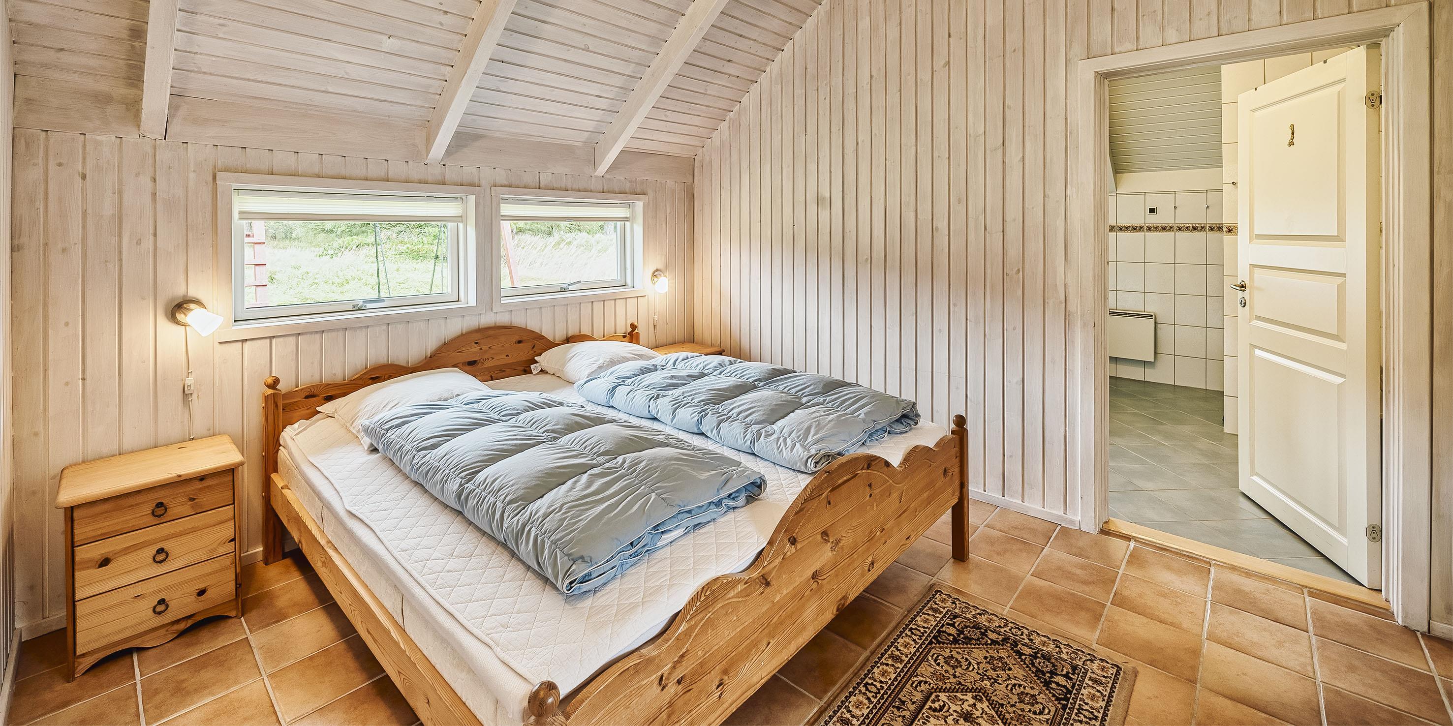4 bedrooms - 3 bedrooms with double bed 180x200 cm. 1 with 2 single beds (90x200 cm each) and 1 bunk bed.