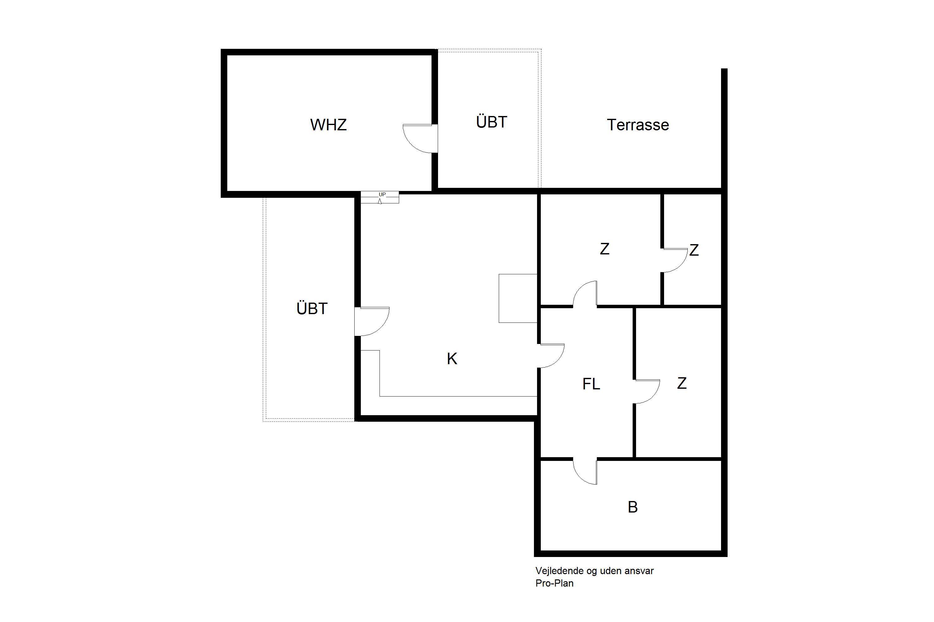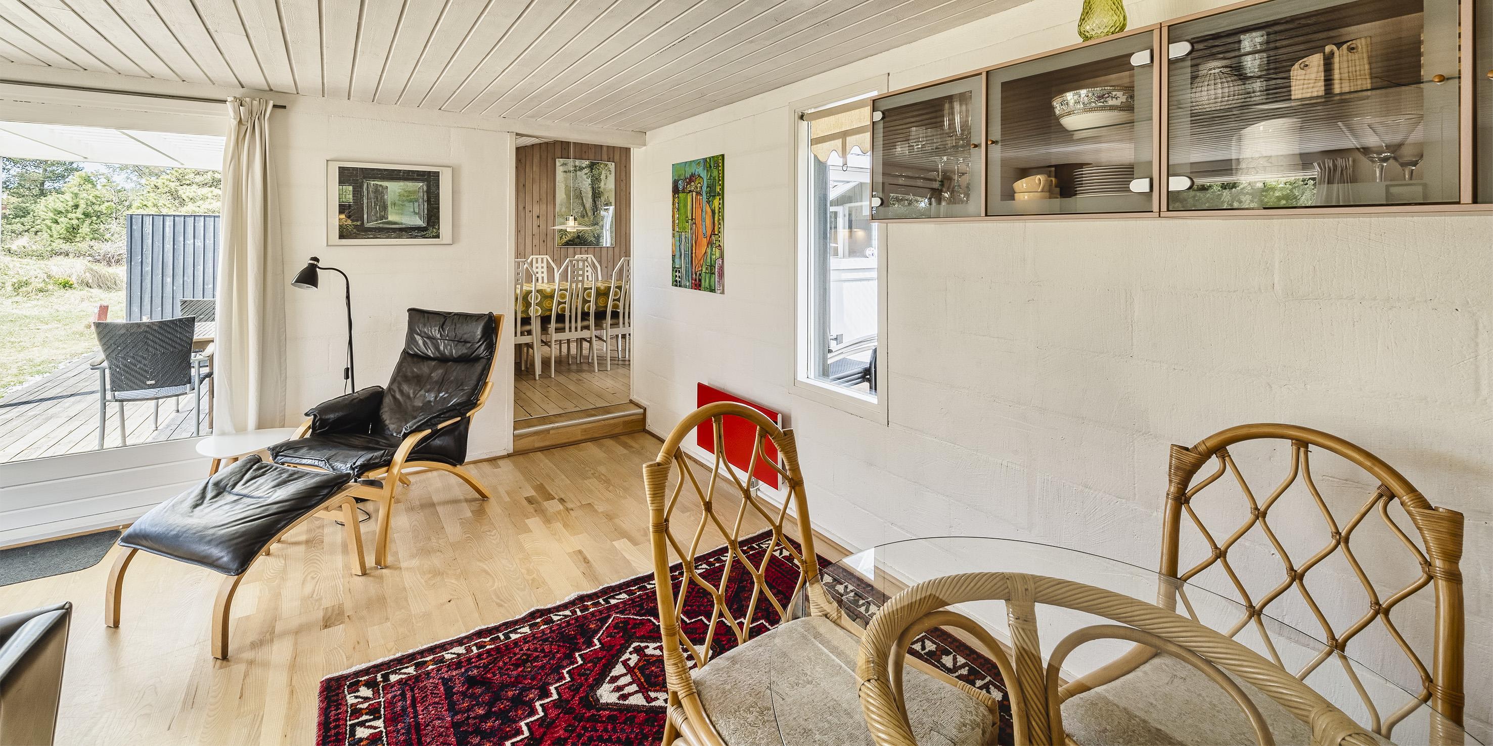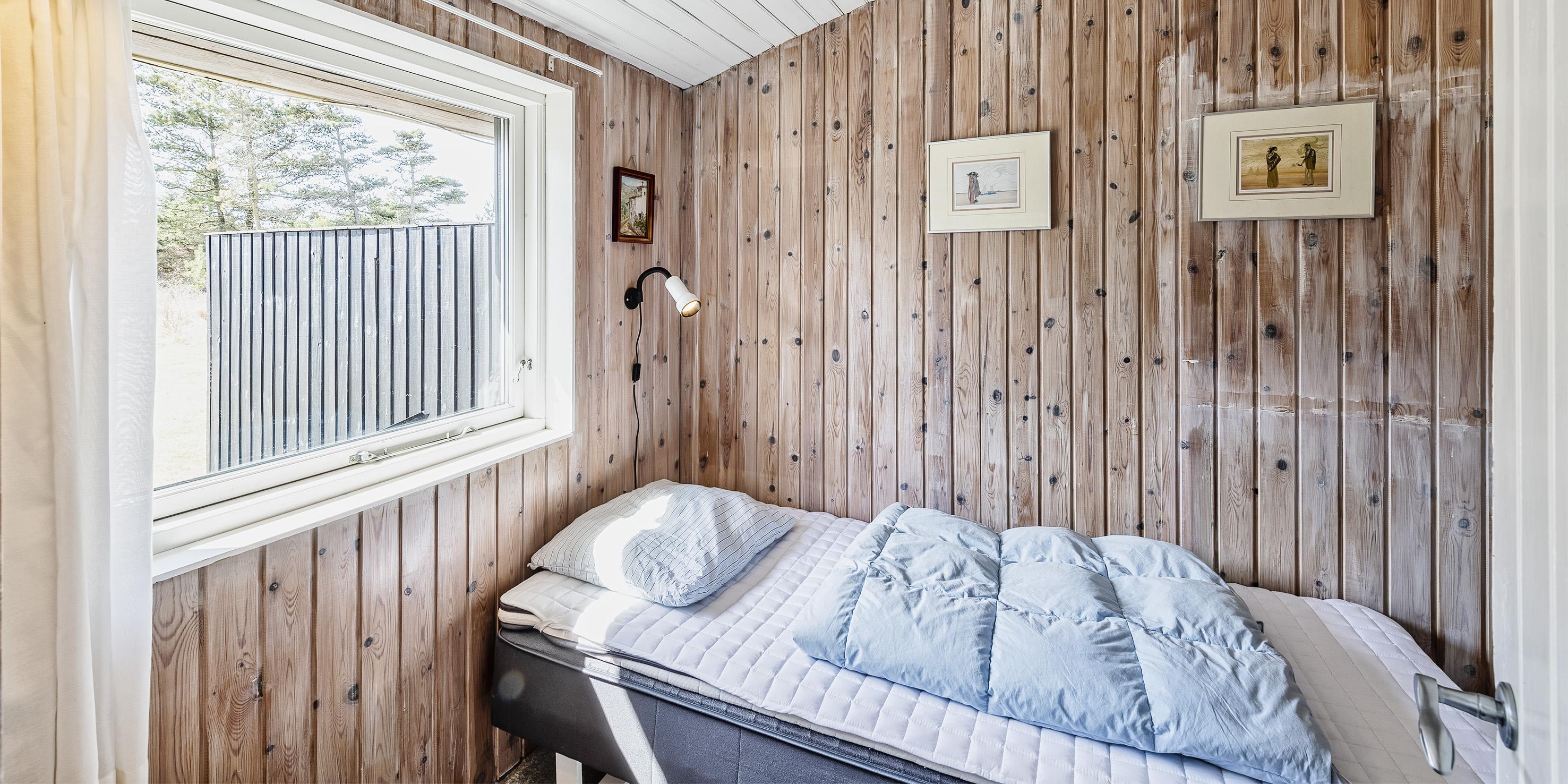Lovely cottage for 5 people, located on a large natural plot on a quiet side road, approx. 800 meters from the beach. The house contains: Entrance to the house is directly up to the kitchen-dining room. The kitchen-dining room is arranged in an angle with a long kitchen worktop with dishwasher, stove with ceramic hob, hood, fridge with small freezer from 2020 and microwave. The dining area is in open connection with the kitchen and with a view to the garden. From the dining room you come down to the living room over 1 step, the living room is furnished with a sofa area with television with danish programs, satellite dish, soundbar, chromecast and wood burning stove. Furthermore, the sound bar also has bluetooth, so you can play radio and music from a mobile phone. Wireless Internet access. Furthermore, the living room is furnished with a round dining table that invites you to play games. From the kitchen there is a distribution corridor from which there is an entrance to 3 bedrooms: DB + DB + 2B + B. 1 bedroom with a 3/4 bed (120 x 200) and a wardrobe. 1 master bedroom with 1 newer double bed and a wardrobe, from the master bedroom there is an entrance to another bedroom with 1 single bed and a wardrobe. Guest house with 2 extra beds available. The bathroom features a shower cubicle, wc, laundry arrangement and washing machine. The bathroom has a sloping ceiling (max ceiling height from 195 cm and down to 165 cm). Heat pump.