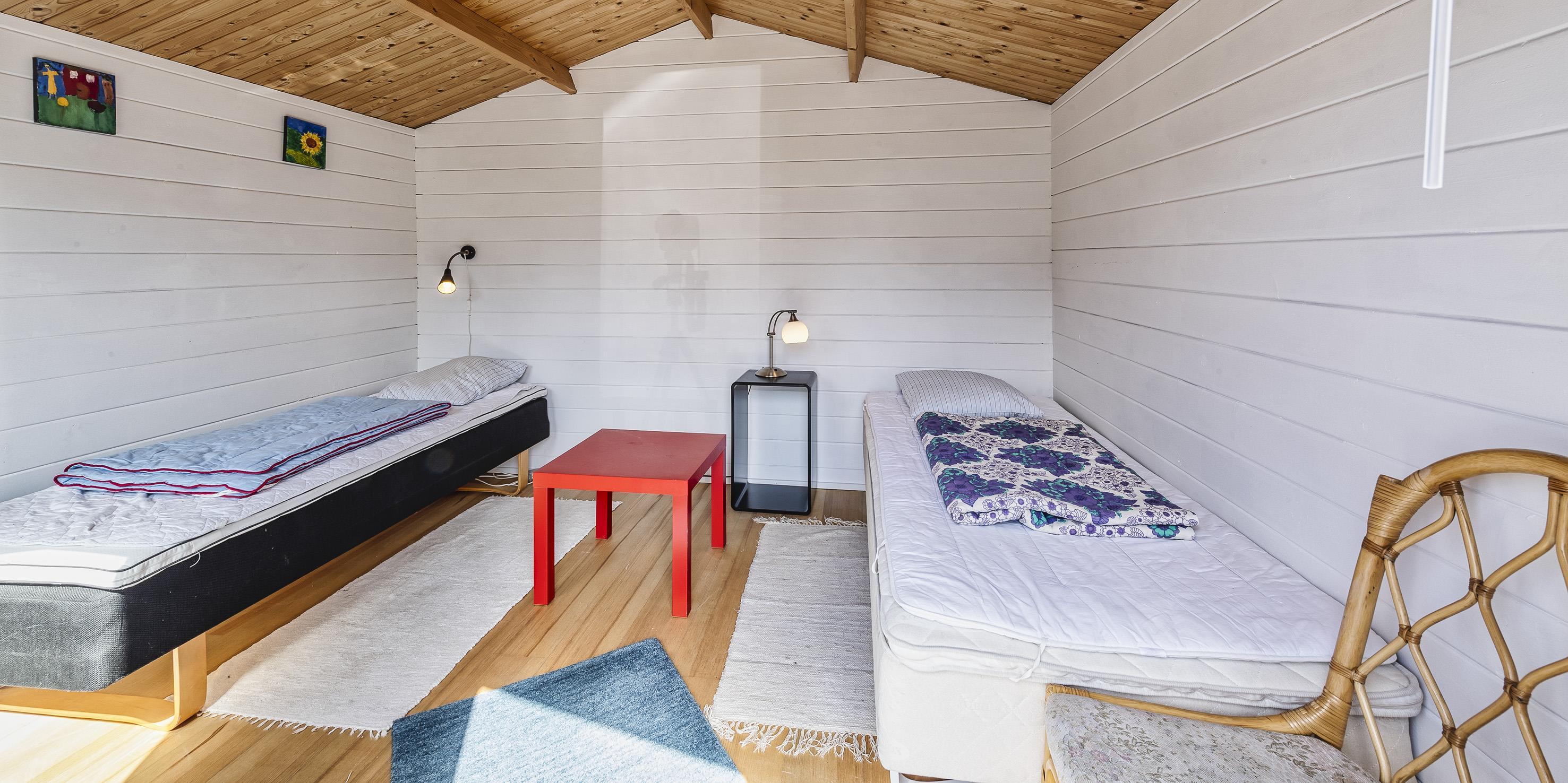 Large wooden terrace to the south and a partially covered wooden terrace on the east side of the house. The house includes a guest house of 10 m2, with 1 single bed and a bunk bed that can be used for overnight guests, there is also plenty of storage space in the guest house. The scenic plot of 2440 m2 invites you to play ball games and is surrounded by pine trees. Year of construction 1959, Extension in 1978 and subsequently continuously maintained.