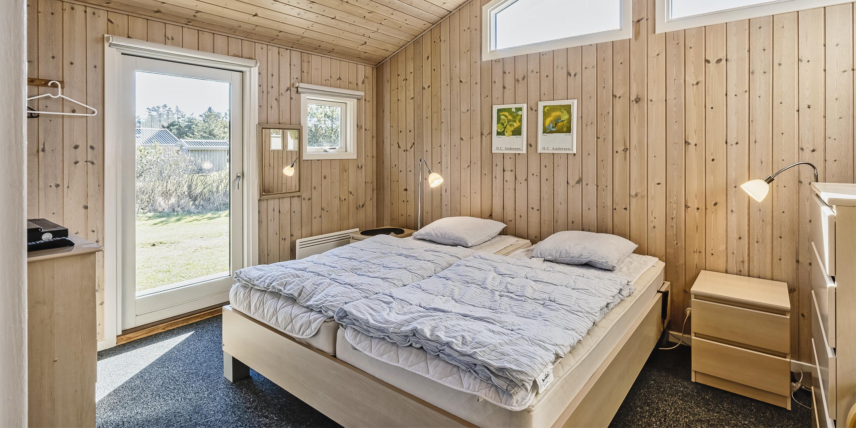 Tasteful cottage for 4-6 people, approx. 1,200 meters from the beach. Living room with wood-burning stove, alcove, television and satellite dish as well as living room summer house package. Kitchen with dishwasher and microwave. 2 bedrooms: DB + DB. Bathroom with shower/wc, sauna and spa. Guest toilet with shower. Washing machine. The television in the bedroom only has Danish channels. Large terrace and swing. Wireless Internet access. Heat pump. Smoking is not allowed. Year of construction 1983, renovated 2006.