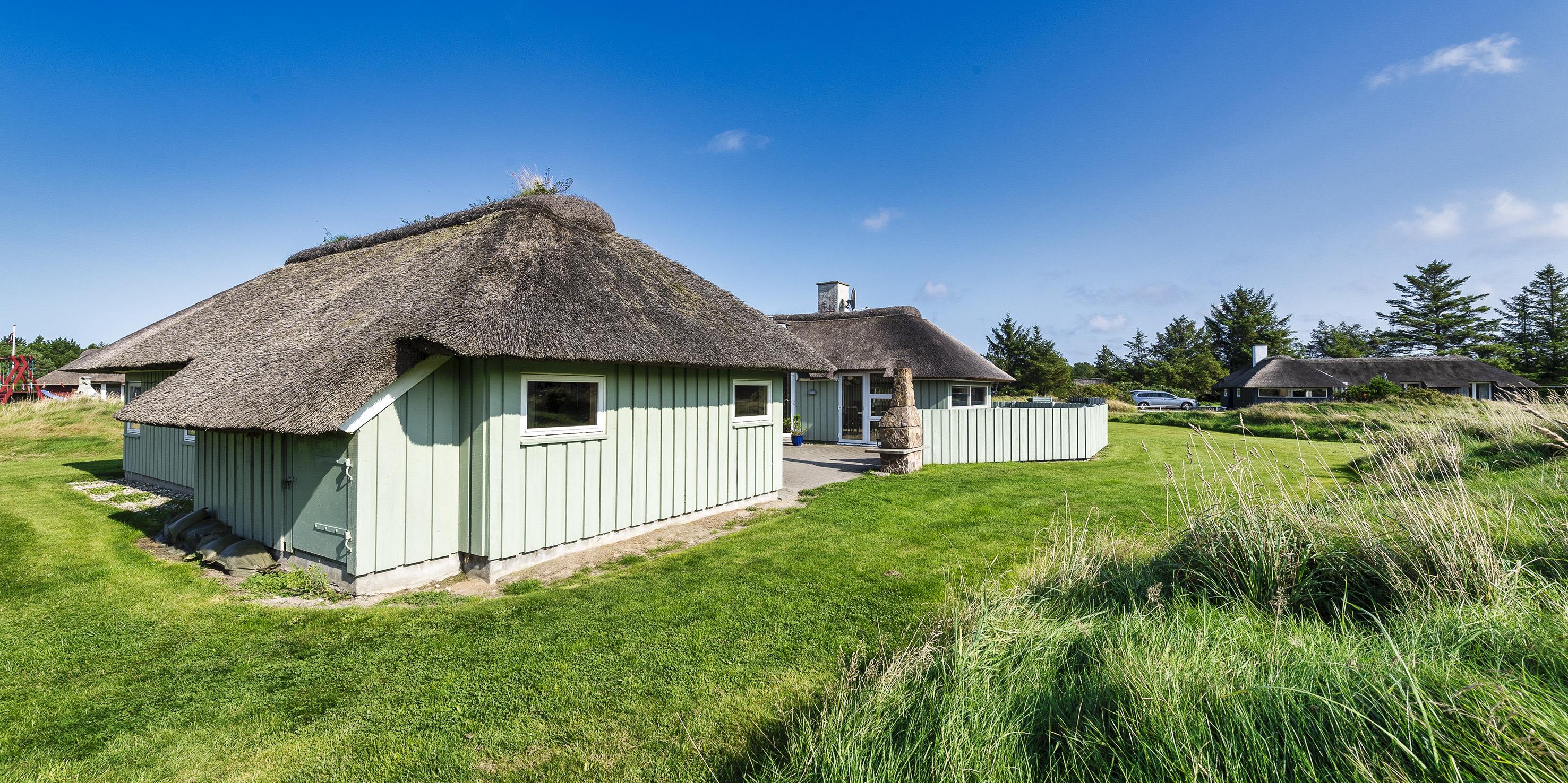 Nice thatched corner house for 10 people close to forest area and cycle path towards Grærup Strand. The summer house is situated on a large grassy plot that invites the children to play