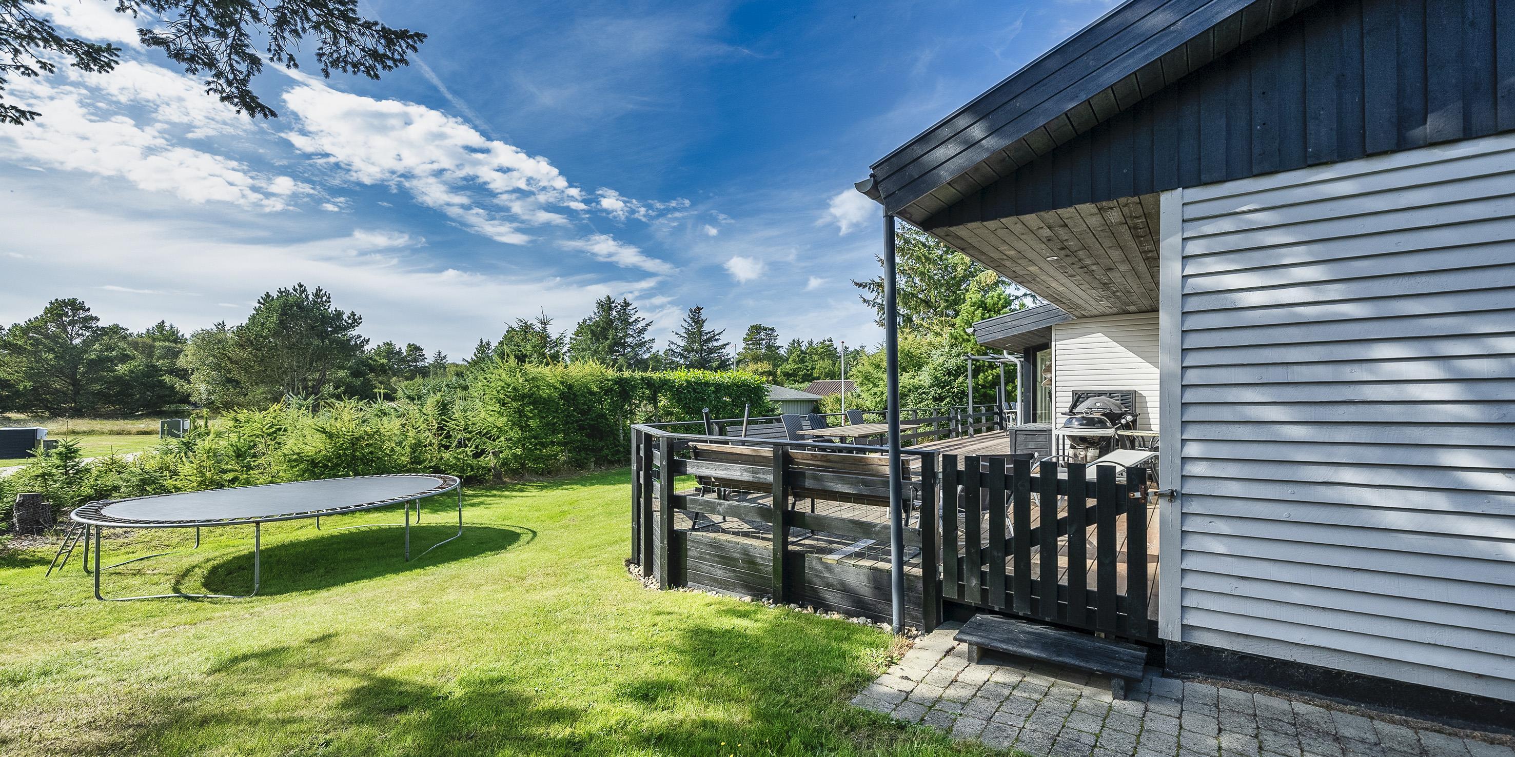 Cozy cottage for 6 people, located on scenic grounds, approx. 1,200 meters from the beach. Living room with wood-burning stove, television, Chromecast and satellite dish (danish programmes). Kitchen with dishwasher, microwave and freezer. 3 bedrooms: DB + DB + DB. Bathroom with shower/wc and underfloor heating. Washing machine and dryer. Wireless Internet access. Heat pump. Smoking is not allowed. Playground for children. Wonderful terraces, one large and closed. Trampoline. Charcoal grill and playhouse available. Pergola/pavilion. Year of construction 1964, renovated 1995.