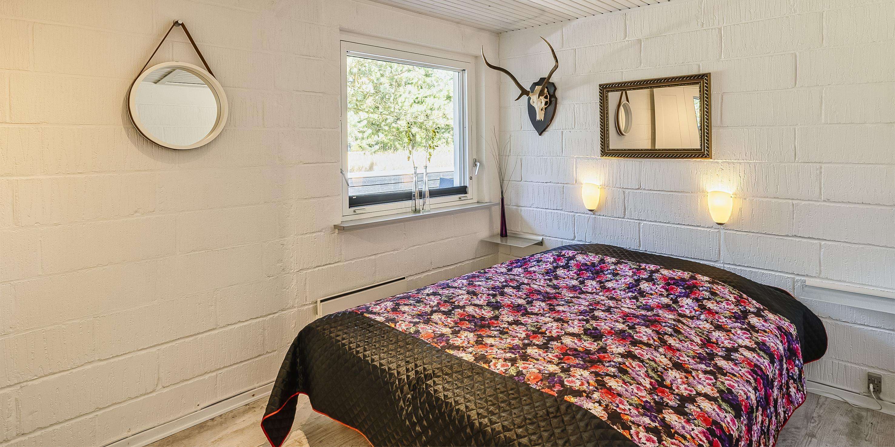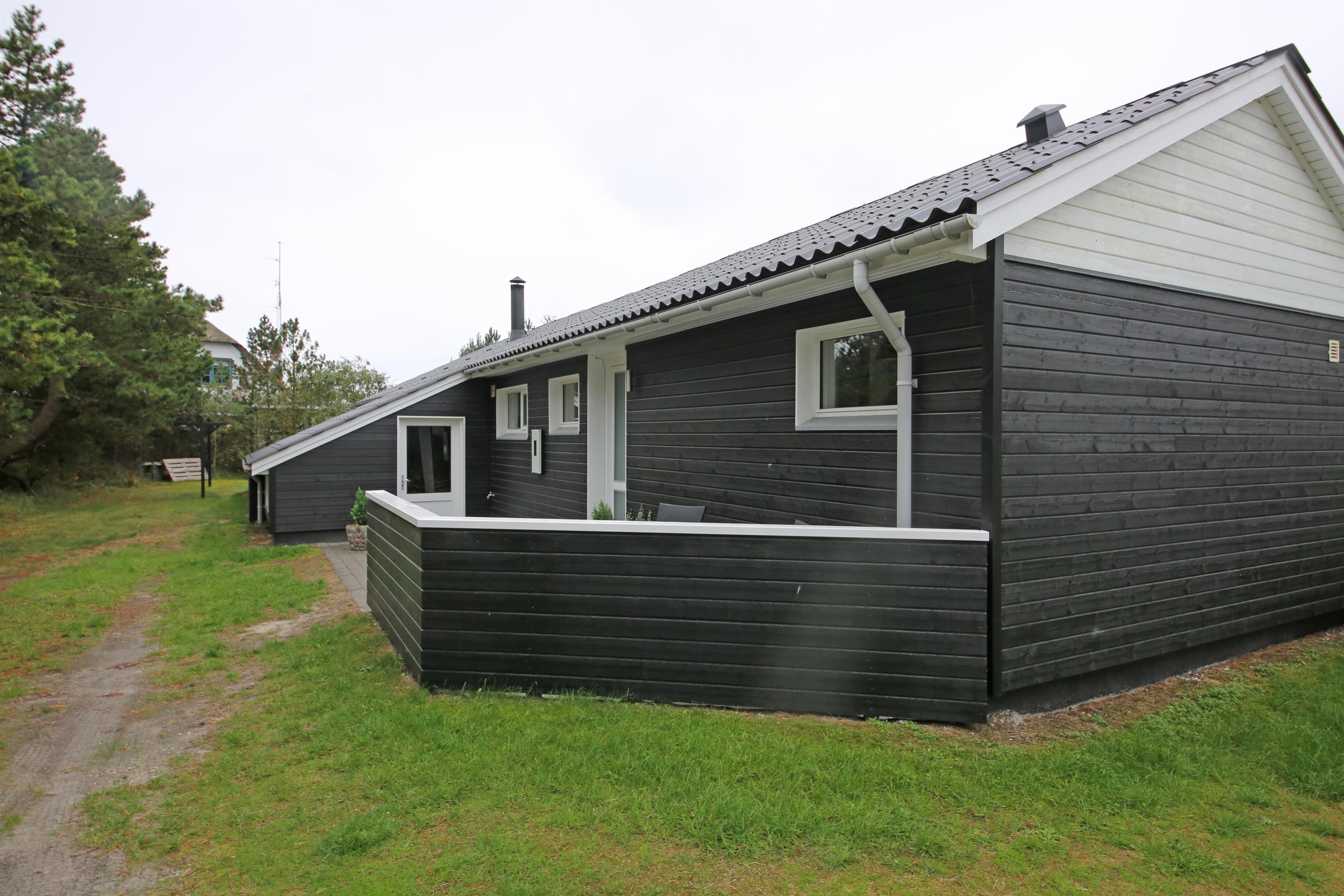 Renovated and cozy summer house for 4 people, located on scenic grounds, approx. 2,000 meters from the beach. Living room with wood-burning stove, television and satellite dish (Danish programmes). Wi-Fi. Heat pump. Open kitchen with fridge/freezer combination, microwave and dishwasher. 2 bedrooms: DB + DB. Bathroom with shower/wc and dryer. Separate room with washing machine. The house is partially heated by solar energy. All hardware/white goods have been replaced in spring 2020. There is an extra fridge/freezer in the shed. Large, closed terrace and playground for children. Youth groups are not allowed. Pets and smoking are not allowed. The house is not allergy-friendly, as the owner himself uses the house with a dog. Extra cost for water consumption. Access to Fitness in Vejers Strand and Blåvand in 2025. Year of construction 1970, renovated 2003/2016.