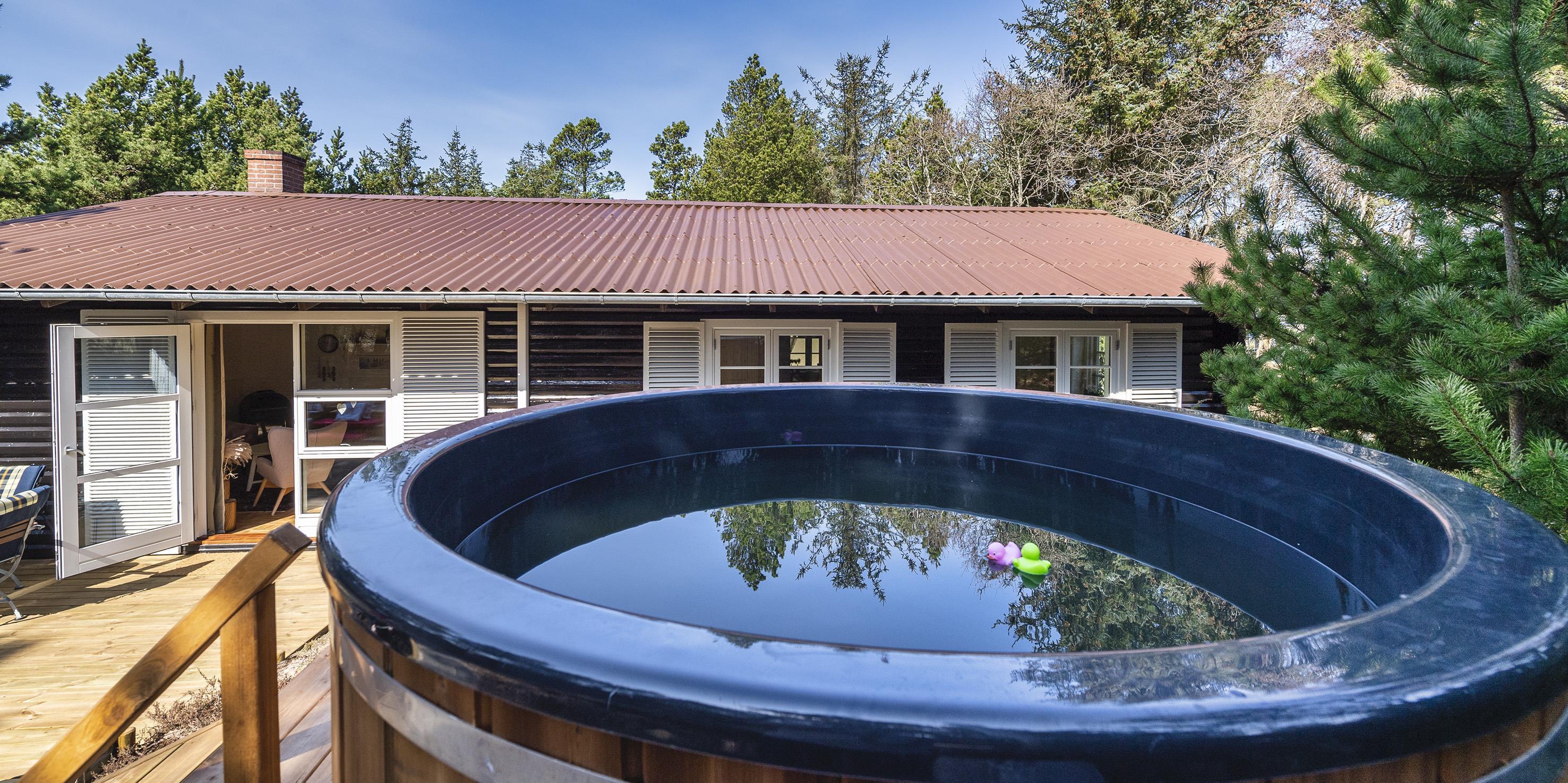 This charming holiday home underwent a complete renovation in 2021 and radiates authentic Danish holiday cosiness. It’s located on a 1,500 m² natural plot offering a wealth of outdoor facilities: a shelter, a luxurious outdoor sauna with panoramic window overlooking the wilderness hot tub, and two wonderful terraces. The plot borders a beautiful forest area with red deer and a cycle and walking path leading all the way to Henne Strand, passing the scenic Filsø area.