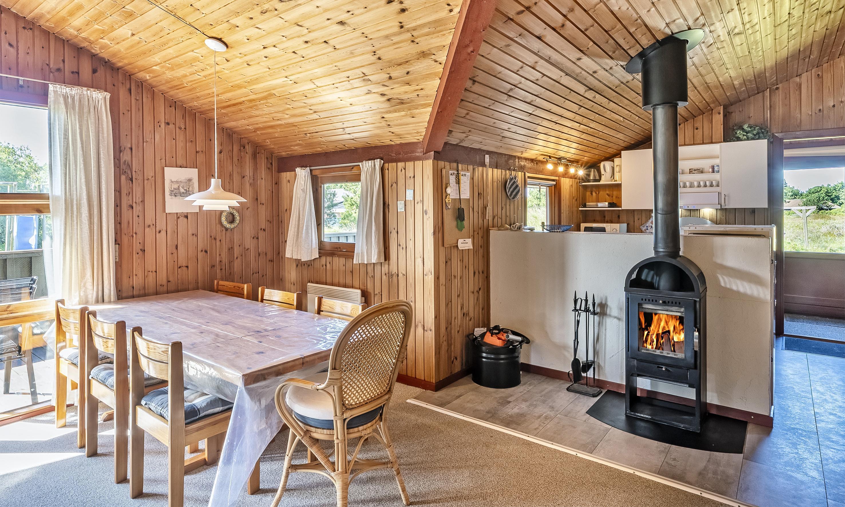 Well organized cottage for 8 people where yo are bound to have a good time, located on a large 2439 m2 large scenic plot, approx. 1400 meters from the beach. The house contains: Entrance entrance to the house living room, which is in open connection with the kitchen. The kitchen is equipped with a stove, microwave, fridge/freezer. Large living room with wood-burning stove, television with danish programs, satellite dish and a DVD player. Heat pump. Bathroom with shower/wc and sauna. The washing machine is located in the utility room where fuses are also located. 3 bedrooms: DB + 2B + 4B. Large partially closed terrace and where a small part of the terrace is covered. The large grassy natural plot features a small playhouse and a sandbox for the little ones, the lawn invites for play and ball games for the older children. Pets are not allowed! Smoking is not allowed. Smoking is not allowed. Year of construction 1984 - rebuilt in 2010.
