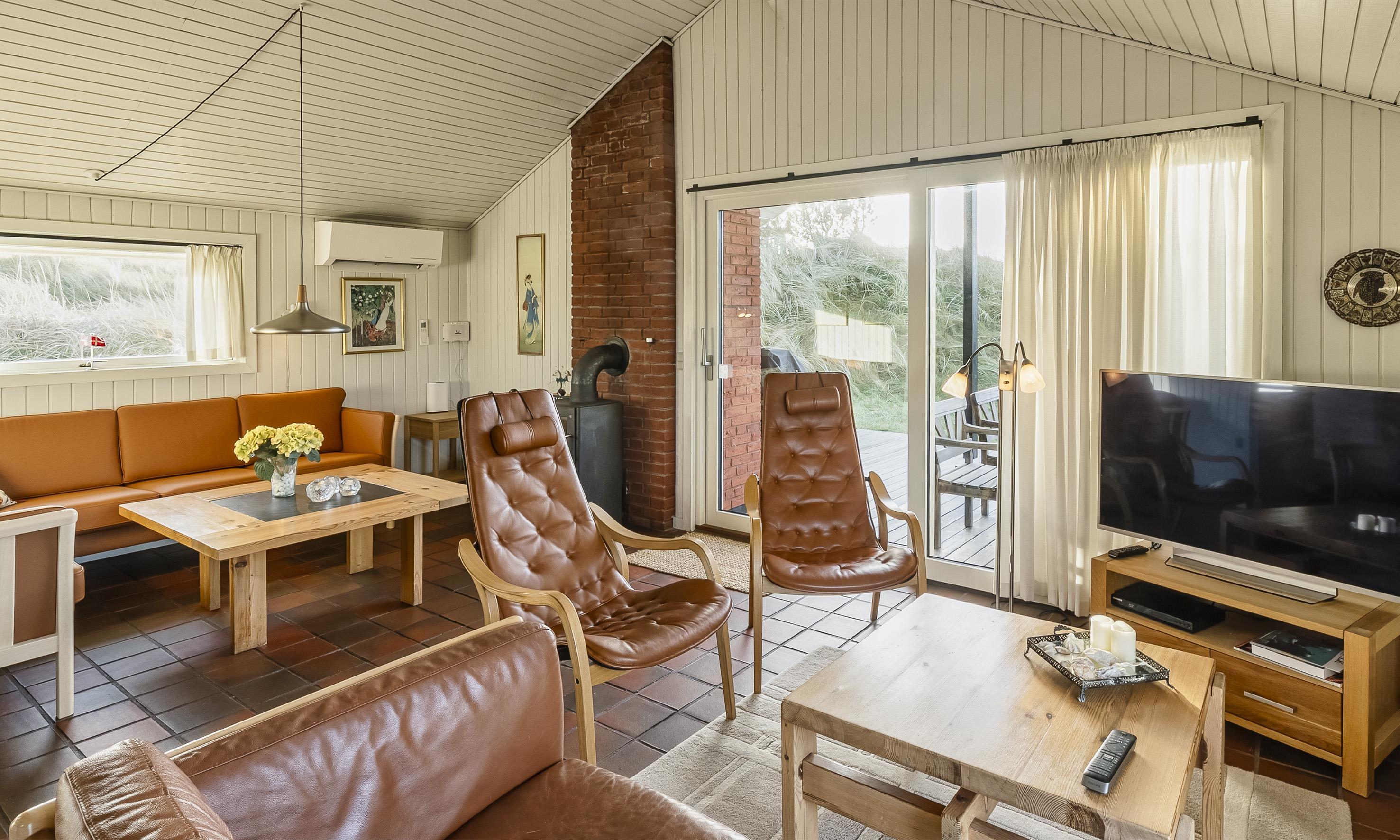 Beautiful and cozy cottage for 6 people, located on sand dune grounds, approx. 300 meters from the beach. Living room with fireplace, 49 "television with smart TV, DVD and satellite(DR programs). Open kitchen with new stove, microwave, fridge/freezer (50 l. freezer) and dishwasher. Bathroom with shower/wc. Washing machine. 3 bedrooms: 2B + 2B + DB. 2 bedrooms each with 2 single beds and 1 bedroom with 1 double bed. Heat pump, Wireless internet (500/500 Mbit). Gas grill including gas. Partially covered terrace. Pets are not allowed! Smoking is not allowed. Year of construction 1976.