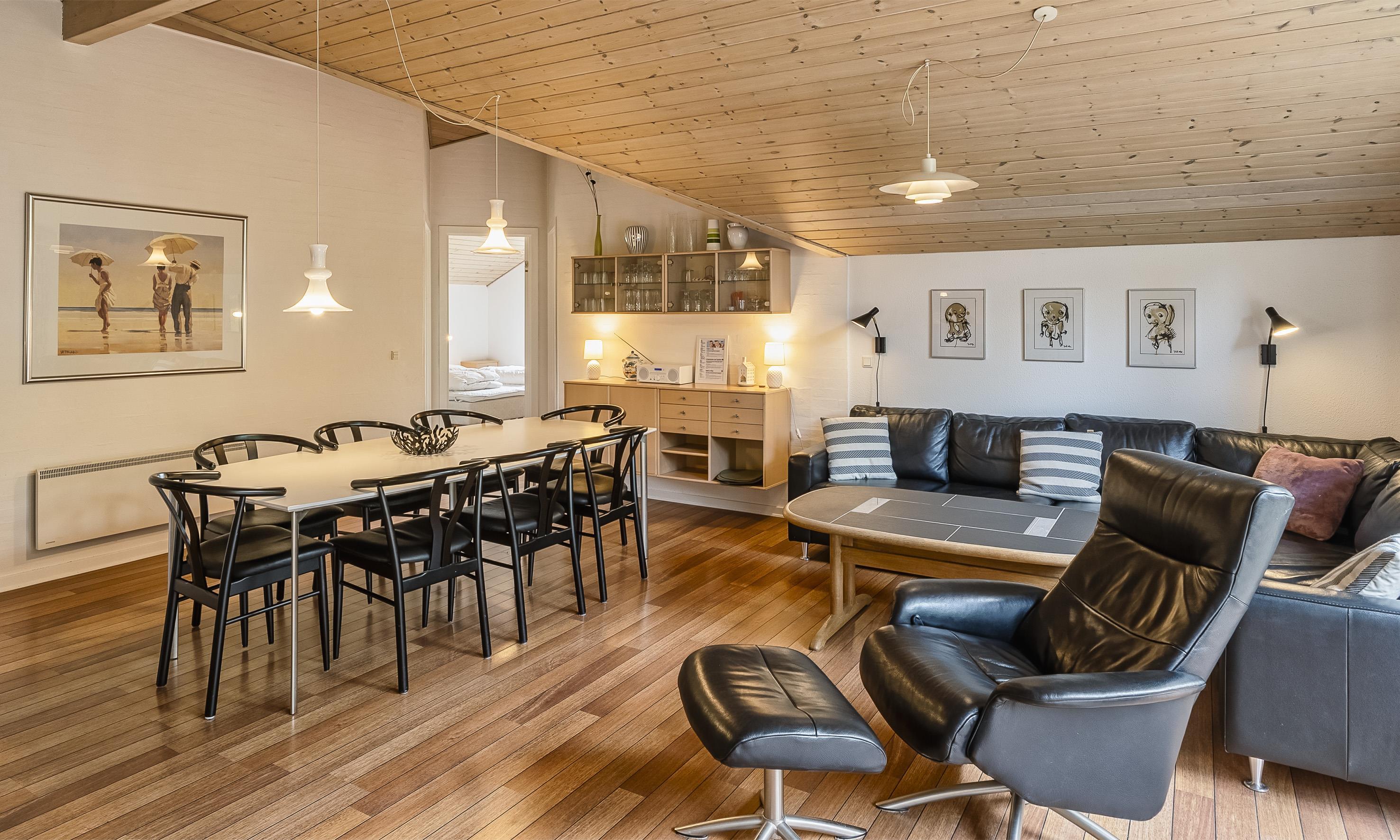 Tasteful cottage for 6 adults and 2 children, approx. 200 meters from the beach. Living room with wood-burning stove, television and satellite dish (danish programmes). Open kitchen with dishwasher, microwave and a small cupboard freezer. 4 bedrooms: DB + DB + 2B + 2B. Bathroom with shower/wc, spa and sauna. Guest toilet with shower. Washing machine and dryer. Closed terrace. Sandbox and swing. Pets are not allowed! Wi-Fi. Smoking is not allowed. Year of construction 2004.Free admission to the water park and bowling in Varde in 2025